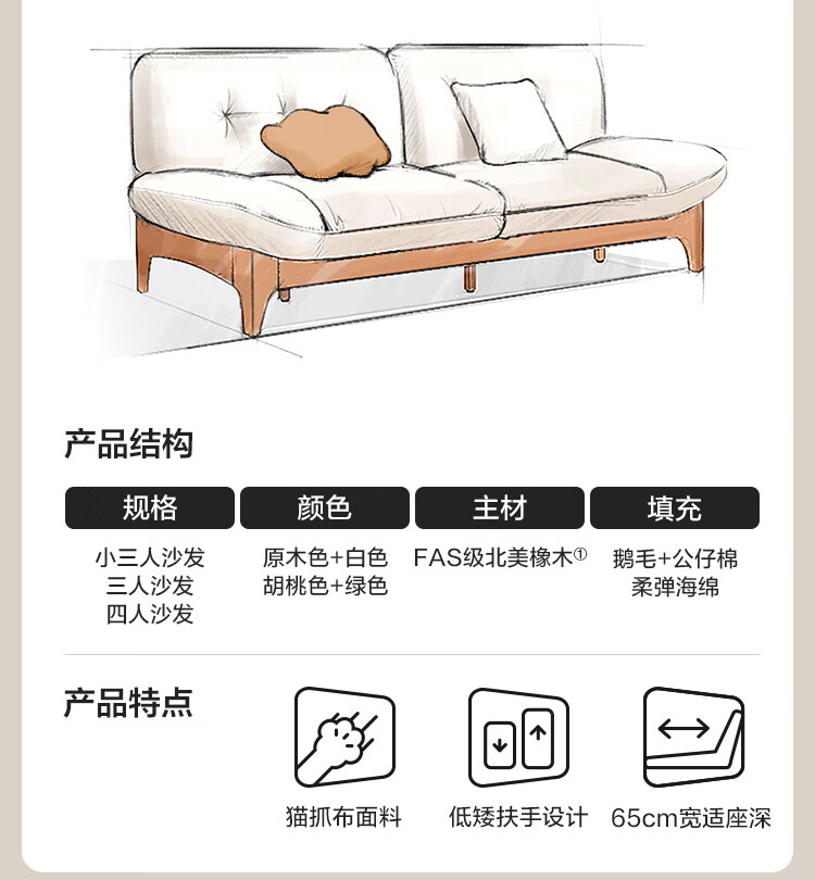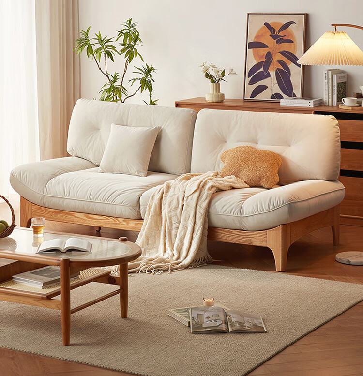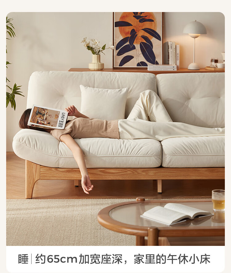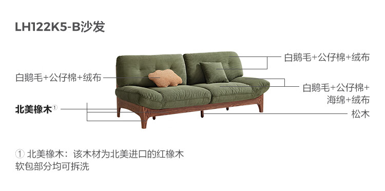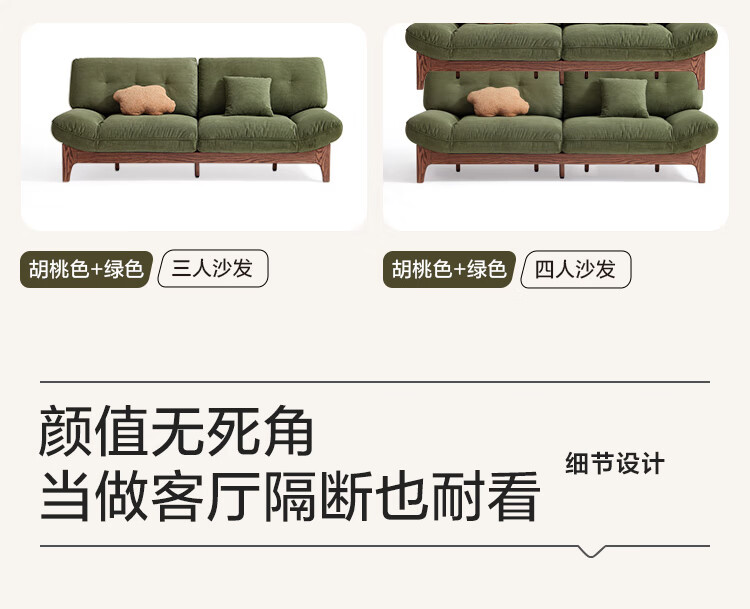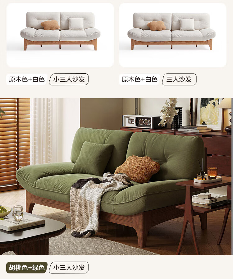 林氏家居橡木实木沙发客厅2025新款猫抓布云朵沙发小户型林氏木业LH122K5 胡桃色|绿色|1.83m小三人位