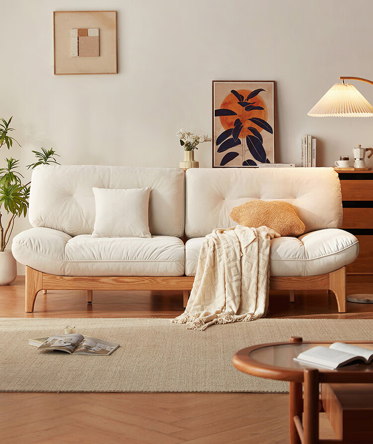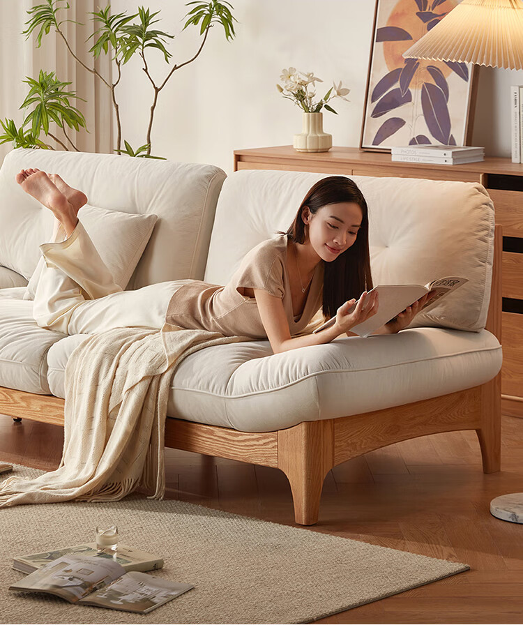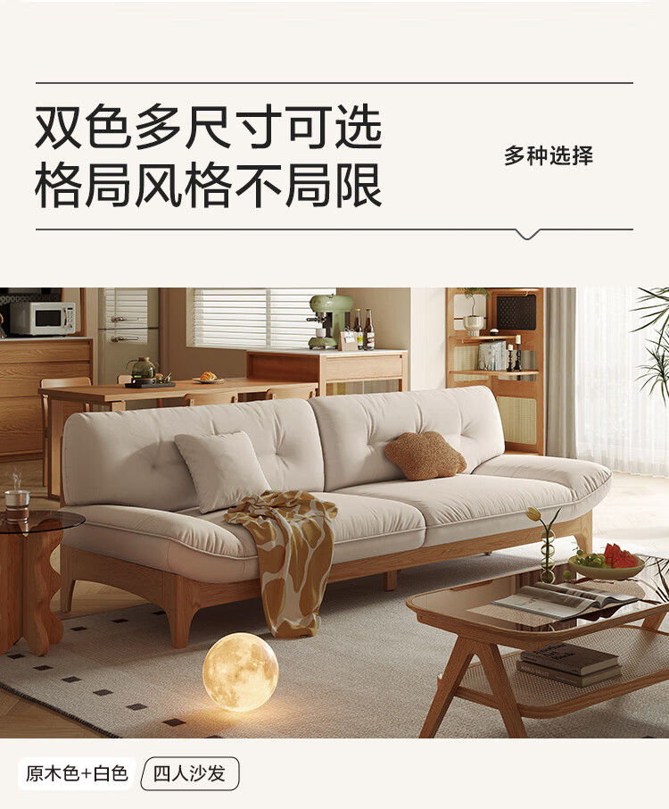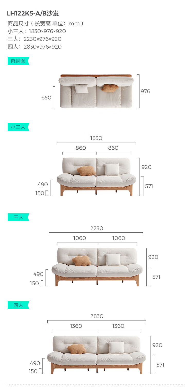 林氏家居橡木实木沙发客厅2025新款猫抓布云朵沙发小户型林氏木业LH122K5 胡桃色|绿色|1.83m小三人位