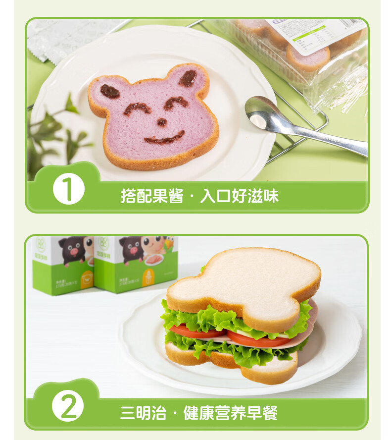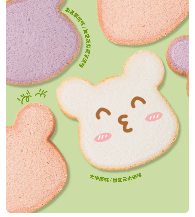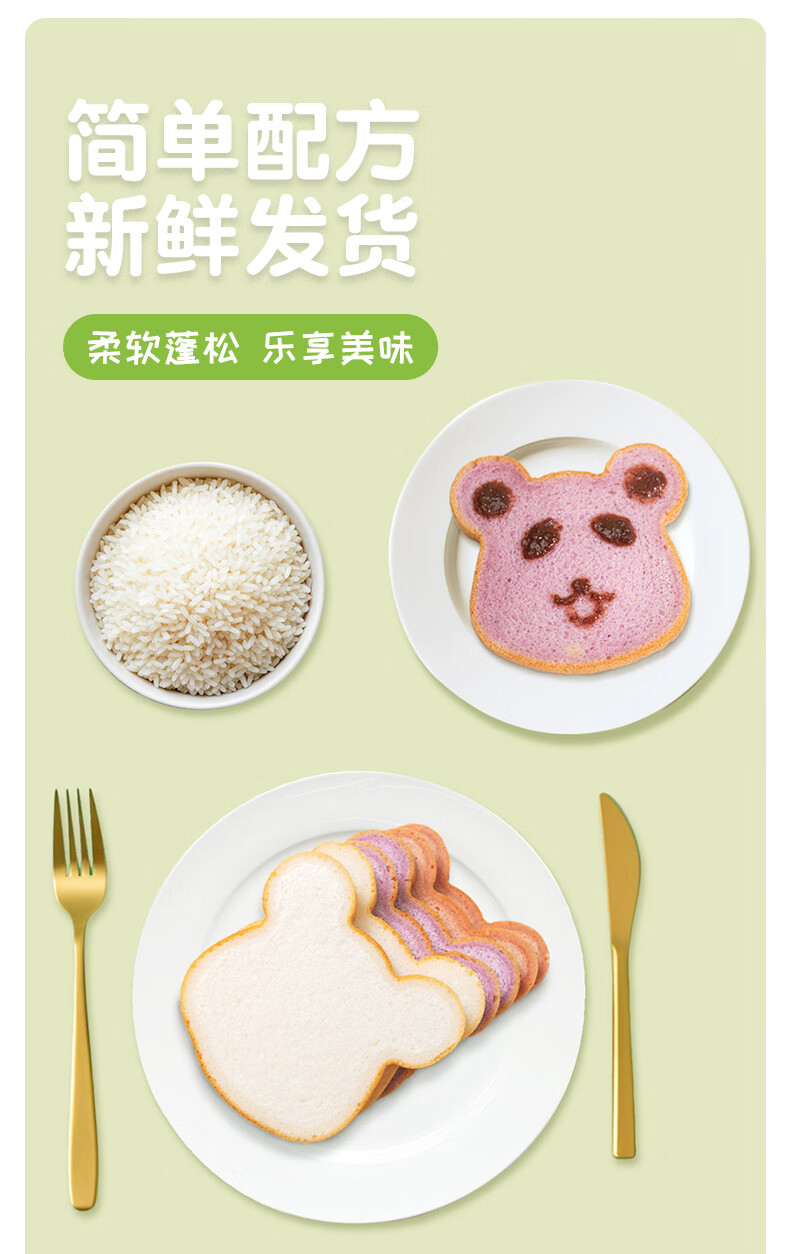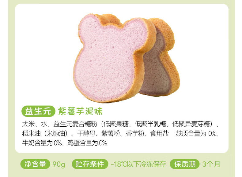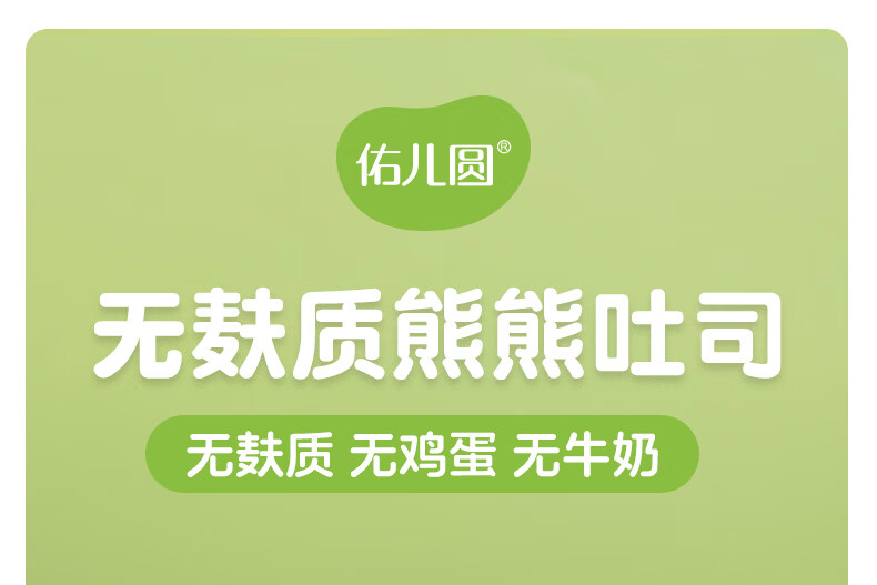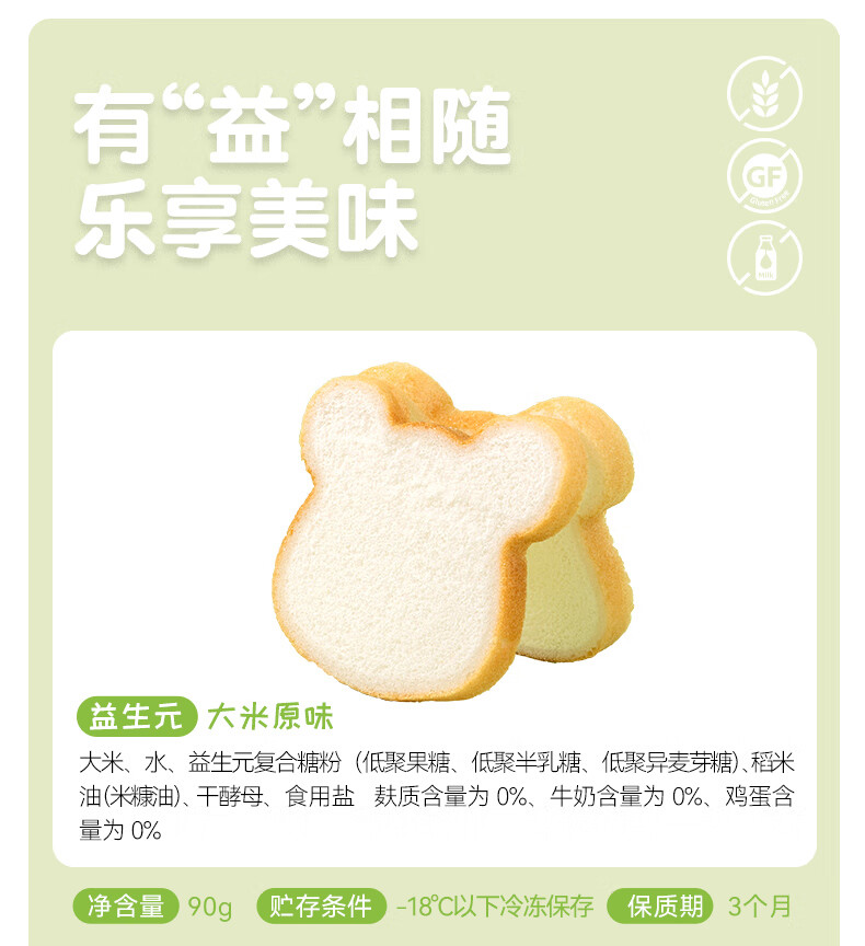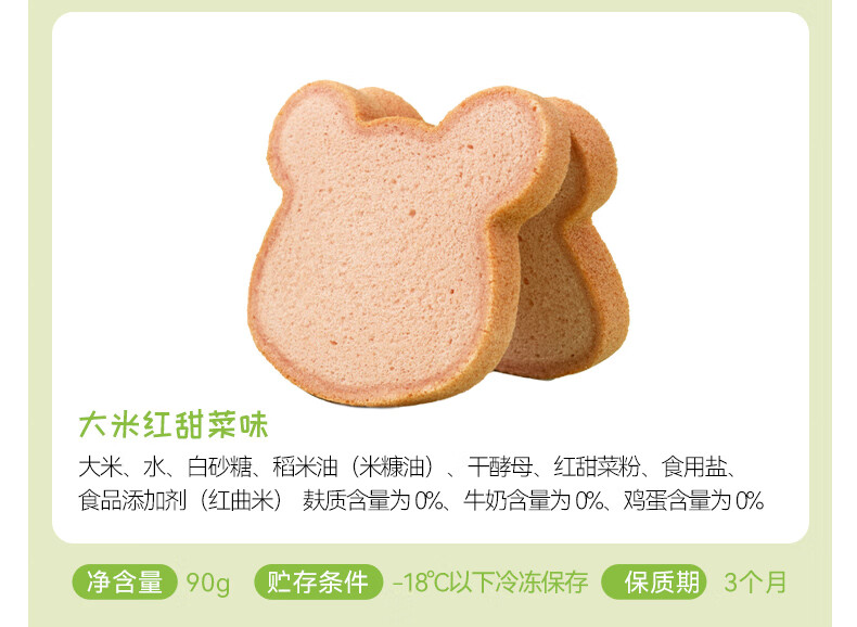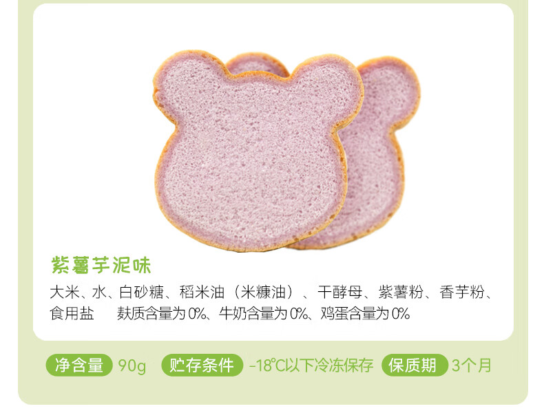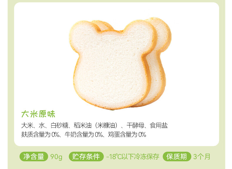 佑儿圆无麸质大米熊熊吐司90g无蛋奶孩子早餐2片装 独立无麸质生产线 大米原味