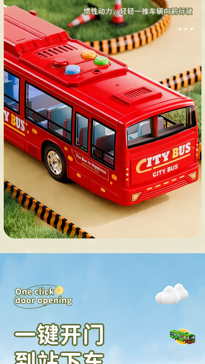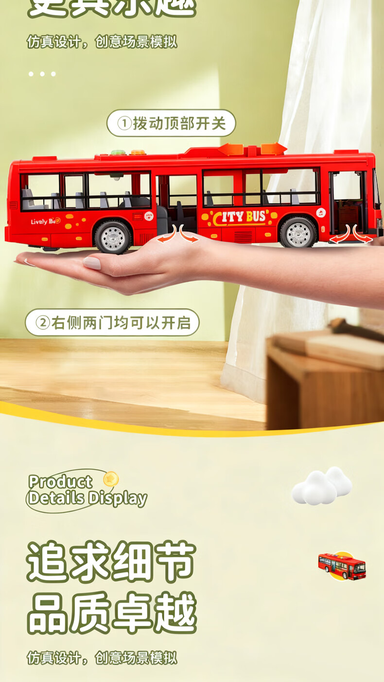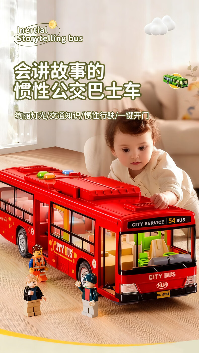 恩贝家族儿童公交车玩具男孩3-6岁大号可开门宝宝巴士生日新年礼物