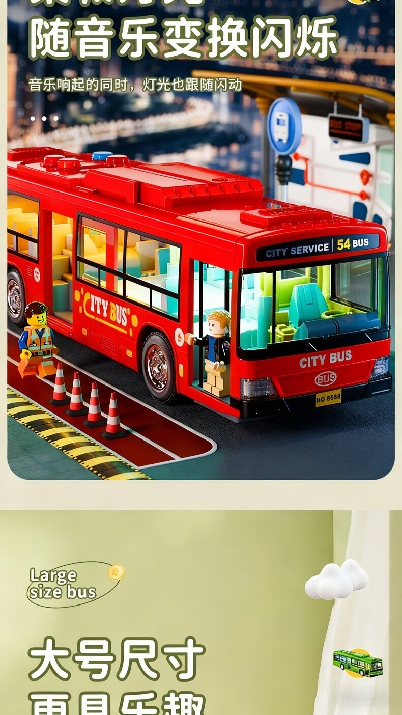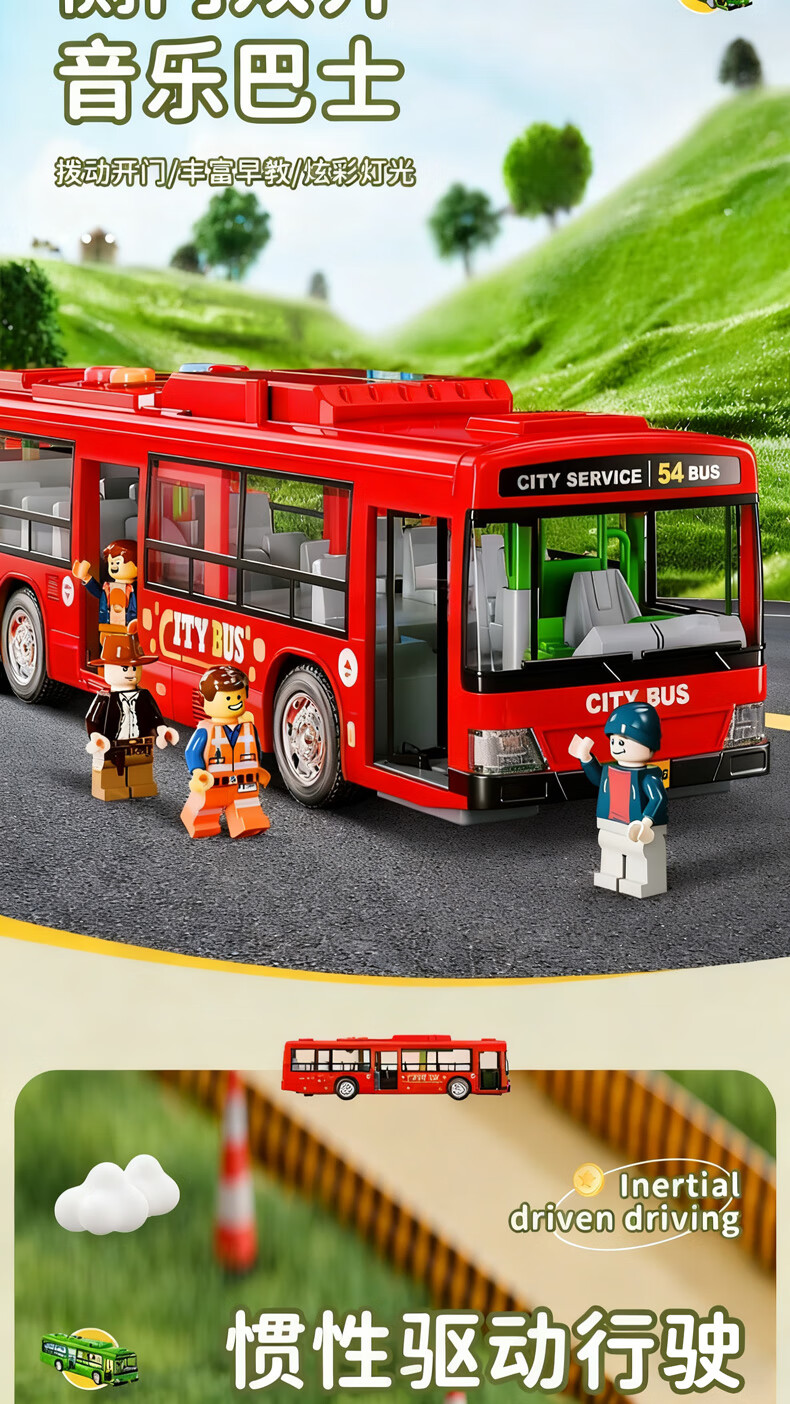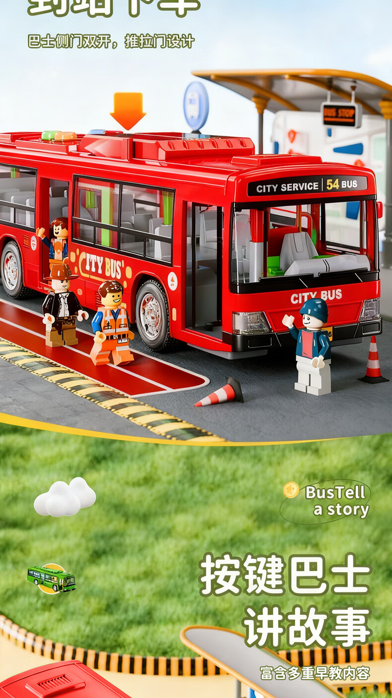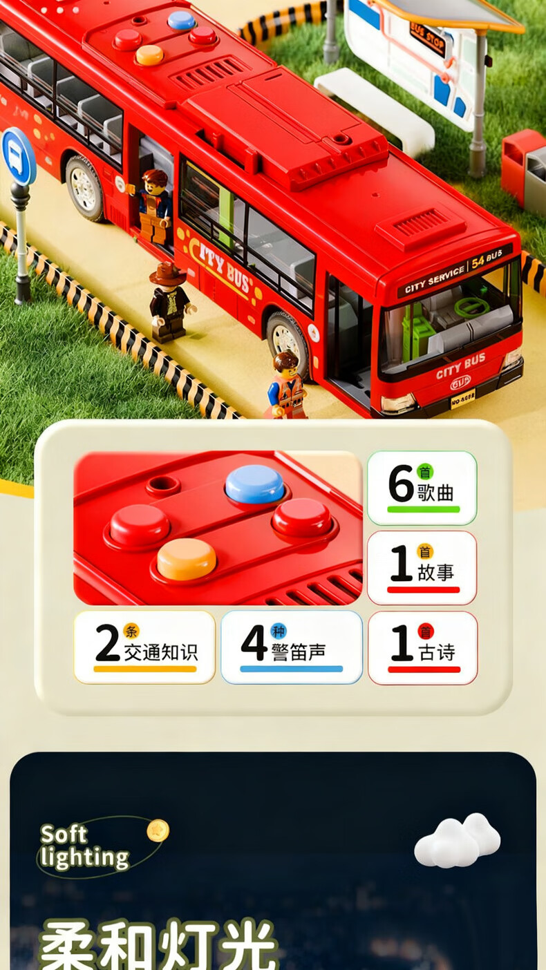 恩贝家族儿童公交车玩具男孩3-6岁大号可开门宝宝巴士生日新年礼物