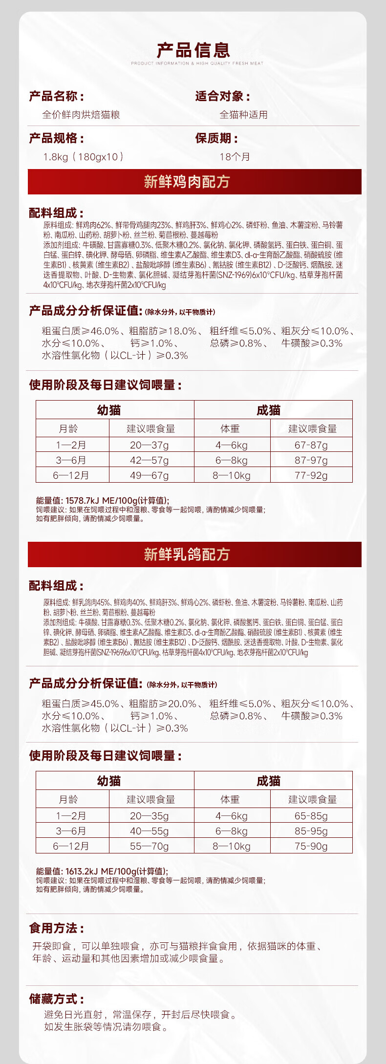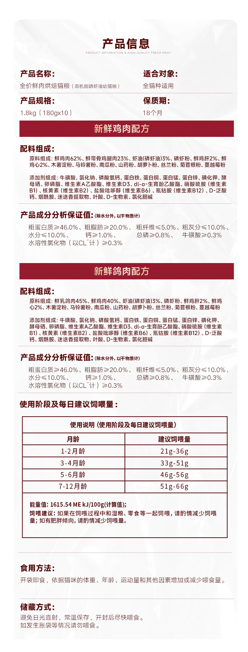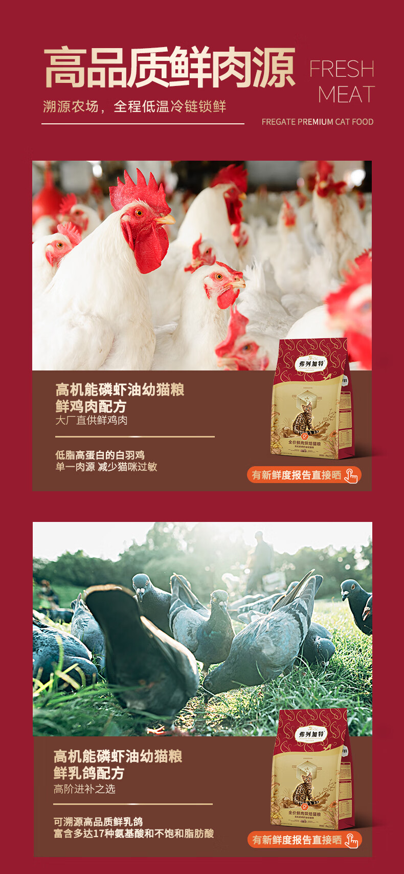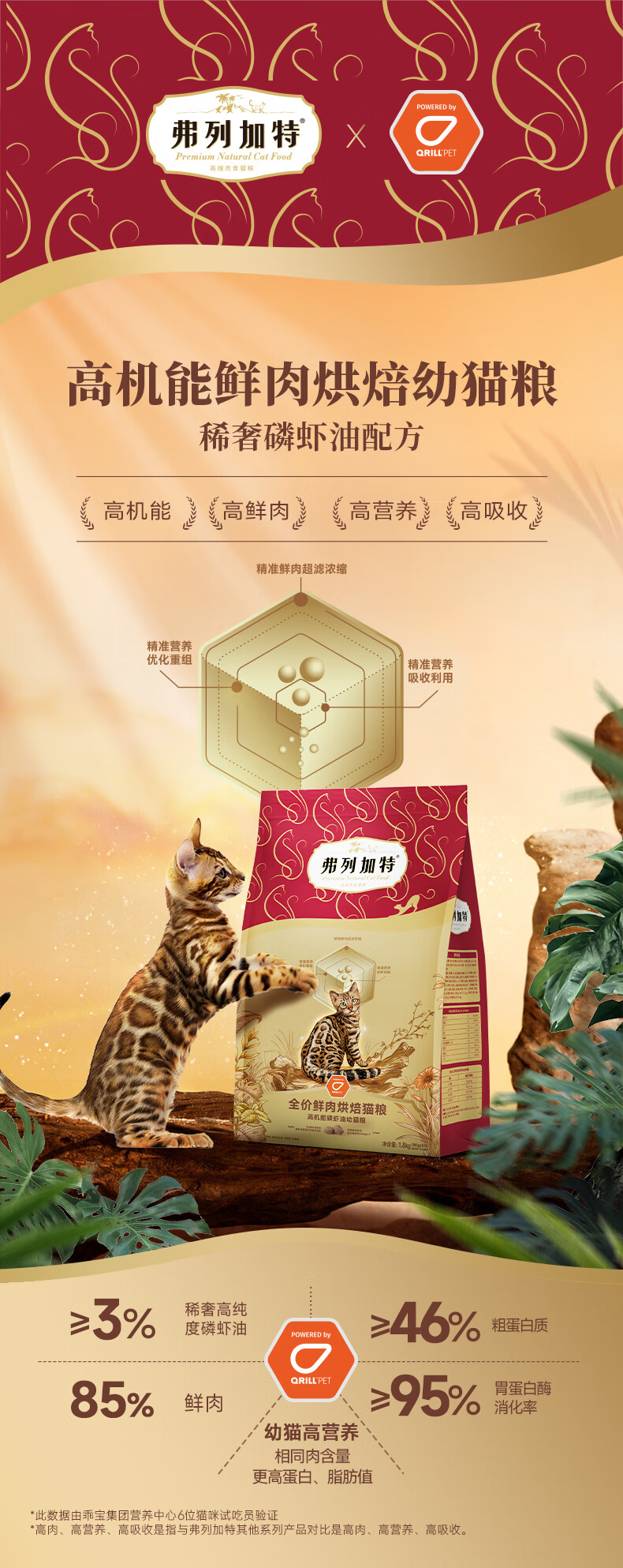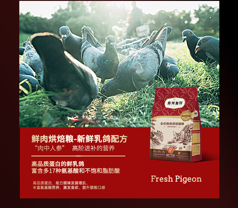 弗列加特猫粮85%鲜肉磷虾油烘焙猫粮鸡肉乳鸽成猫幼猫全价美毛肠道鲜肉粮 鸡肉味(磷虾油配方)1.8kg