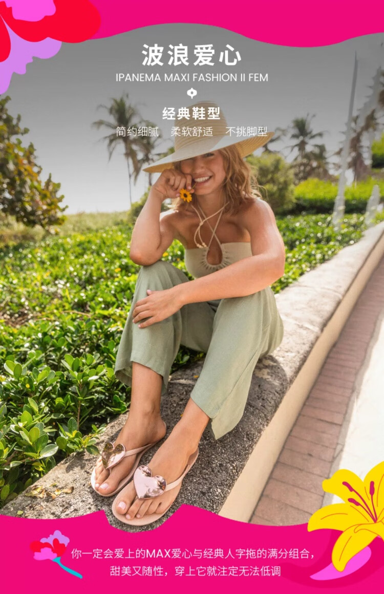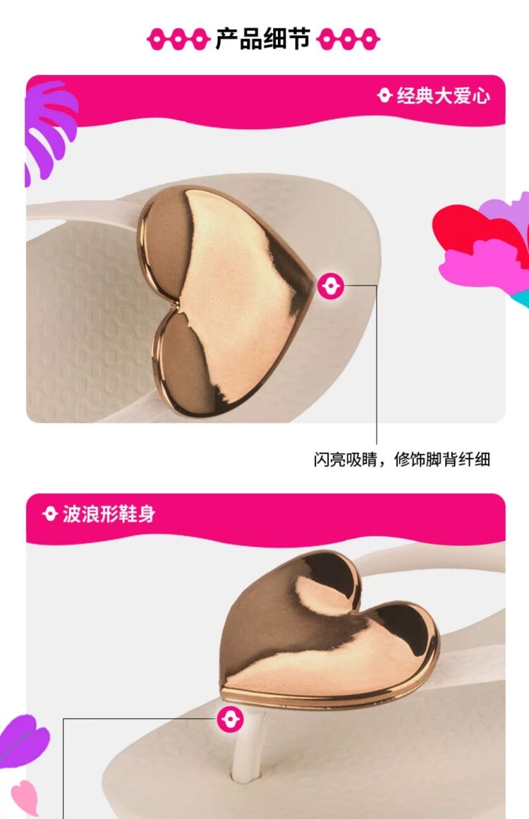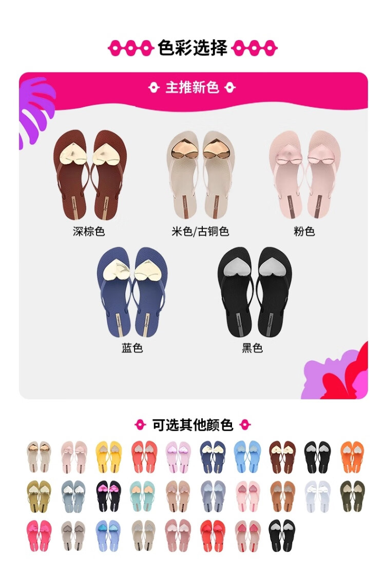 Ipanema【特价清仓】依帕波浪爱心夹脚人字拖女外穿海边82120 82120粉色/红 38 (建议拍大一码)
