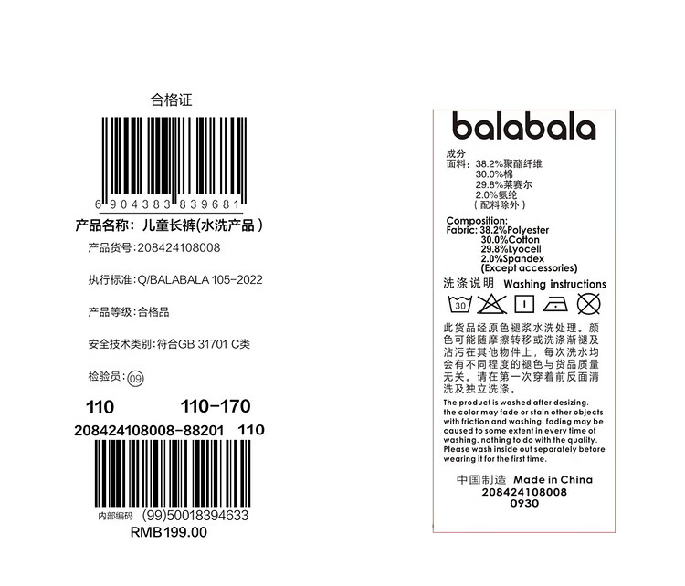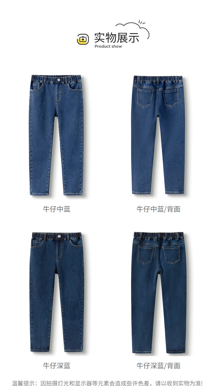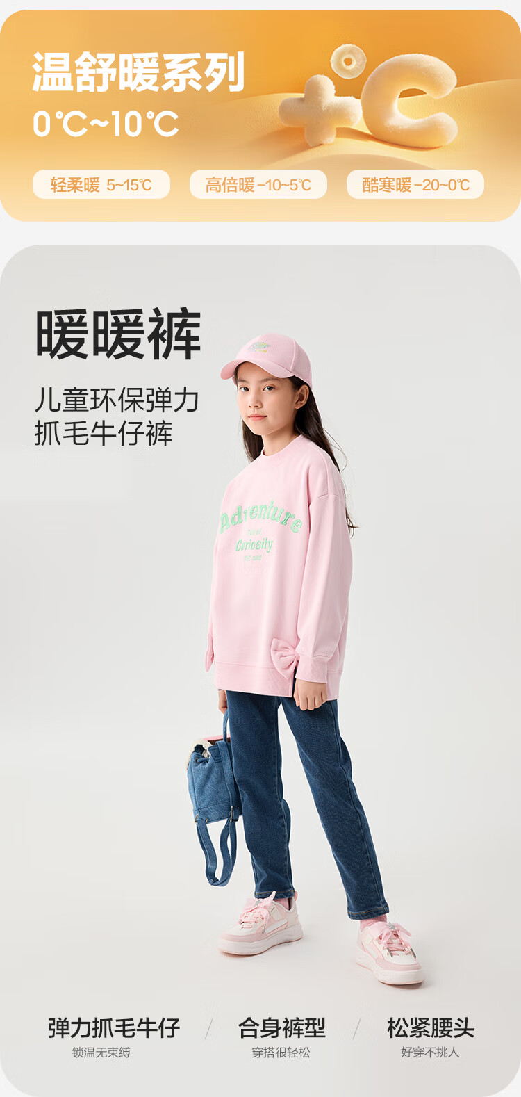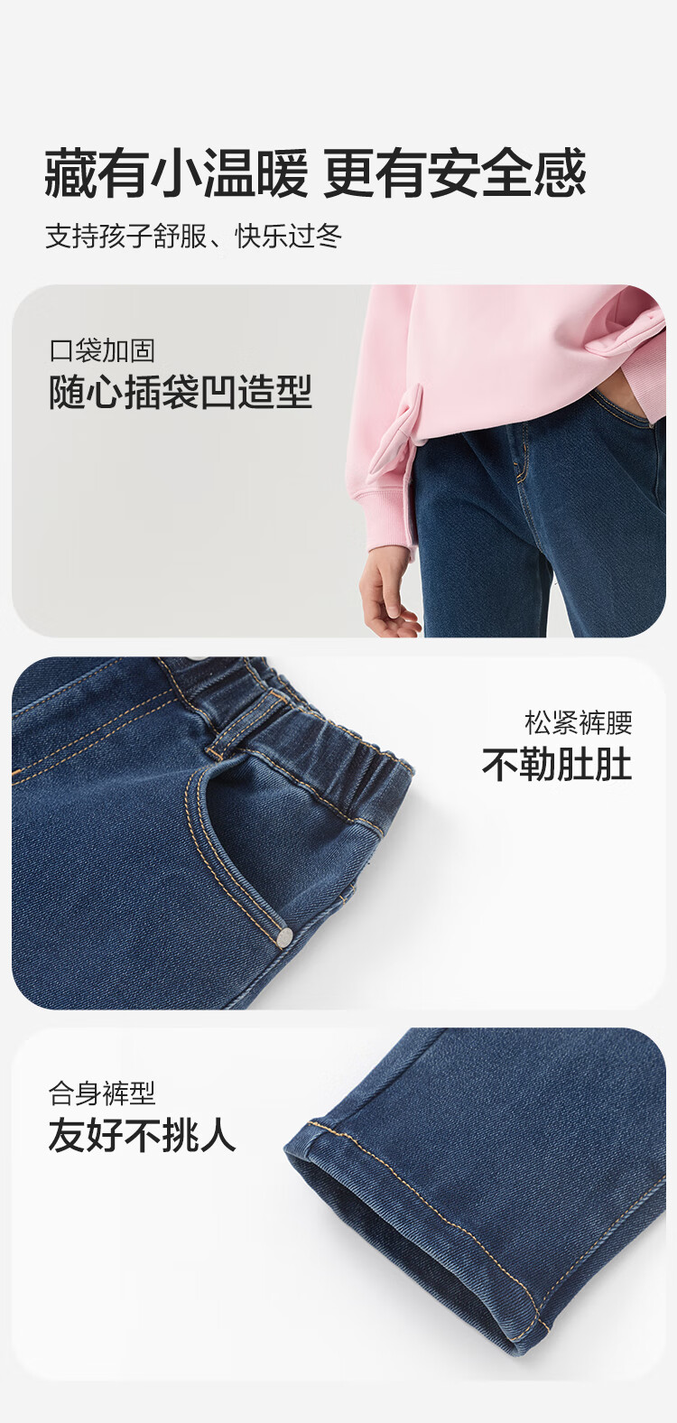 巴拉巴拉童装女童裤子冬装中大童加绒牛仔长裤儿童保暖舒适潮208424108008
