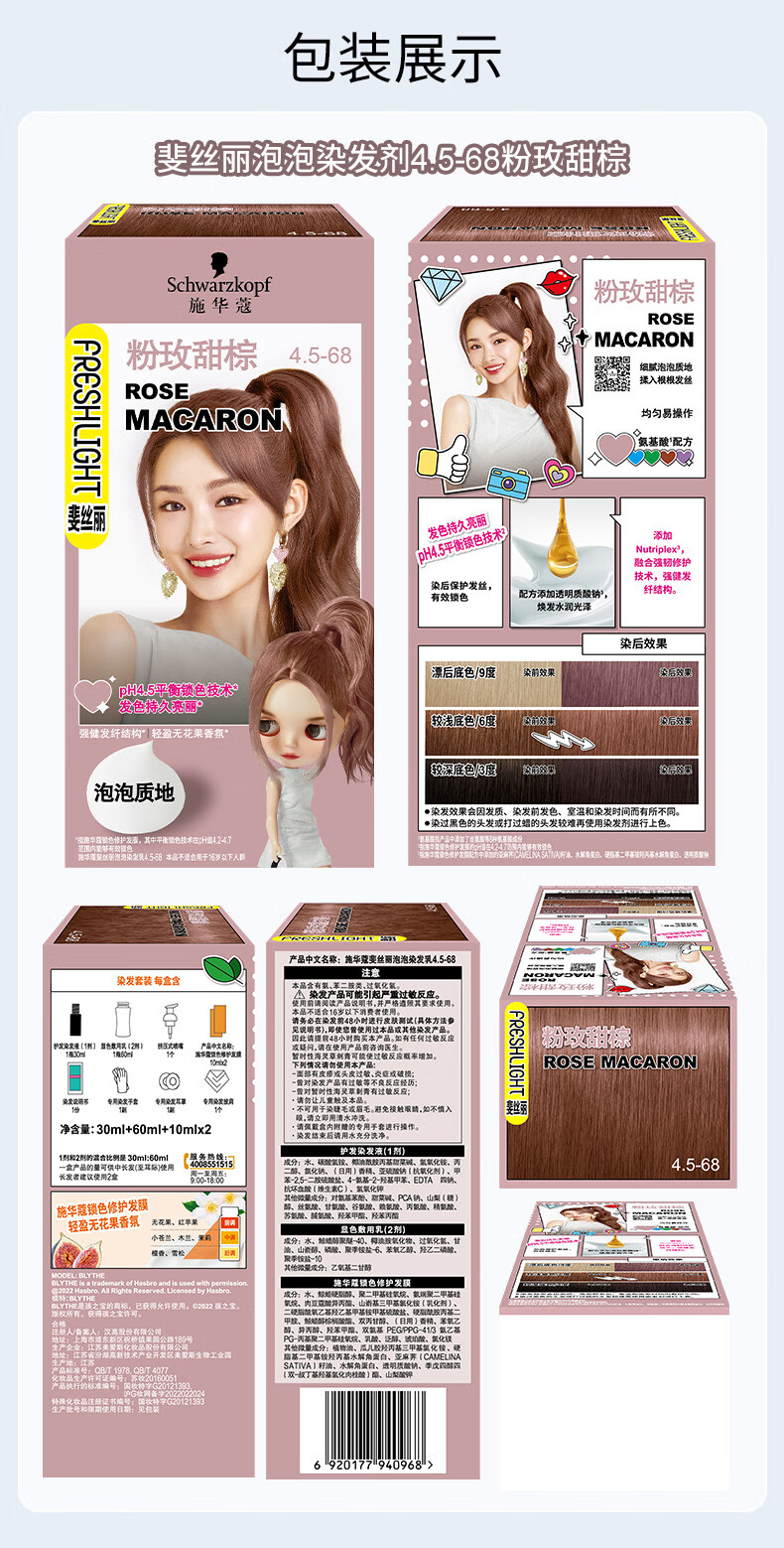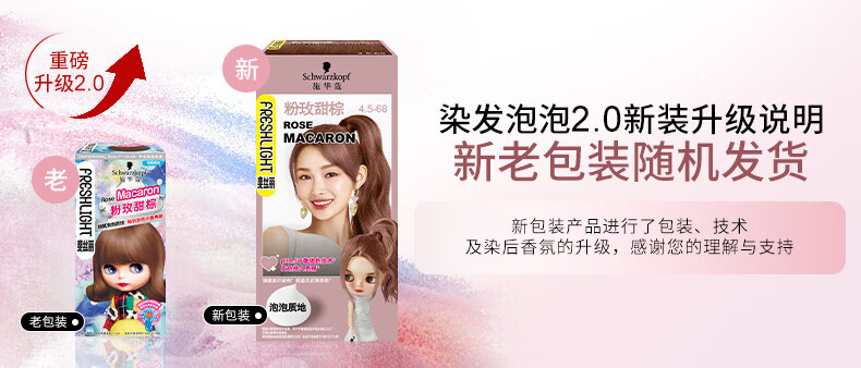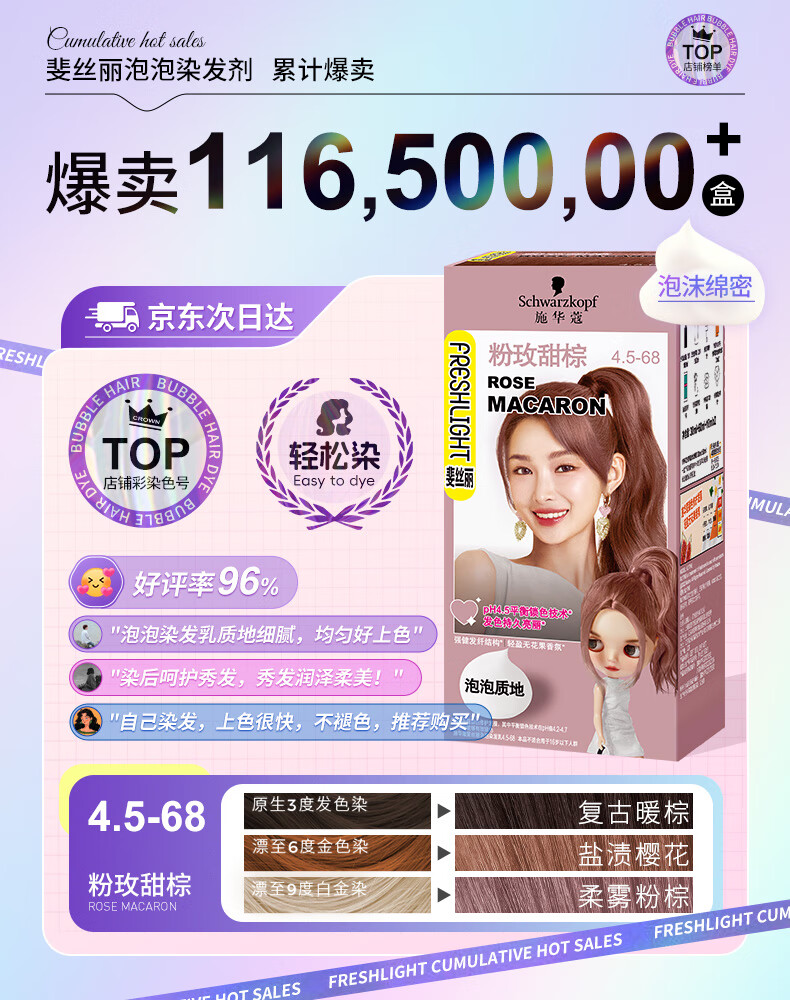 施华蔻(Schwarzkopf)斐丝丽泡泡染发剂4.5-68粉玫甜棕 染发膏自己染染发泡泡潮流彩染