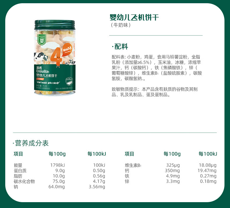 英氏【饼干专区】英氏宝宝零食婴幼儿磨牙饼干特浓高钙牛奶小小馒头 初尝12阶零食组合