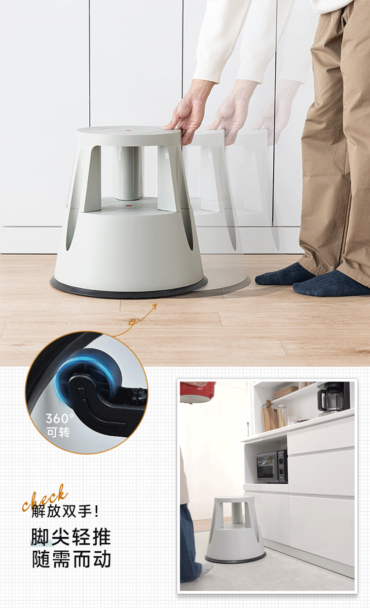 耐丰家用靠背小椅子滑轮矮凳万向轮小凳子儿童带轮子塑料靠背椅静音