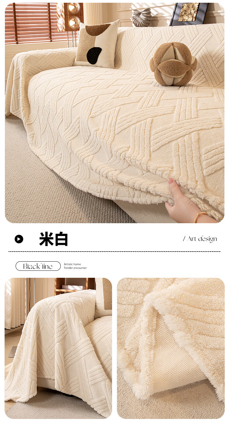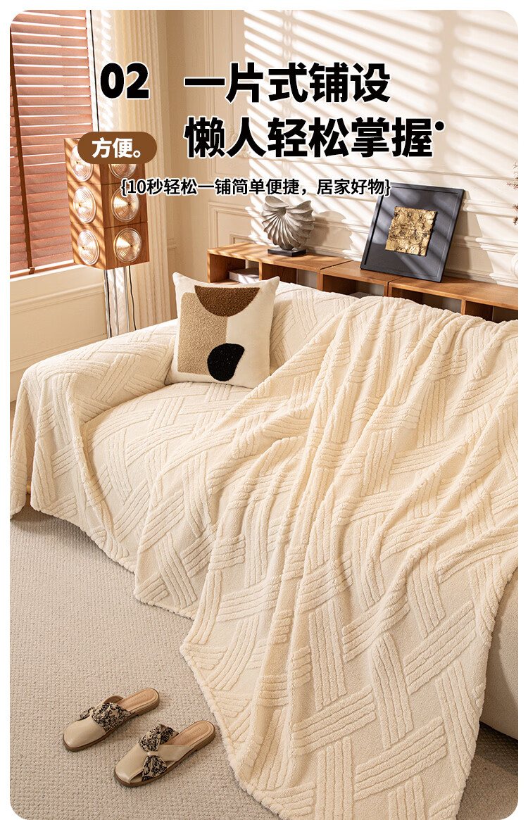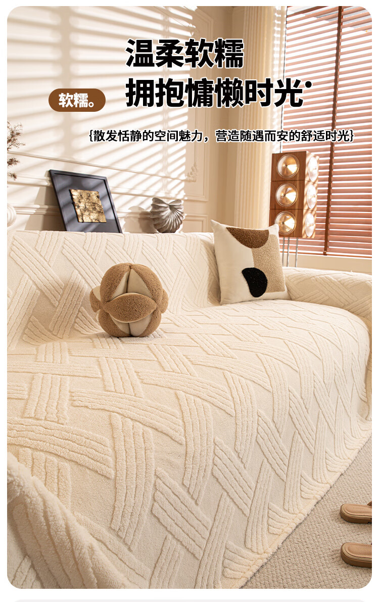 金拾美月2025新款奶油风沙发盖布巾秋冬季全包沙发套罩防猫抓全盖坐垫毯 舒棉绒贝拉-米白 180cm*130cm (适用于单人位/脚踏)