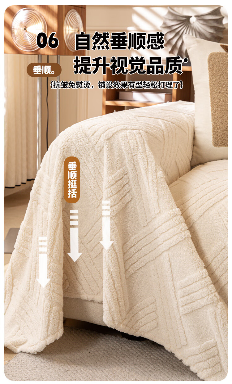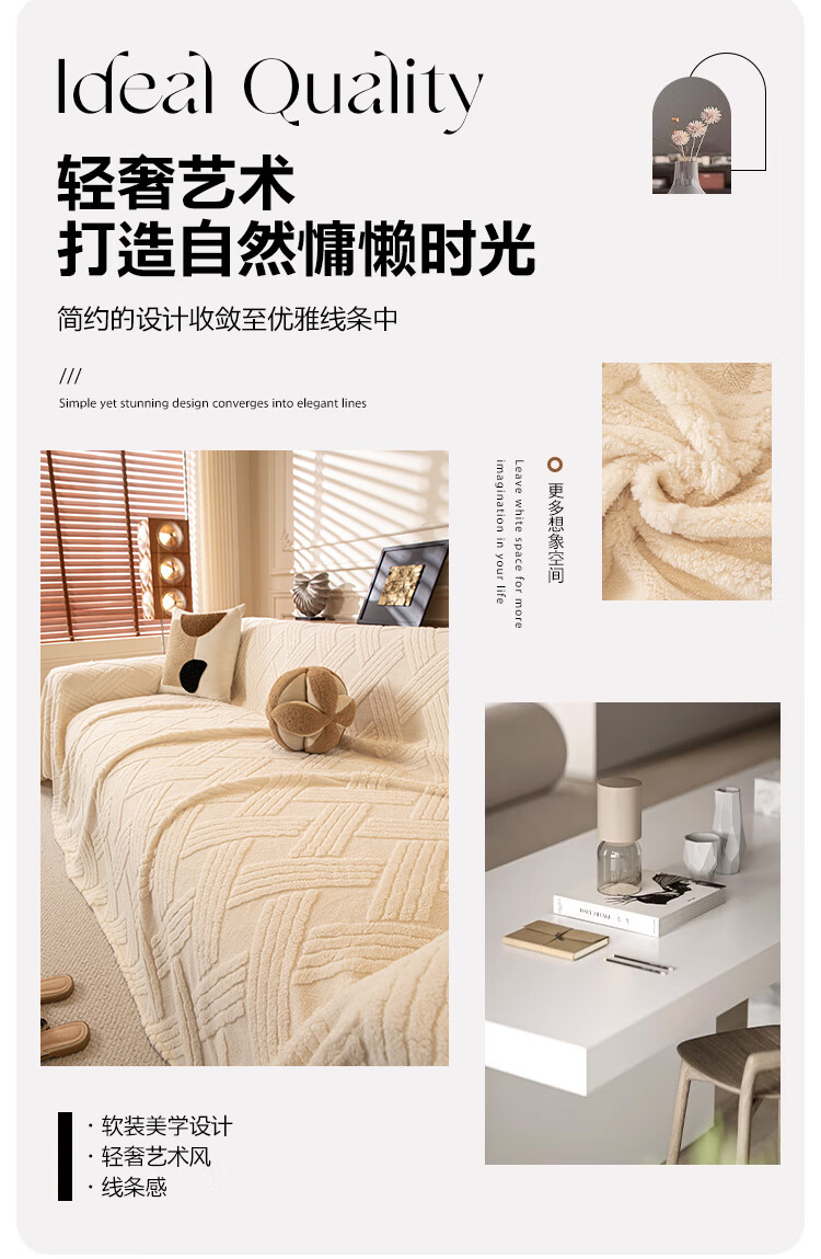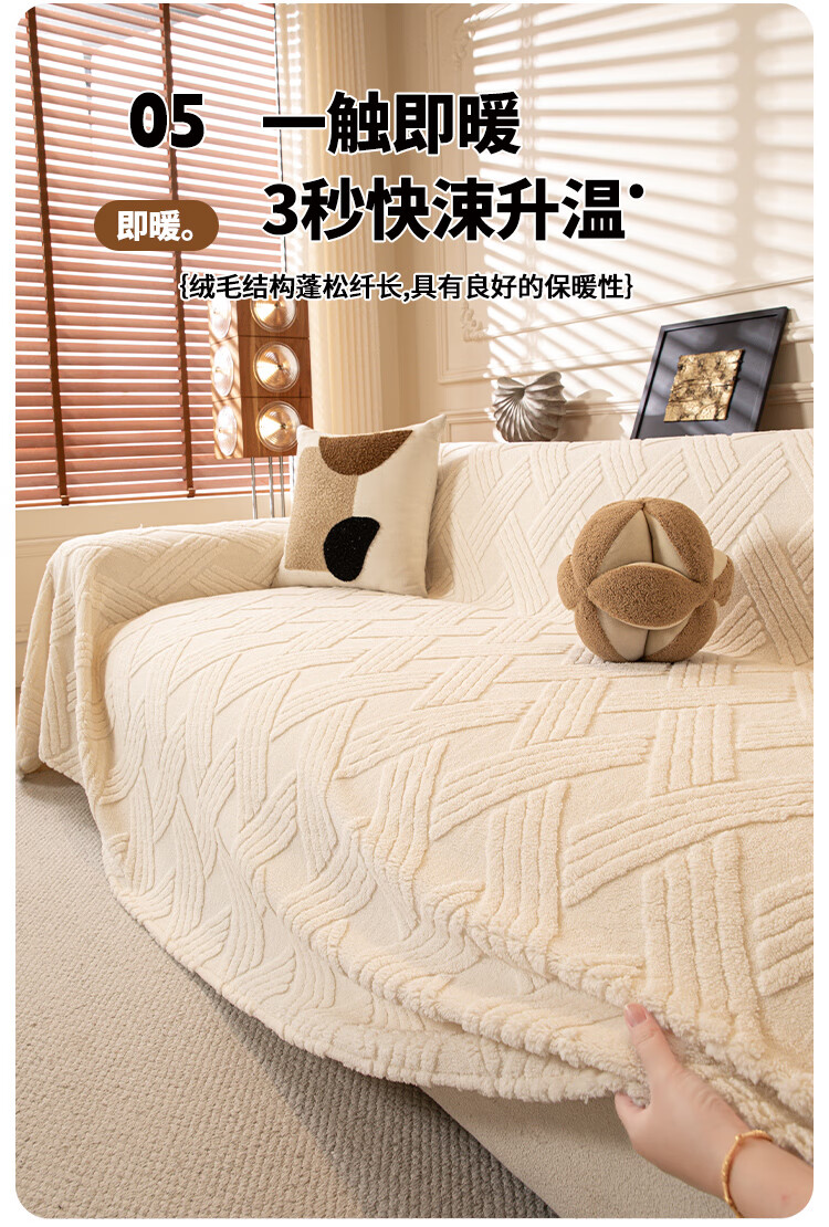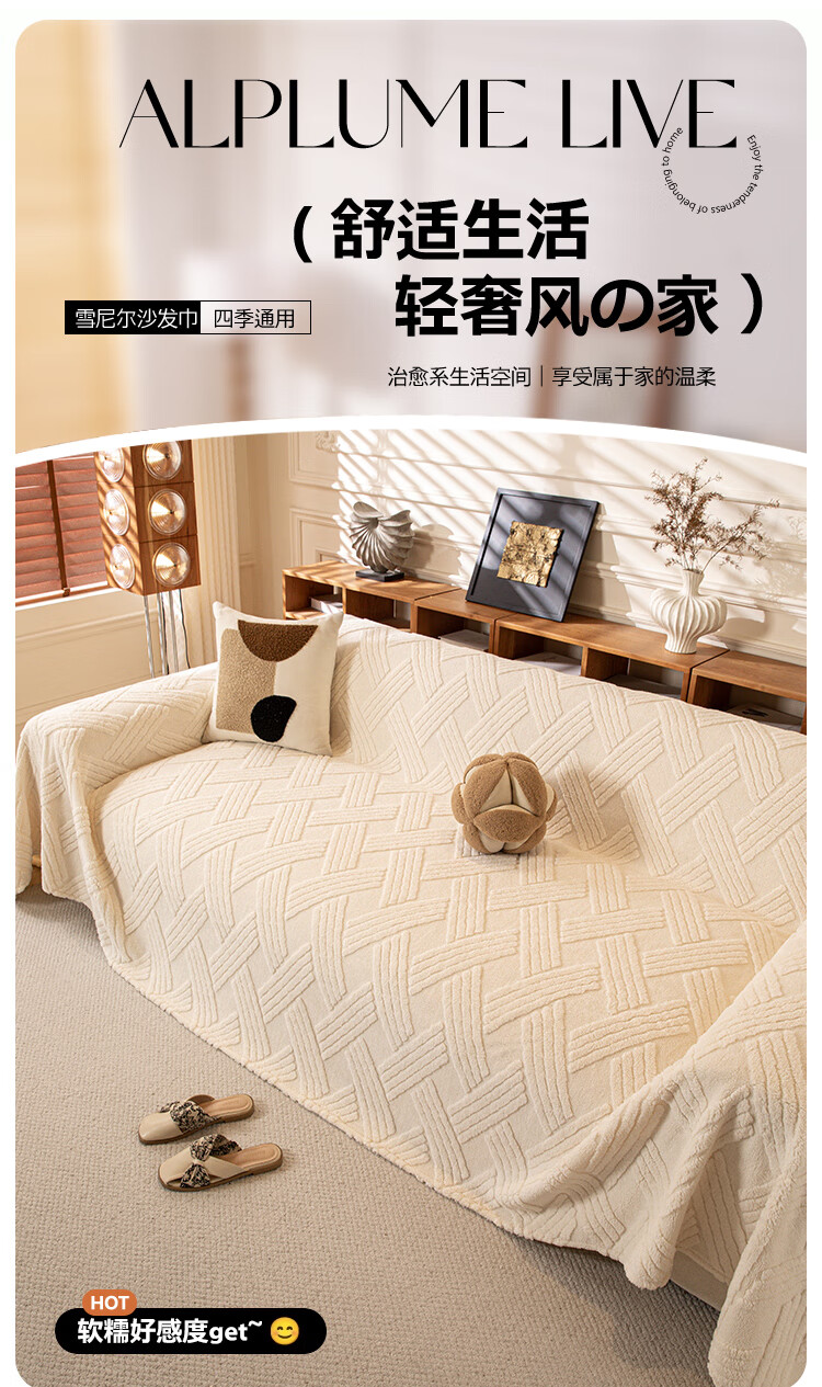 金拾美月2025新款奶油风沙发盖布巾秋冬季全包沙发套罩防猫抓全盖坐垫毯 舒棉绒贝拉-米白 180cm*130cm (适用于单人位/脚踏)
