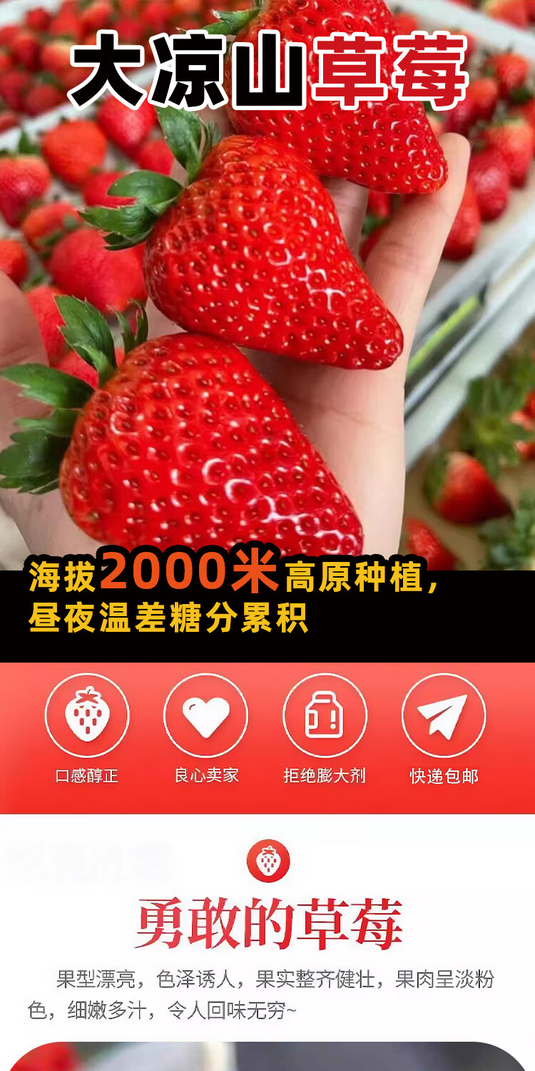 勿语大凉山高山露天种植新鲜草莓现摘现发 农家草莓产地直发采销推荐 4盒中大果单果12g+ 净重2.3斤+