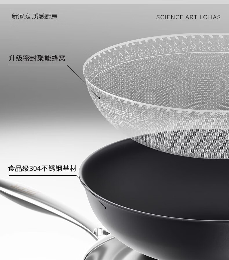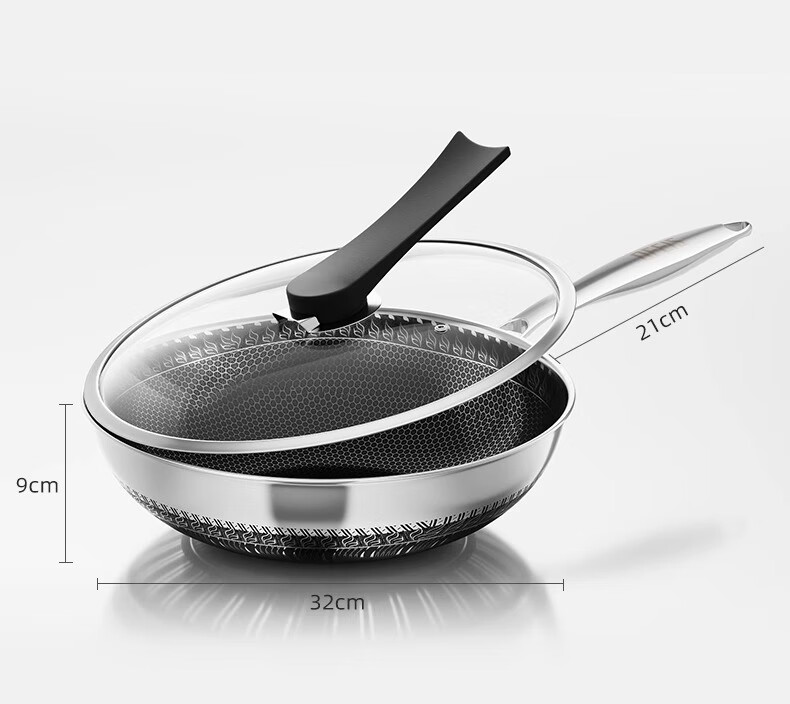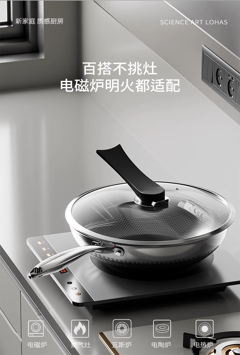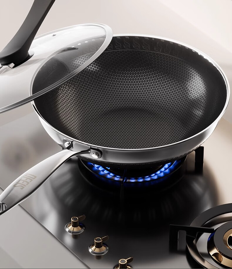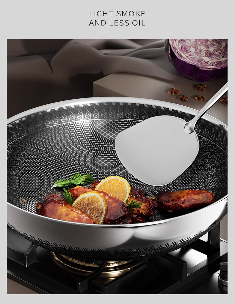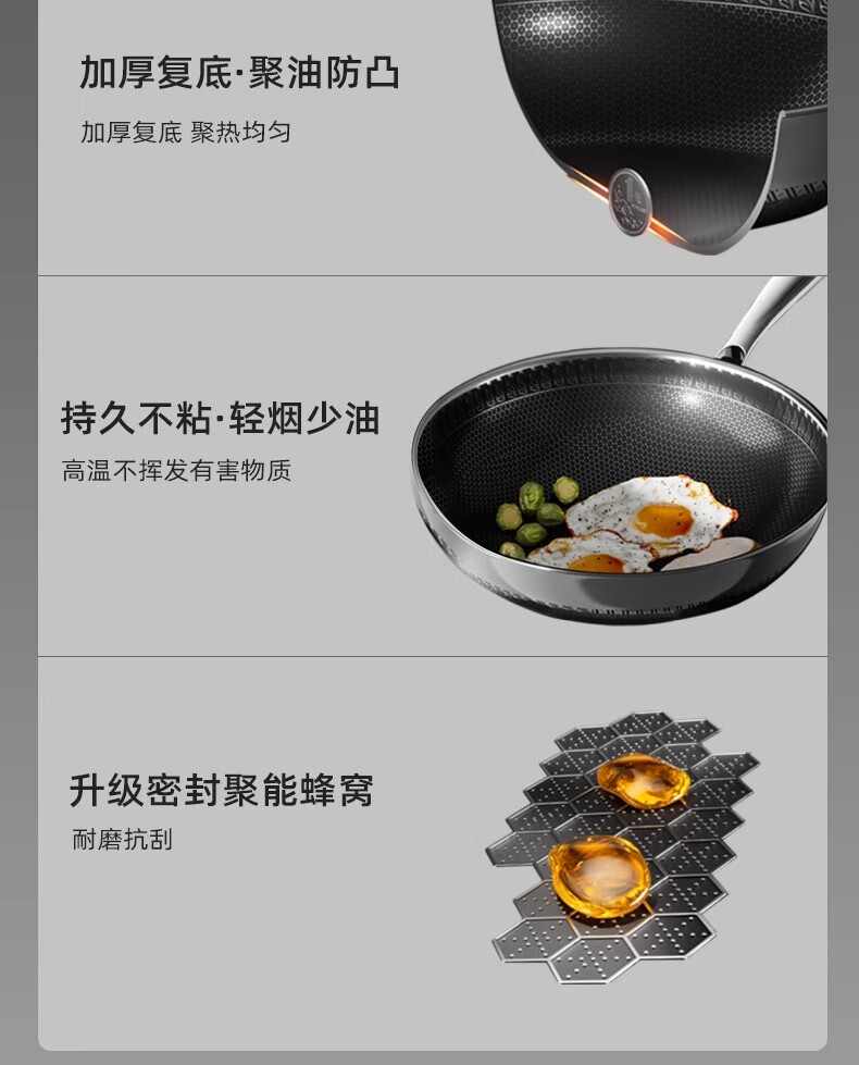 欧菲斯不粘锅炒锅304不锈钢无涂层炒菜锅燃气灶家用铁锅