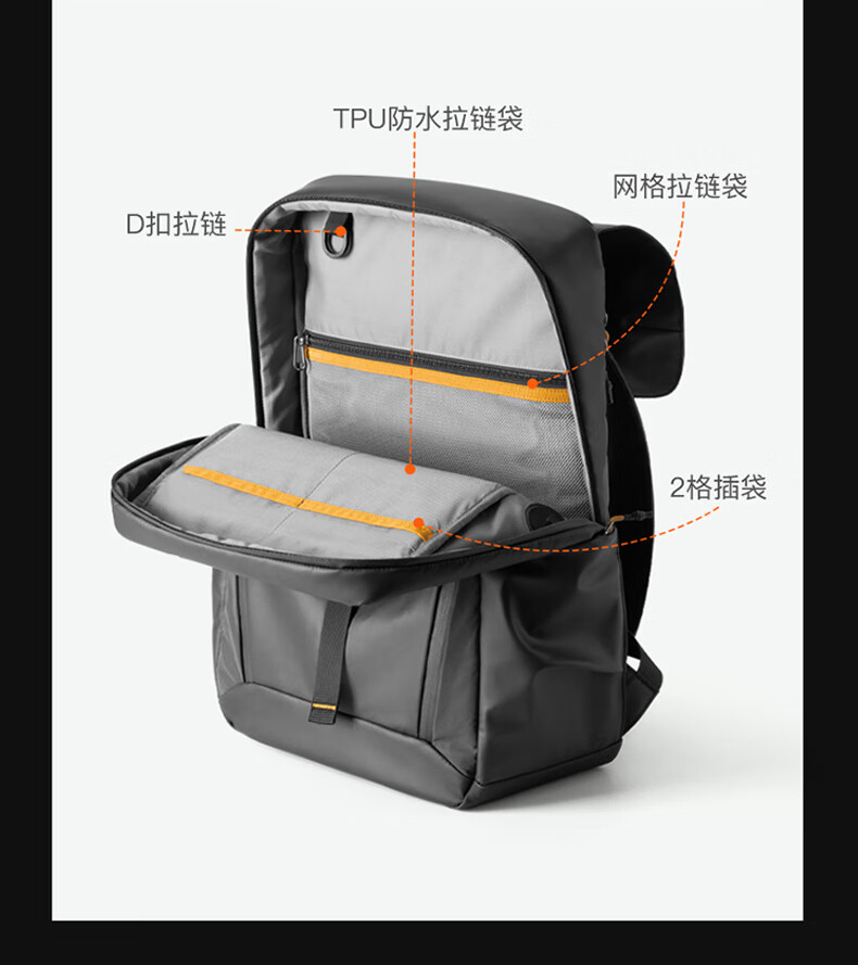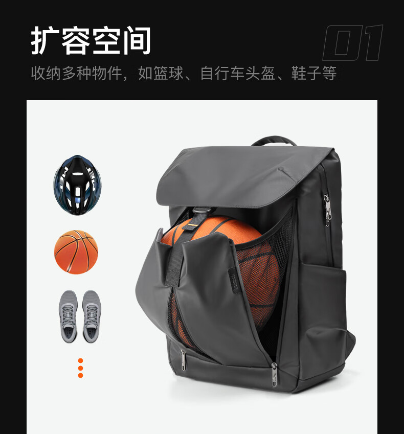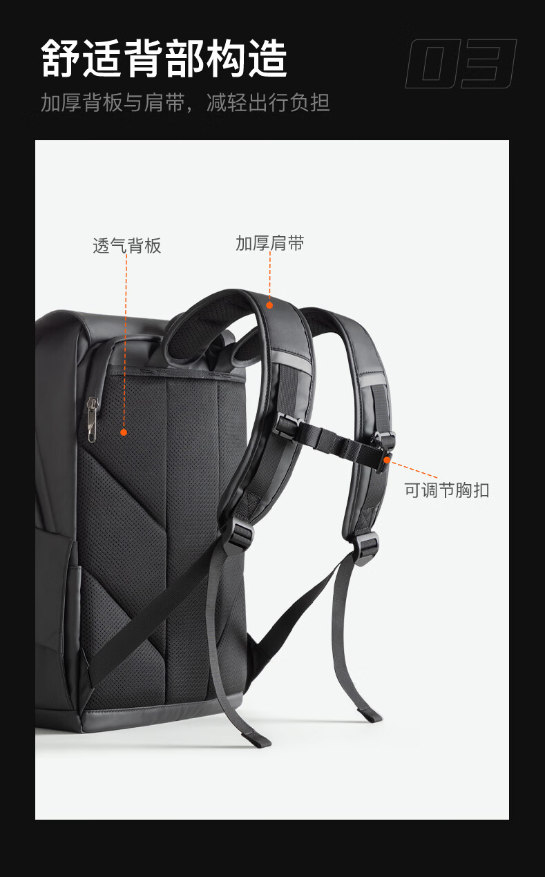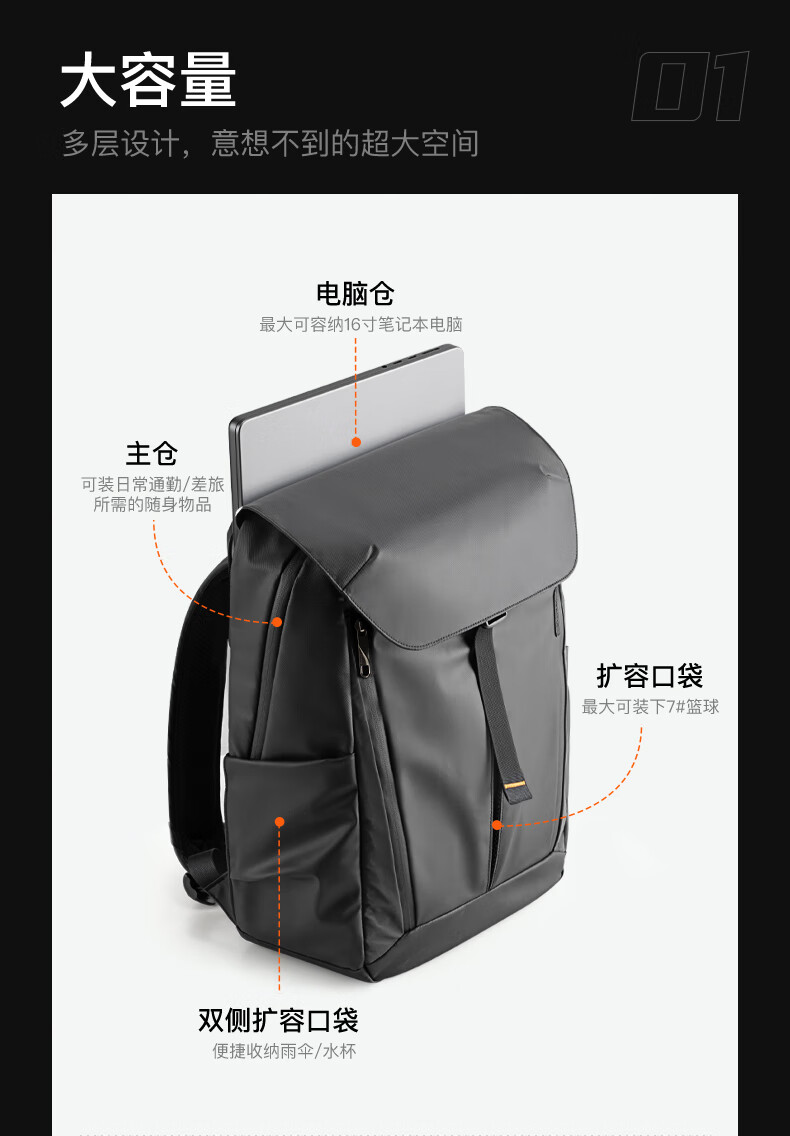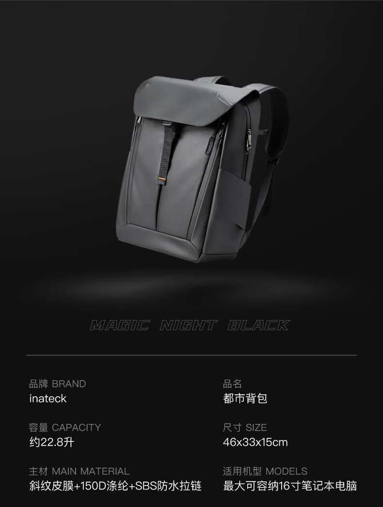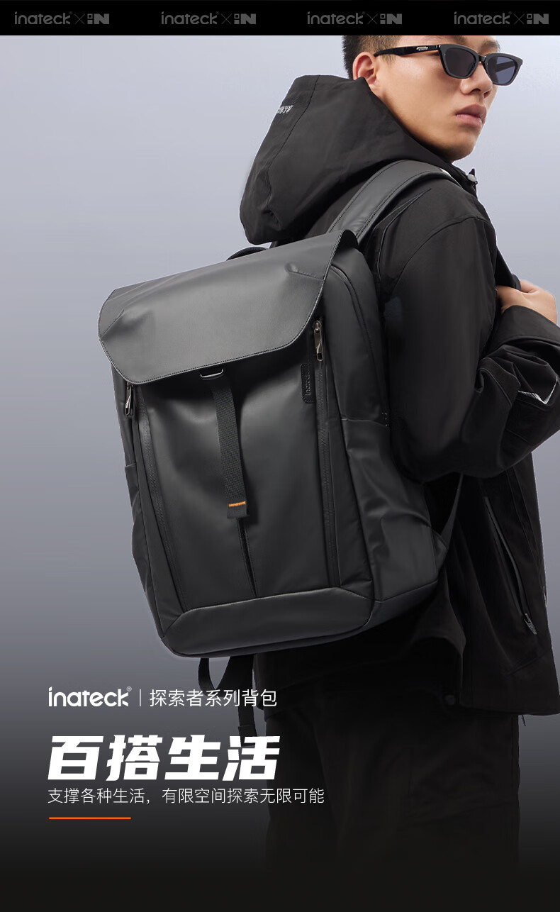 inateck大容量双肩包16寸笔记本电脑包出差背包旅行运动书包男 标准款 黑色|标准款