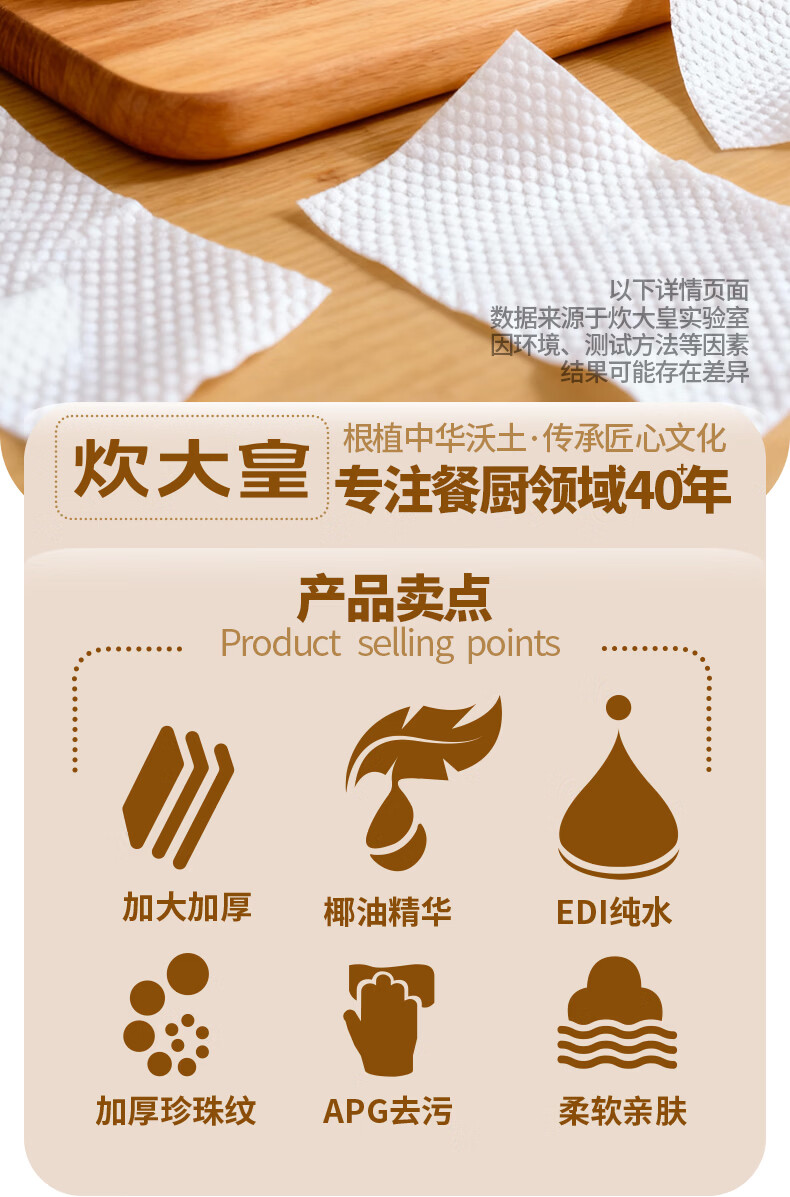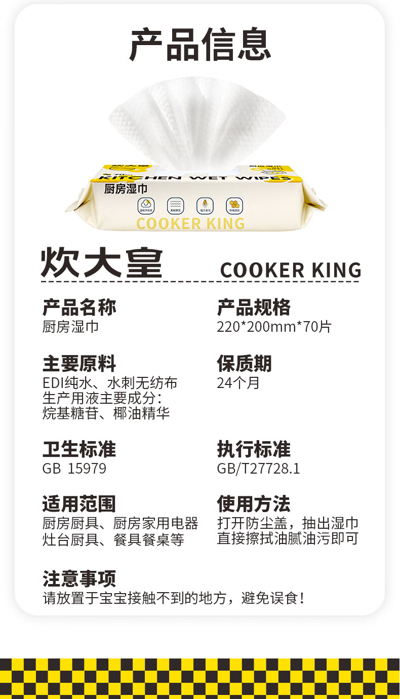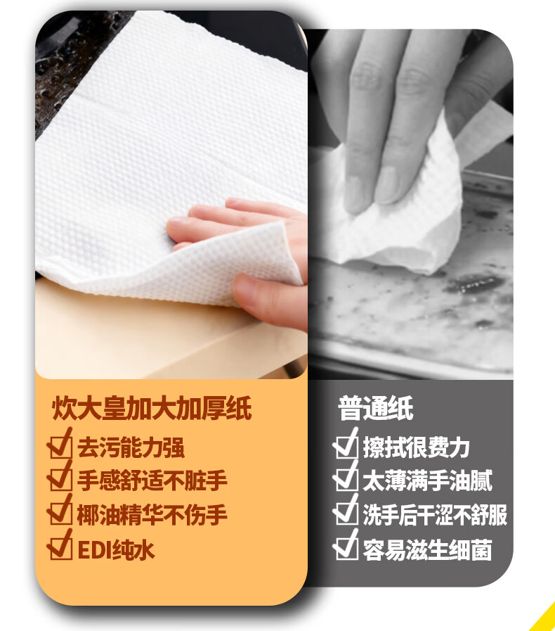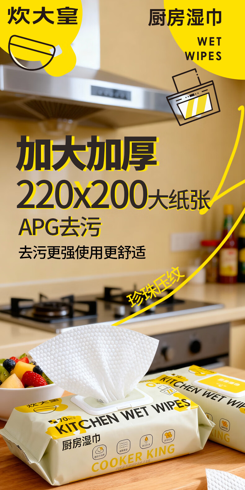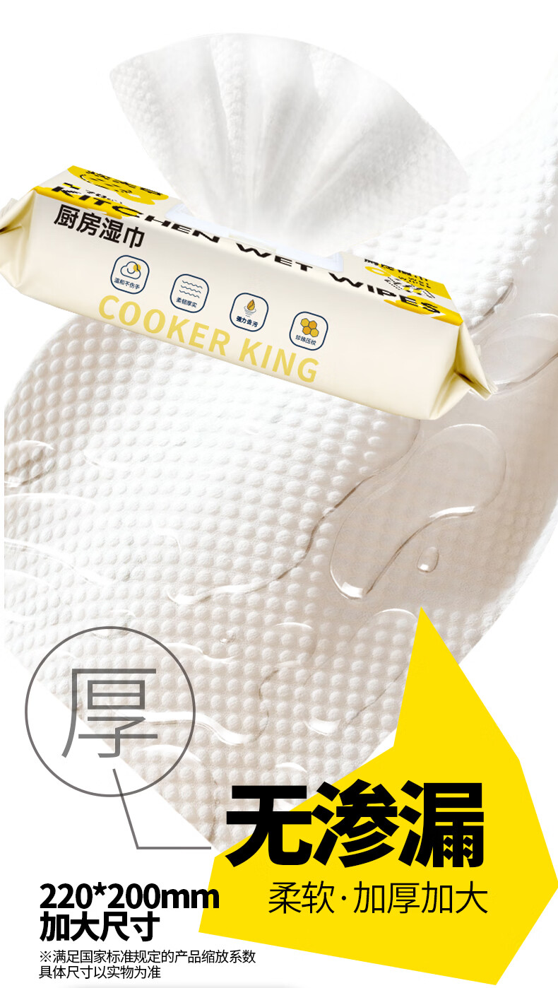 炊大皇厨房湿巾去油污湿纸巾厨房纸巾特大特厚 椰油护肤不伤手 强力去油污*厨房湿巾 1层 70抽*3包 椰油护肤不伤手