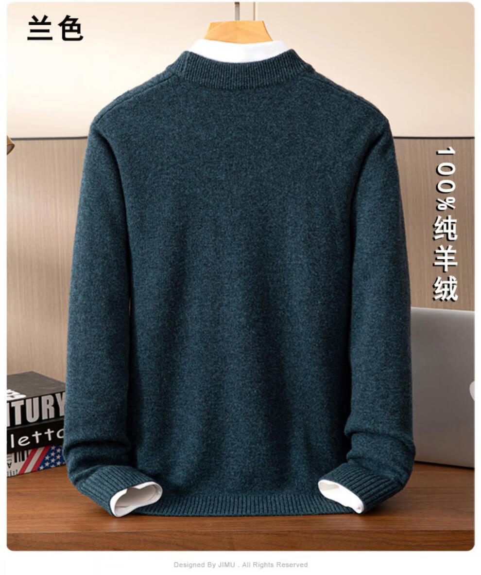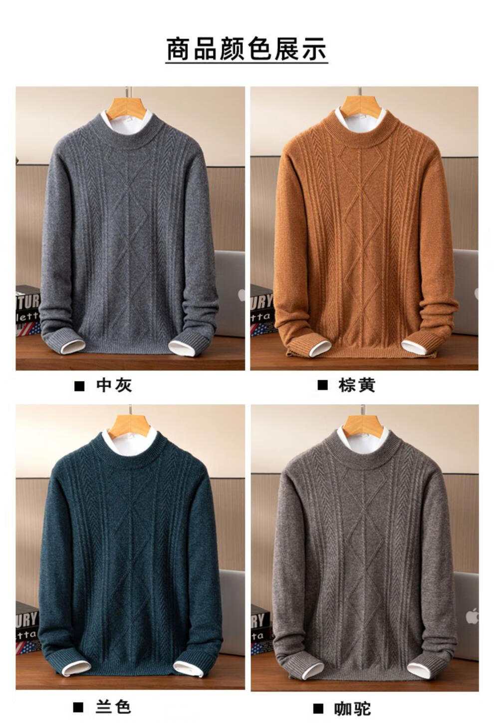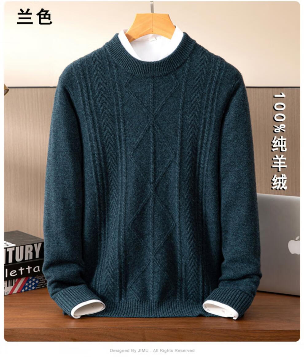 EMZ鄂尔多斯市冬季男士羊绒衫圆领100纯羊绒中年加厚大码男毛衣 兰色【现货】 4XL 190