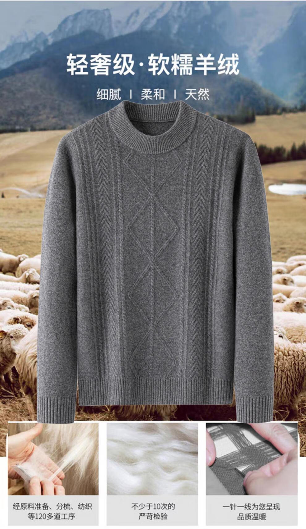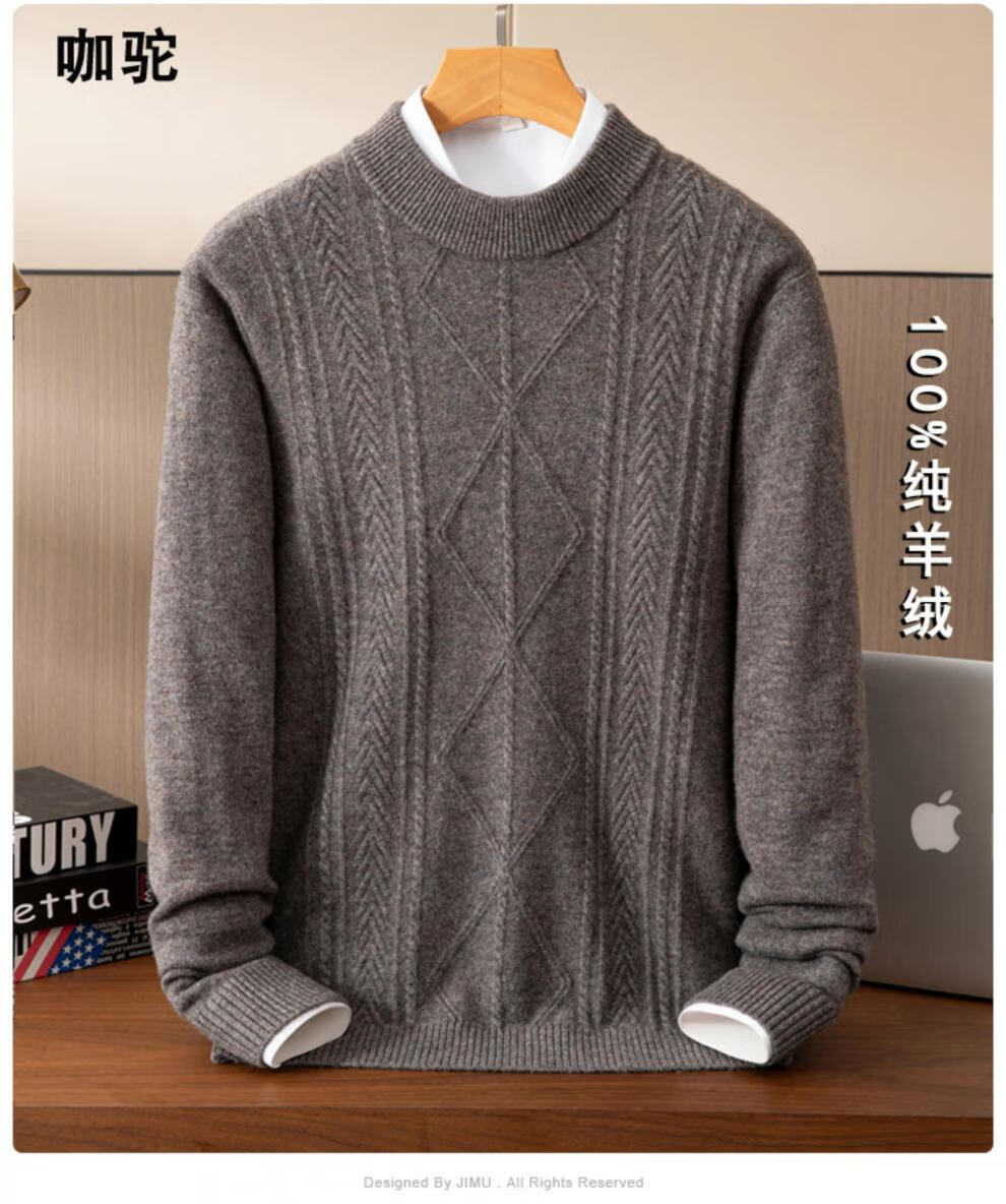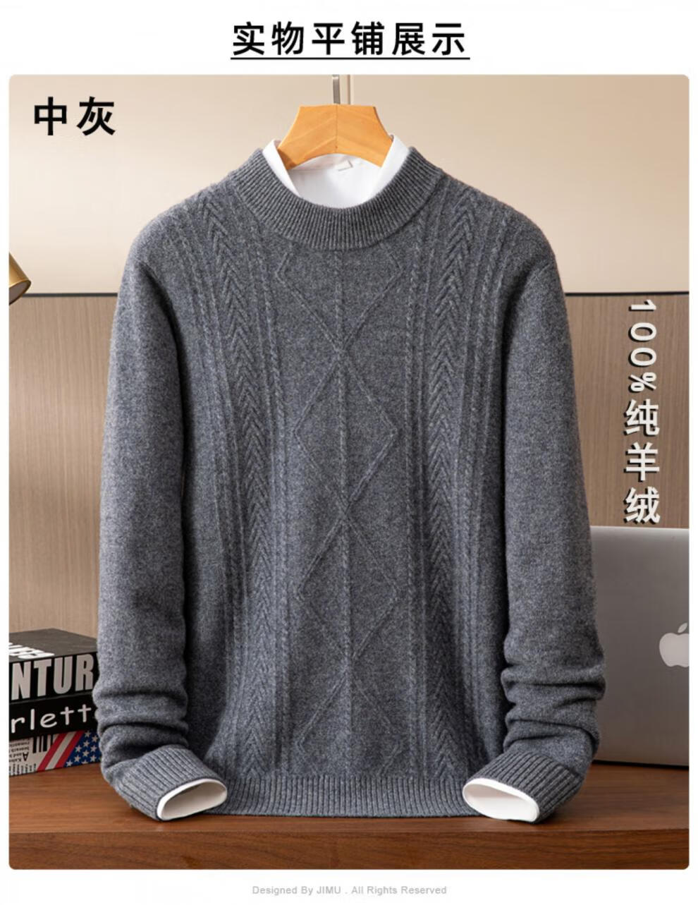 EMZ鄂尔多斯市冬季男士羊绒衫圆领100纯羊绒中年加厚大码男毛衣 兰色【现货】 4XL 190