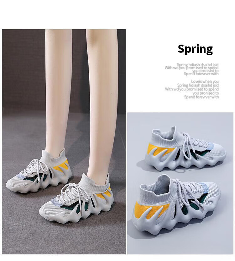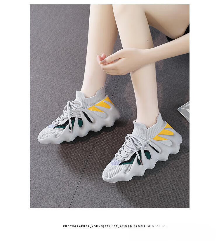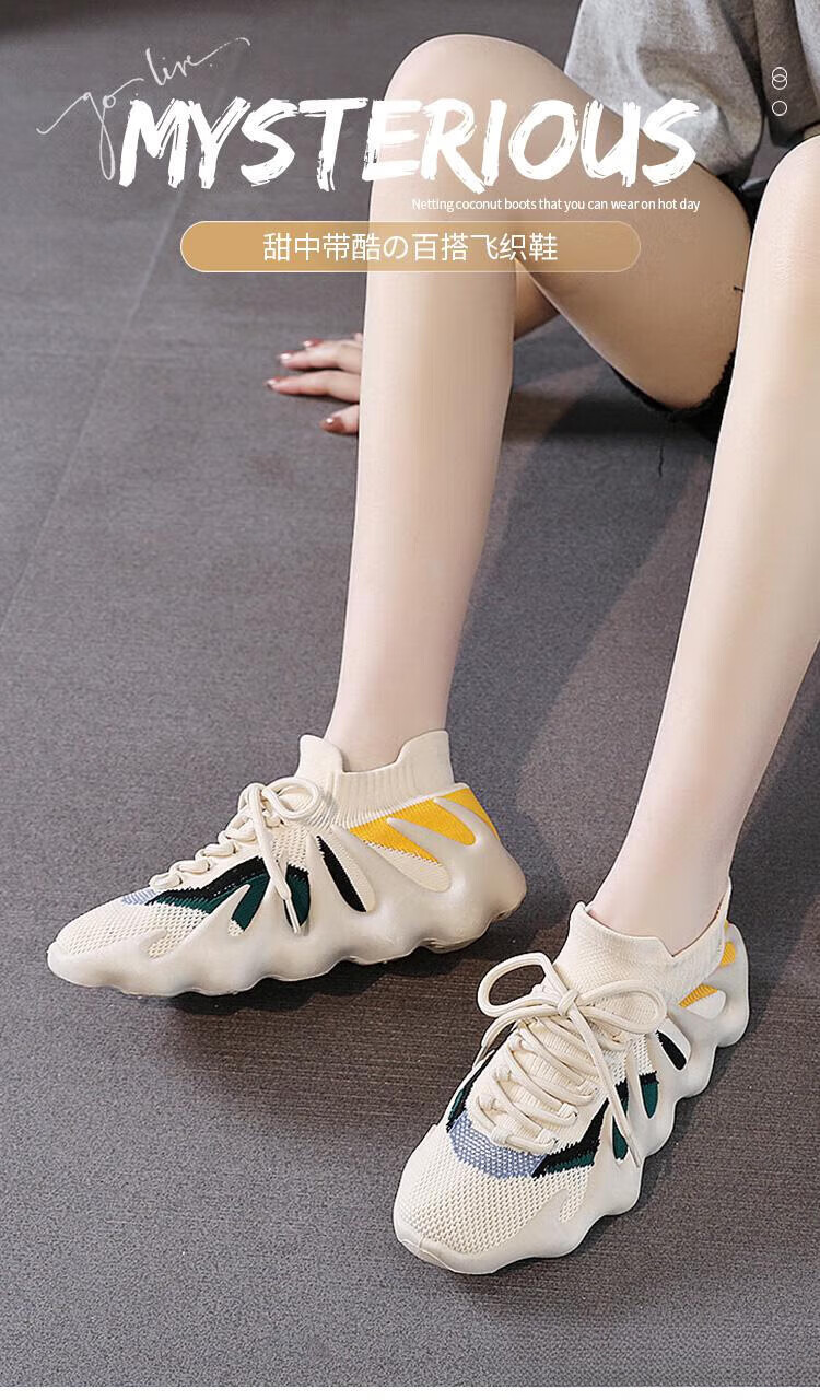FSAT八爪鱼女鞋夏季飞织网面透气休闲运动软底跑步网鞋椰子鞋潮火山鞋 灰色 42