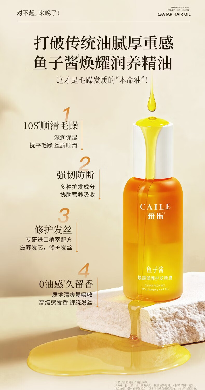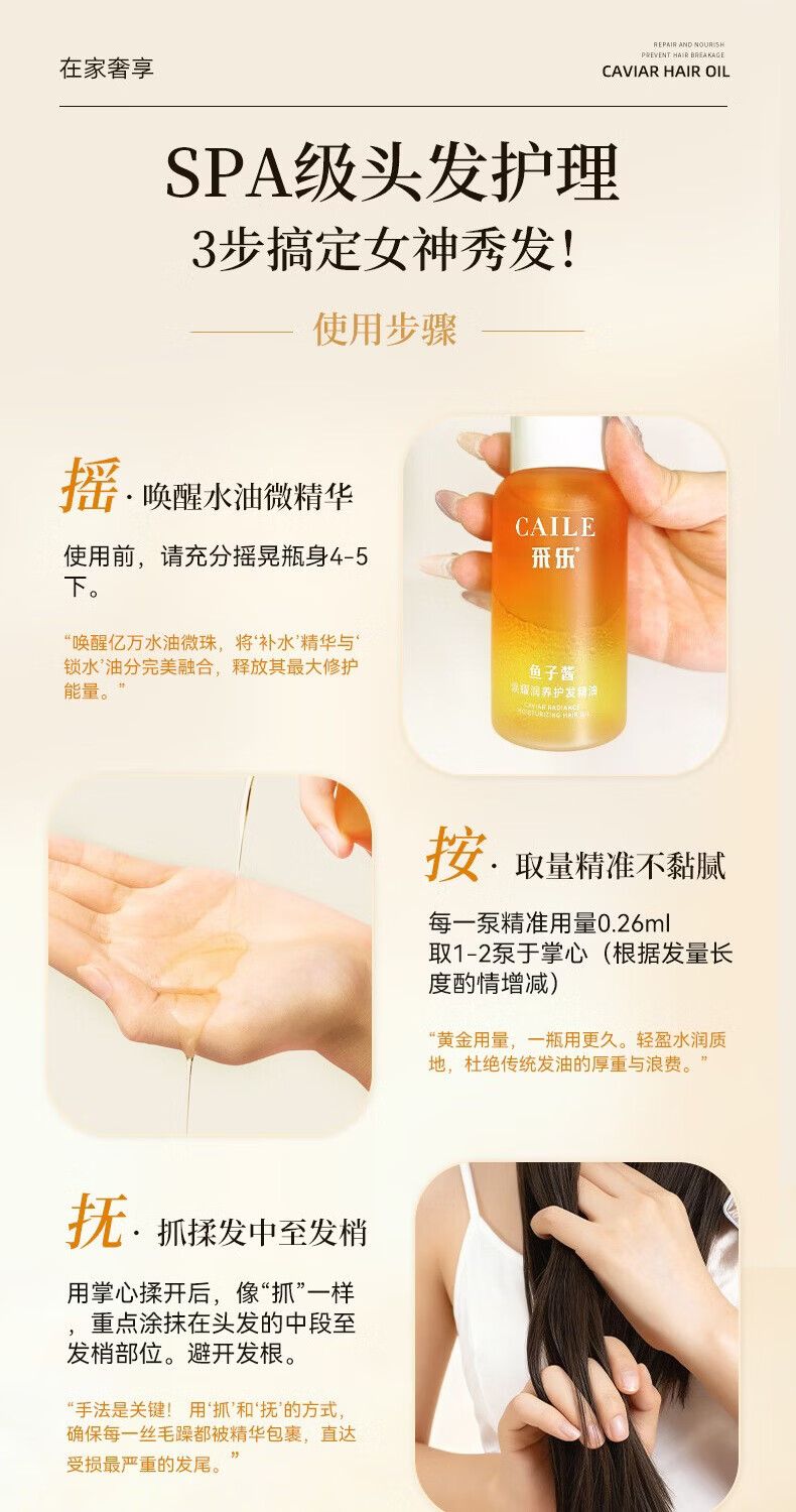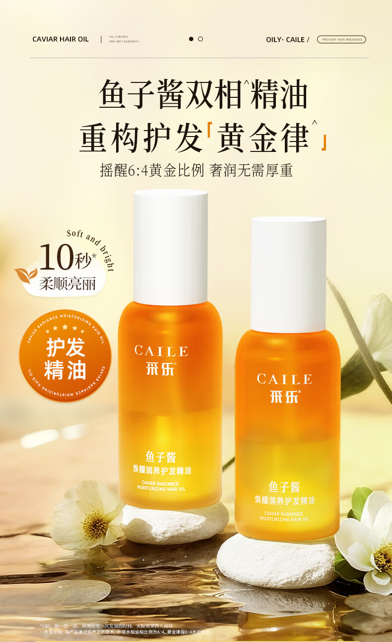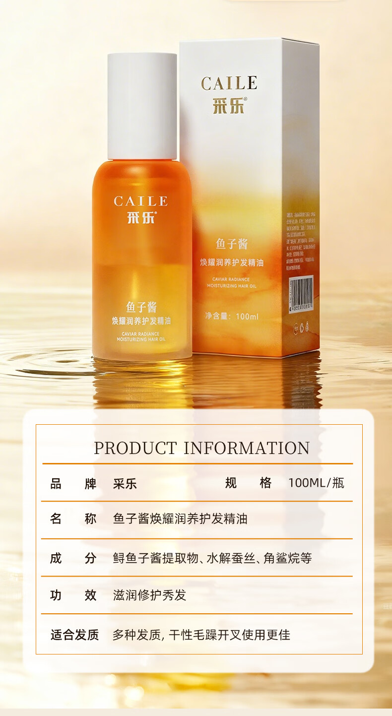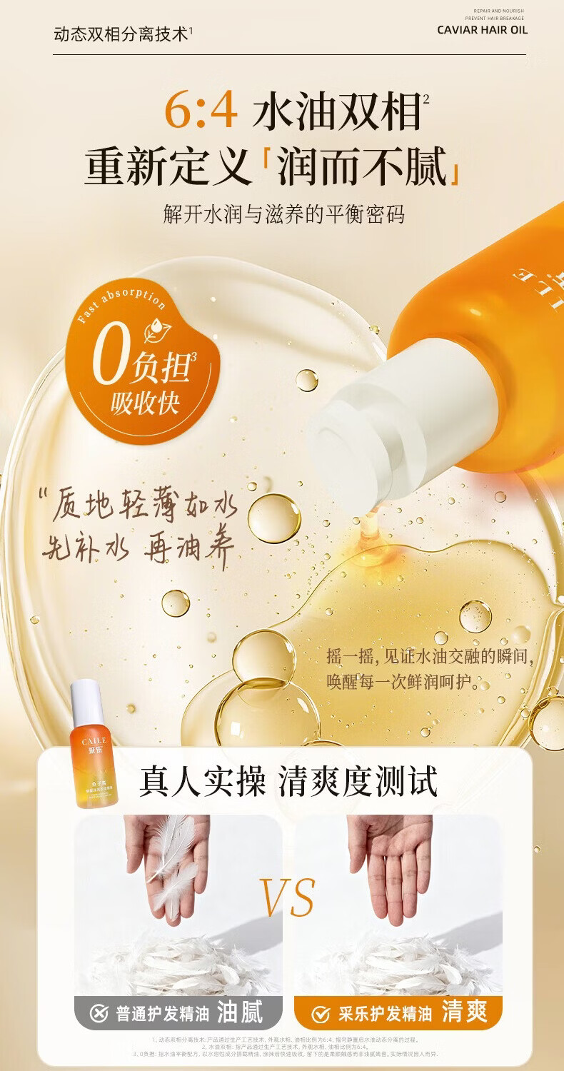 采乐鲟鱼子酱护发精油轻盈顺滑润发精油滋养修护防毛躁 【鱼子酱护发精油】长久滋养 100ml*2瓶