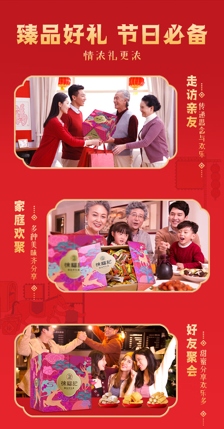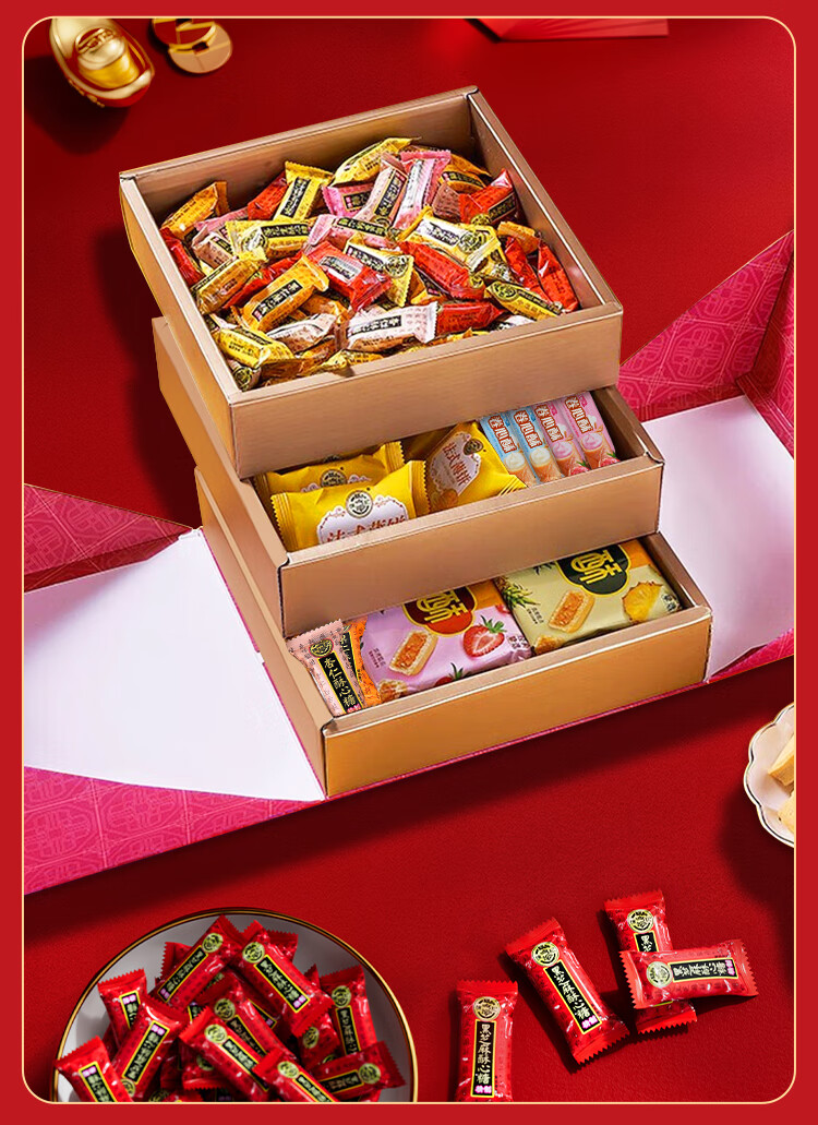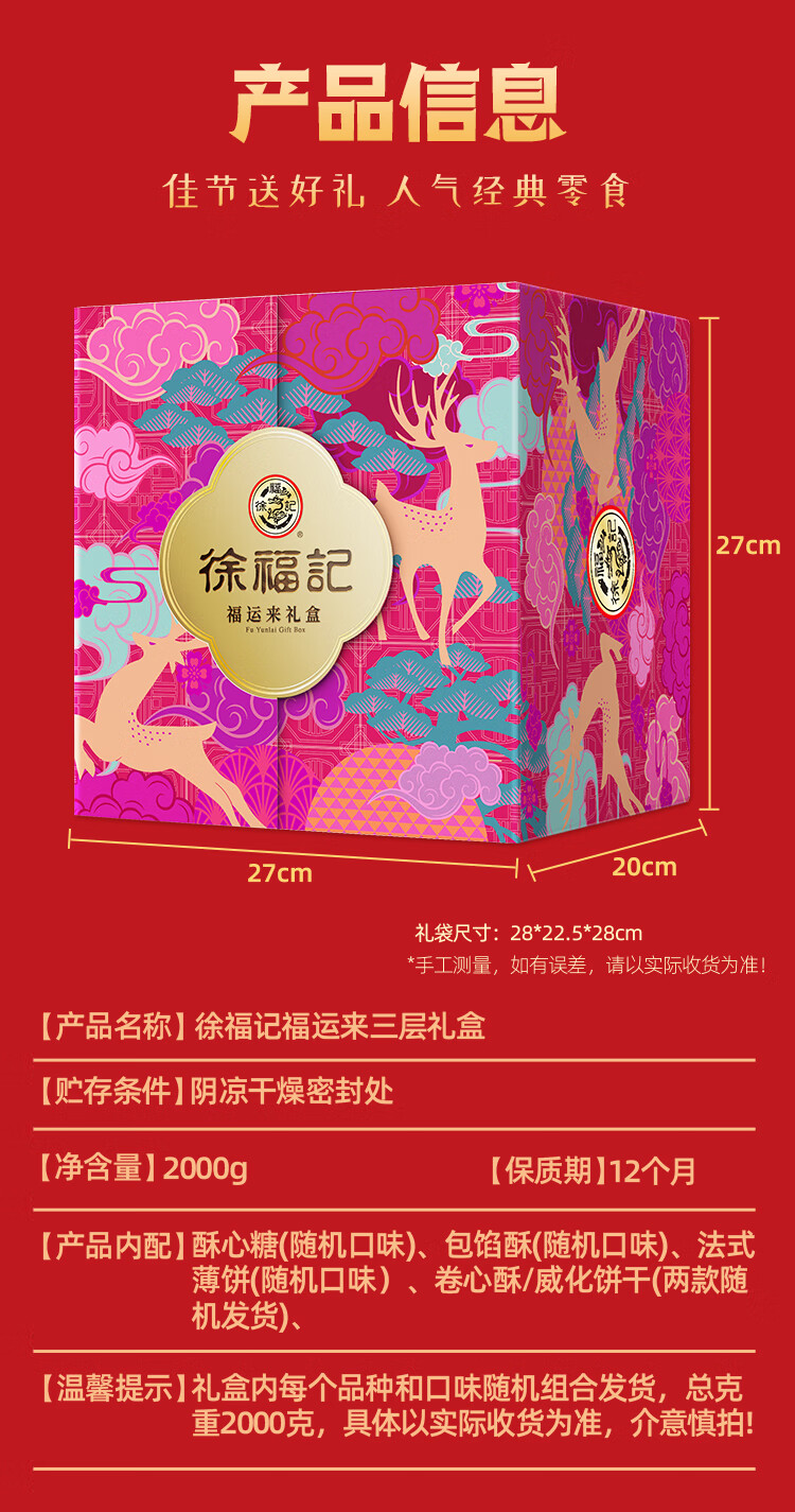 徐福记高端三层 年货礼盒2000g 糖果糕点零食 春节过年礼品 侯明昊推荐