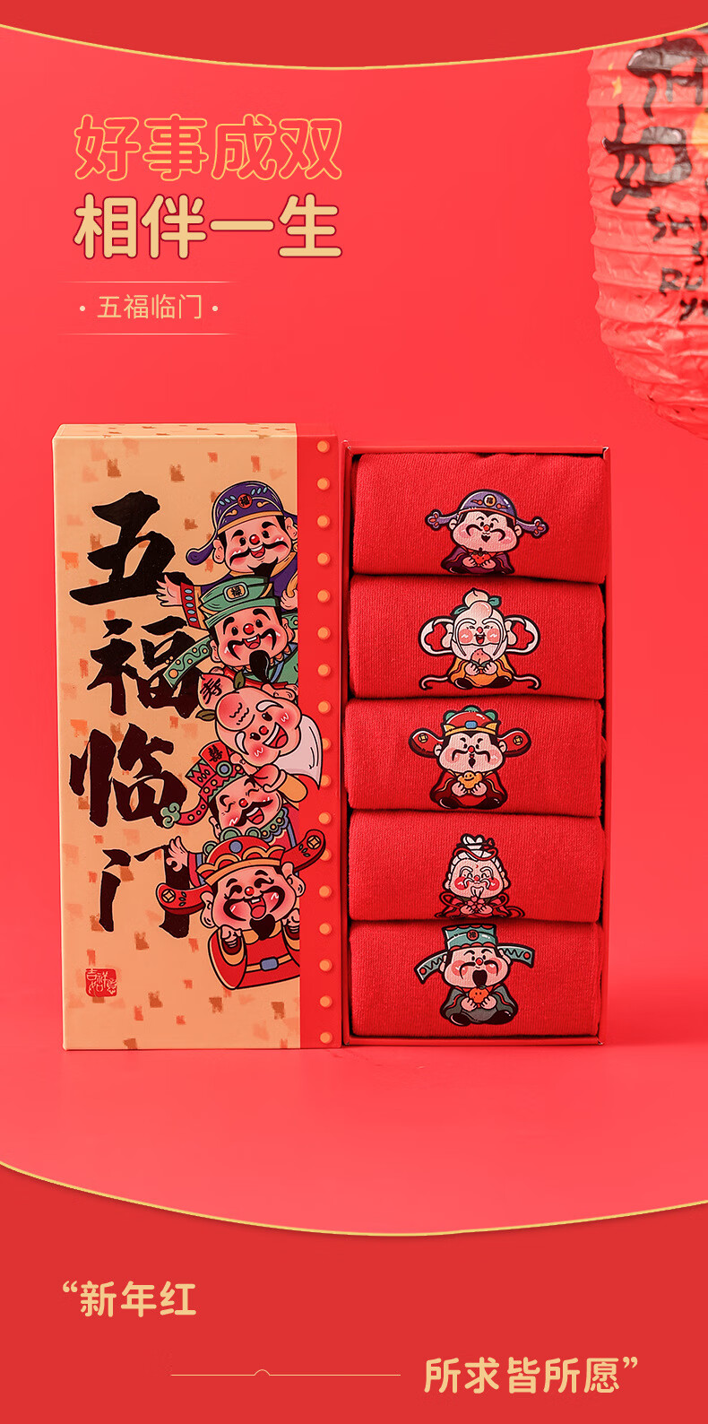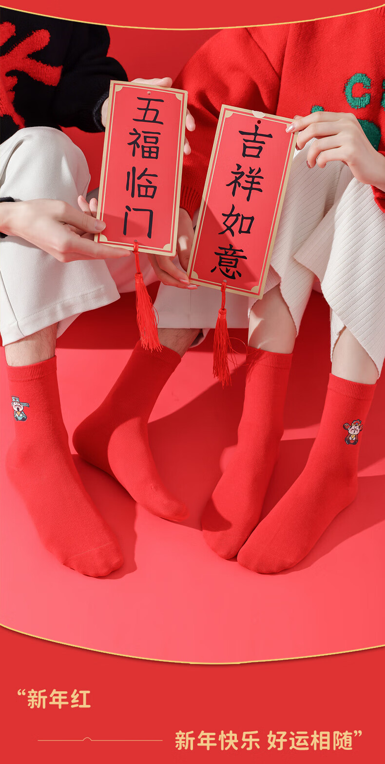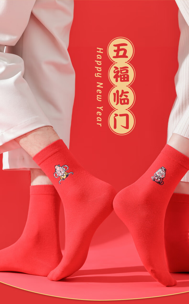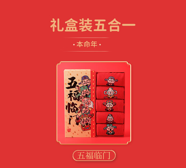 相于中马年鸿运袜礼盒装本命年红袜子男士女士通用红色袜子新年秋冬季 鸿运本命年-五福临门 礼盒装 5双