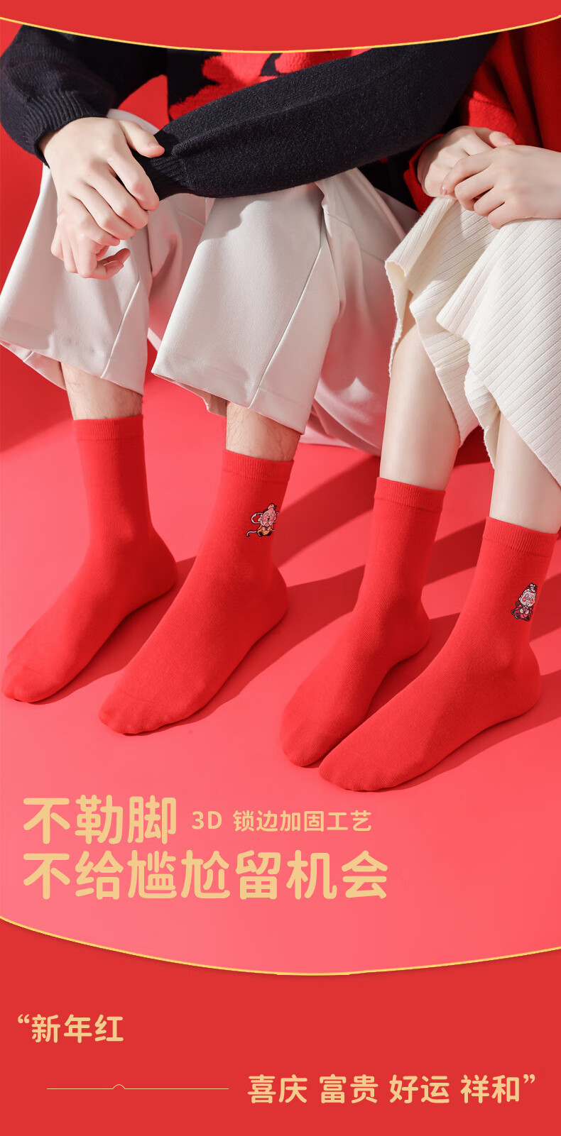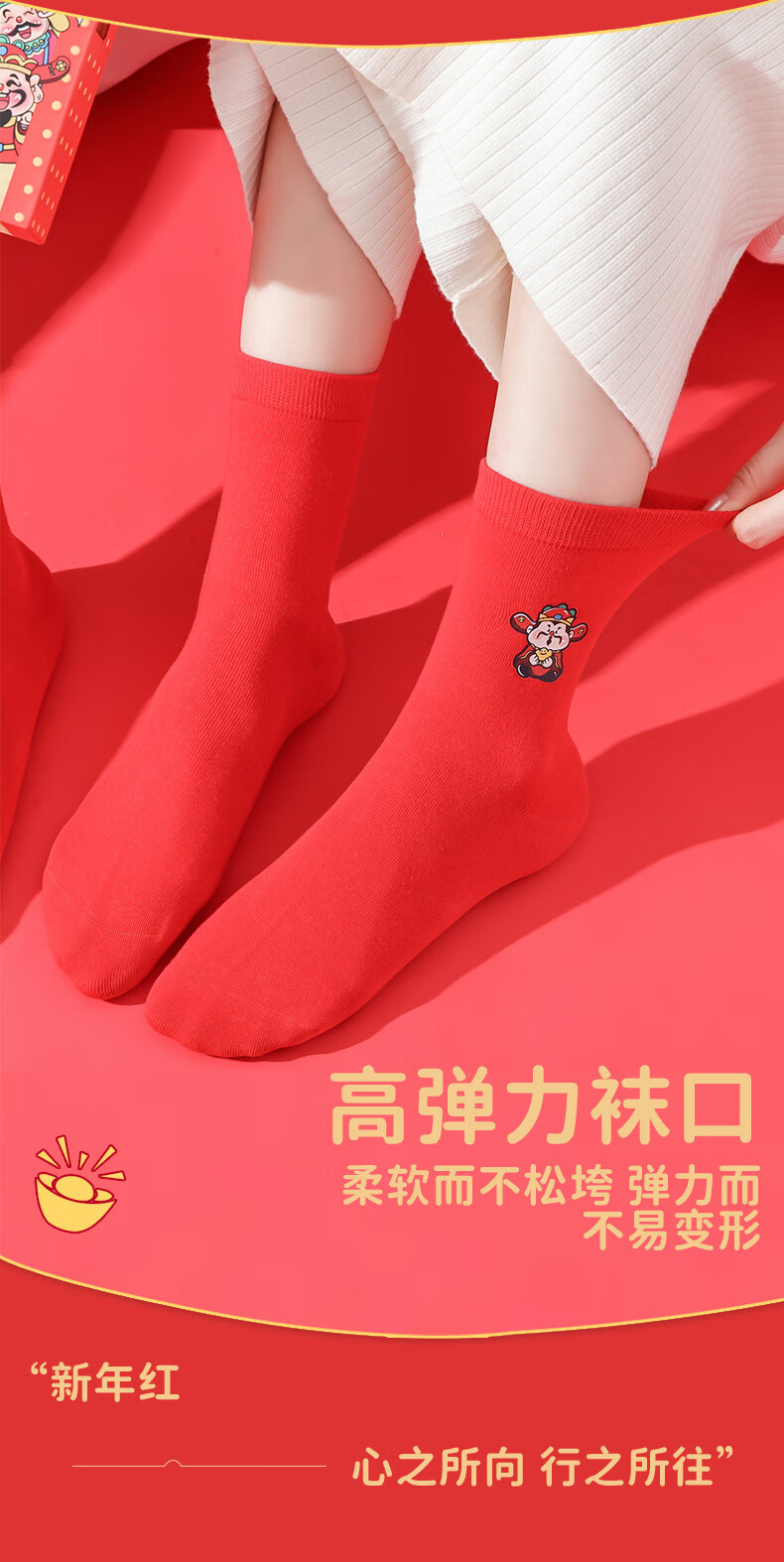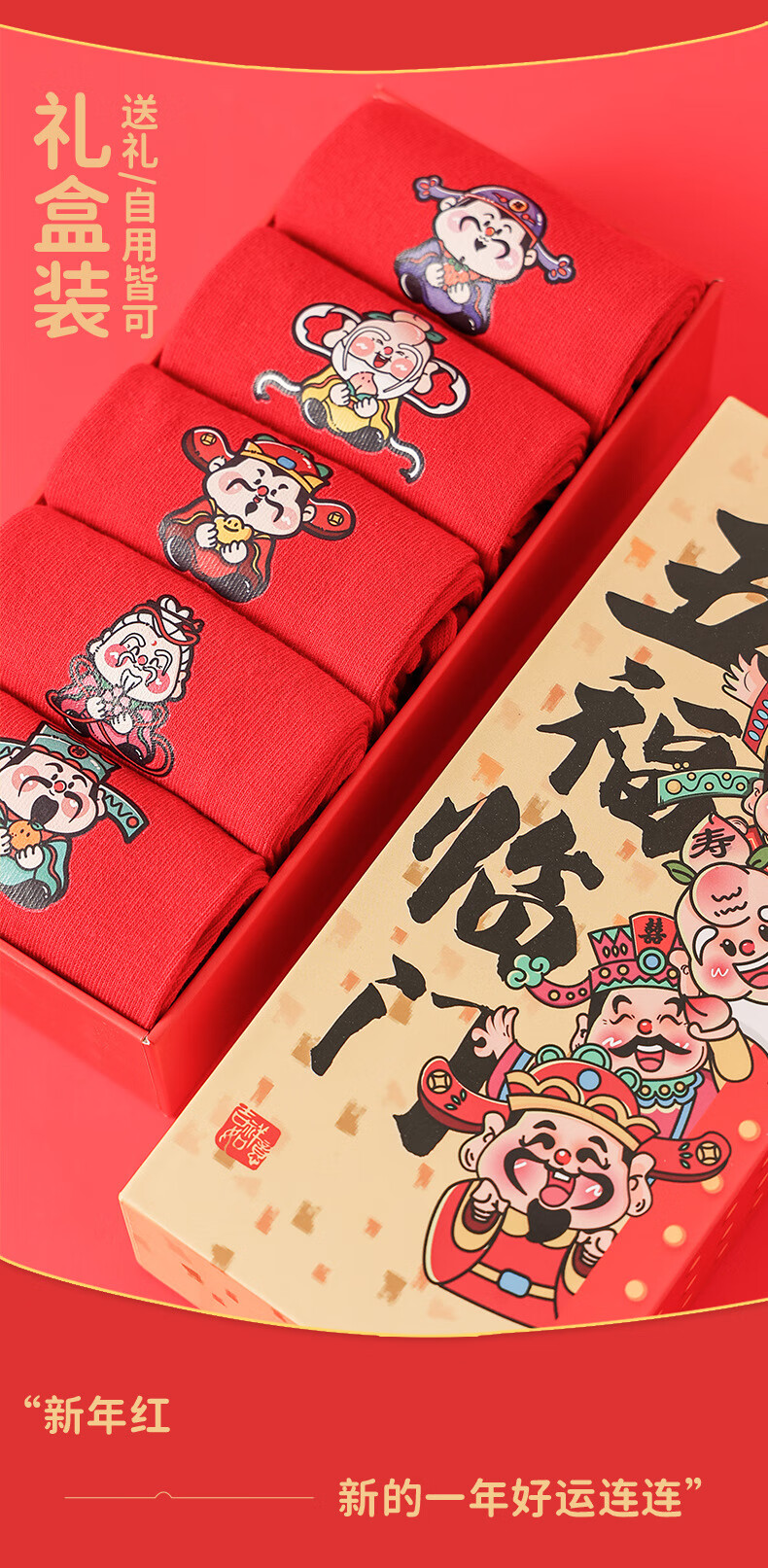 相于中马年鸿运袜礼盒装本命年红袜子男士女士通用红色袜子新年秋冬季 鸿运本命年-五福临门 礼盒装 5双