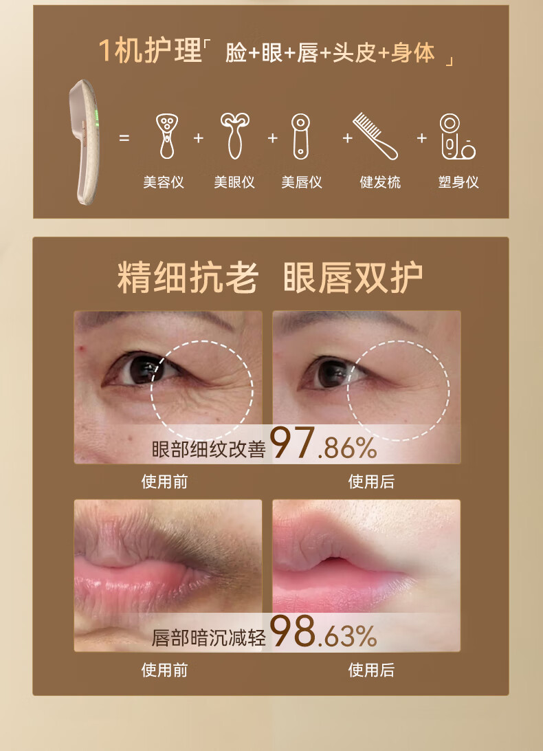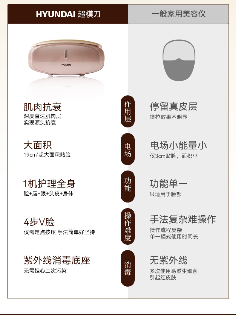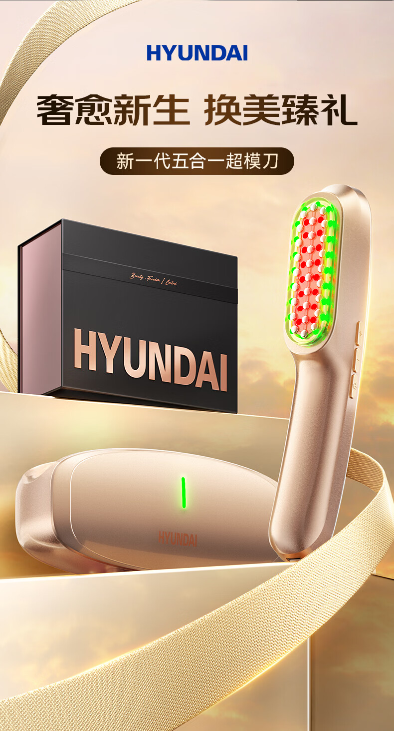 HYUNDAI超膜刀美容仪淡纹肌肉抗衰家用脸部按摩仪提拉紧致v脸神器光子嫩肤瘦脸固发情人节礼物送女友老婆 【全能顶奢充电款】紧致V脸+美唇+亮眼+健发+塑形