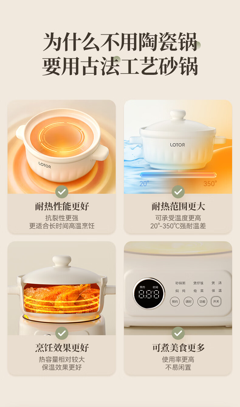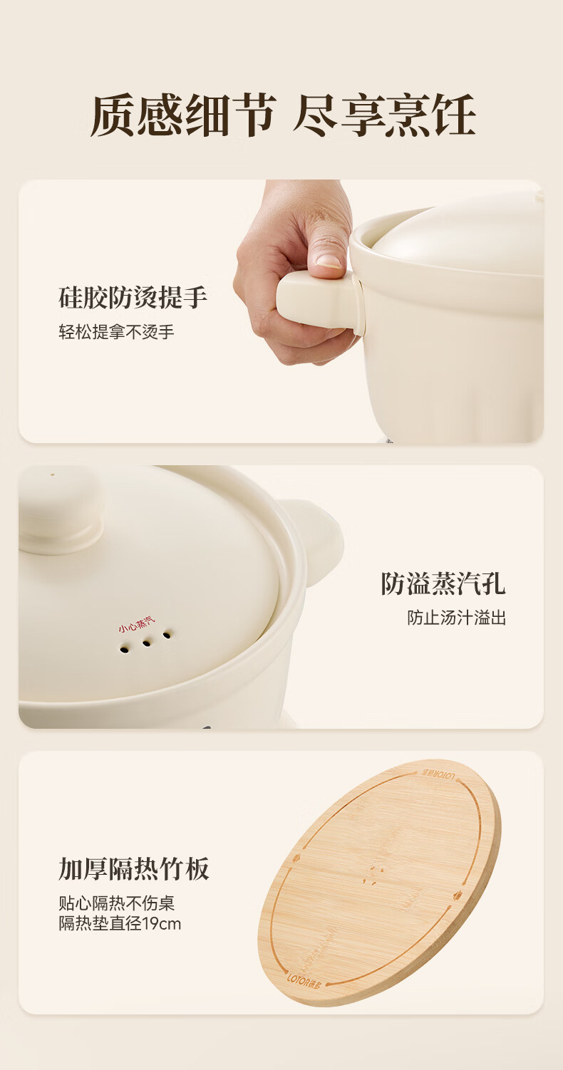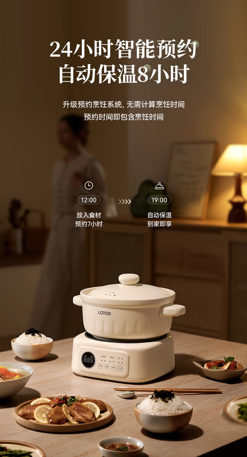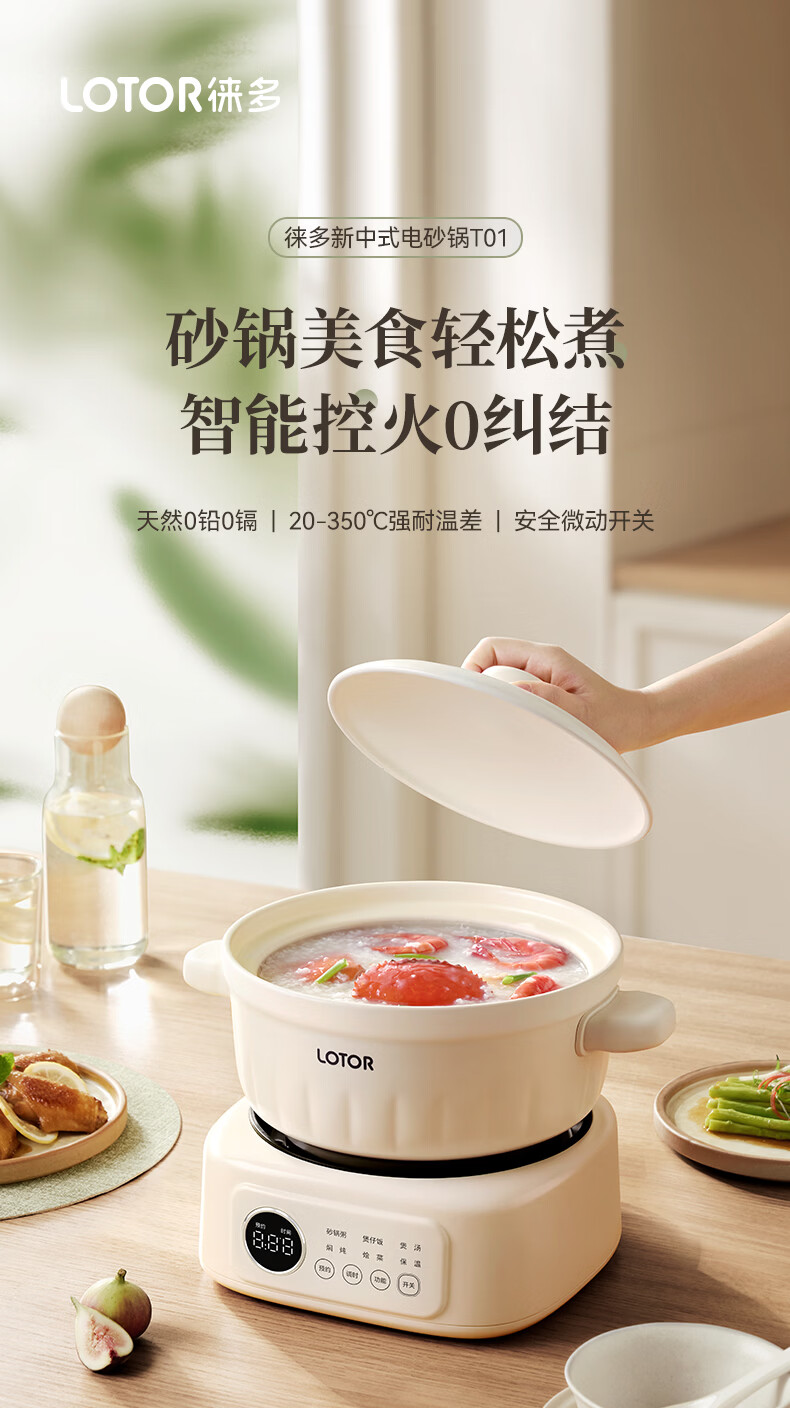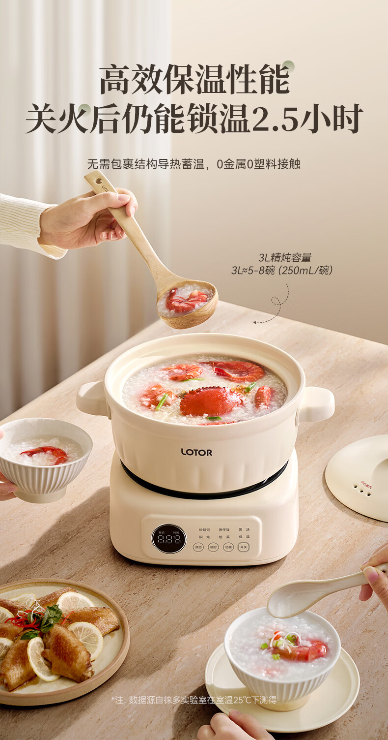 LOTOR徕多电炖锅电砂锅电炖盅煲汤锅家用耐高温中华炽陶内胆炖肉锅煲粥炖汤养生煮粥锅熬粥养生锅