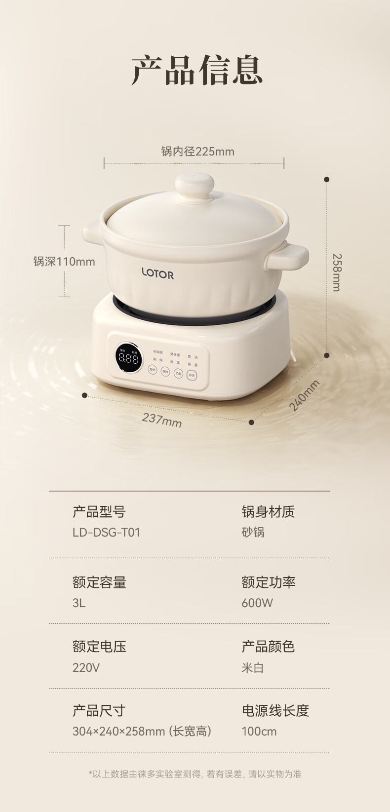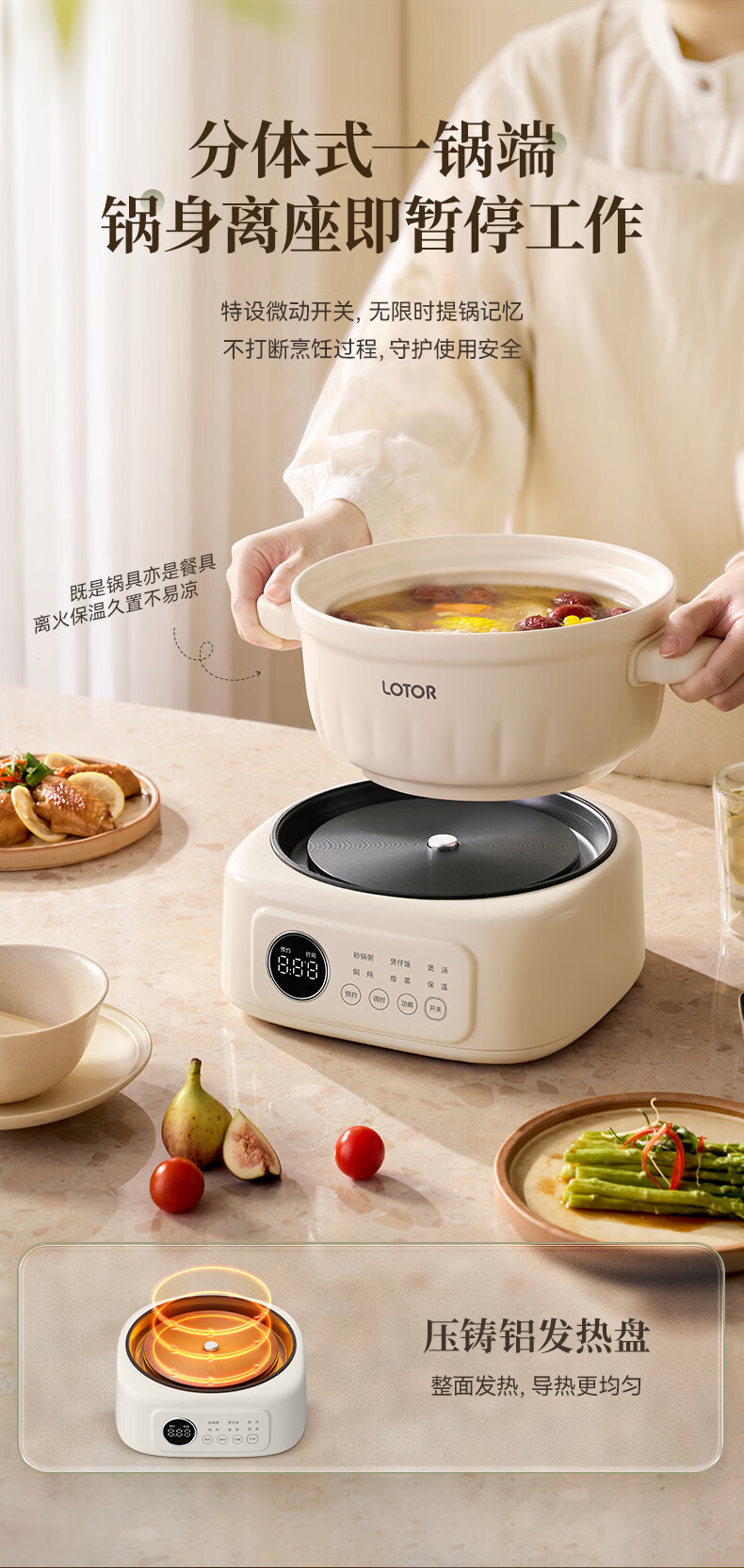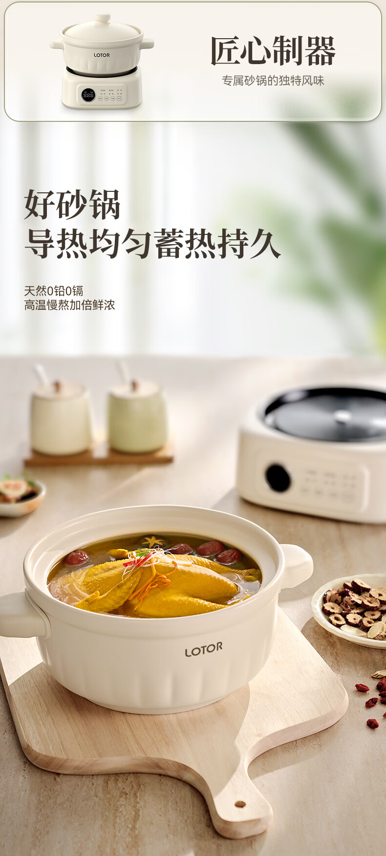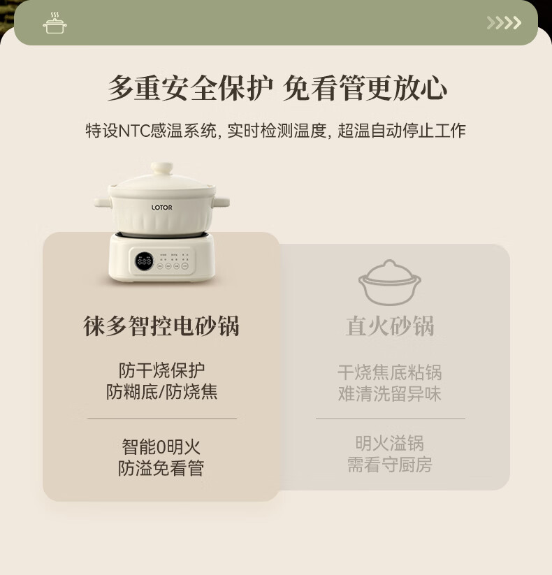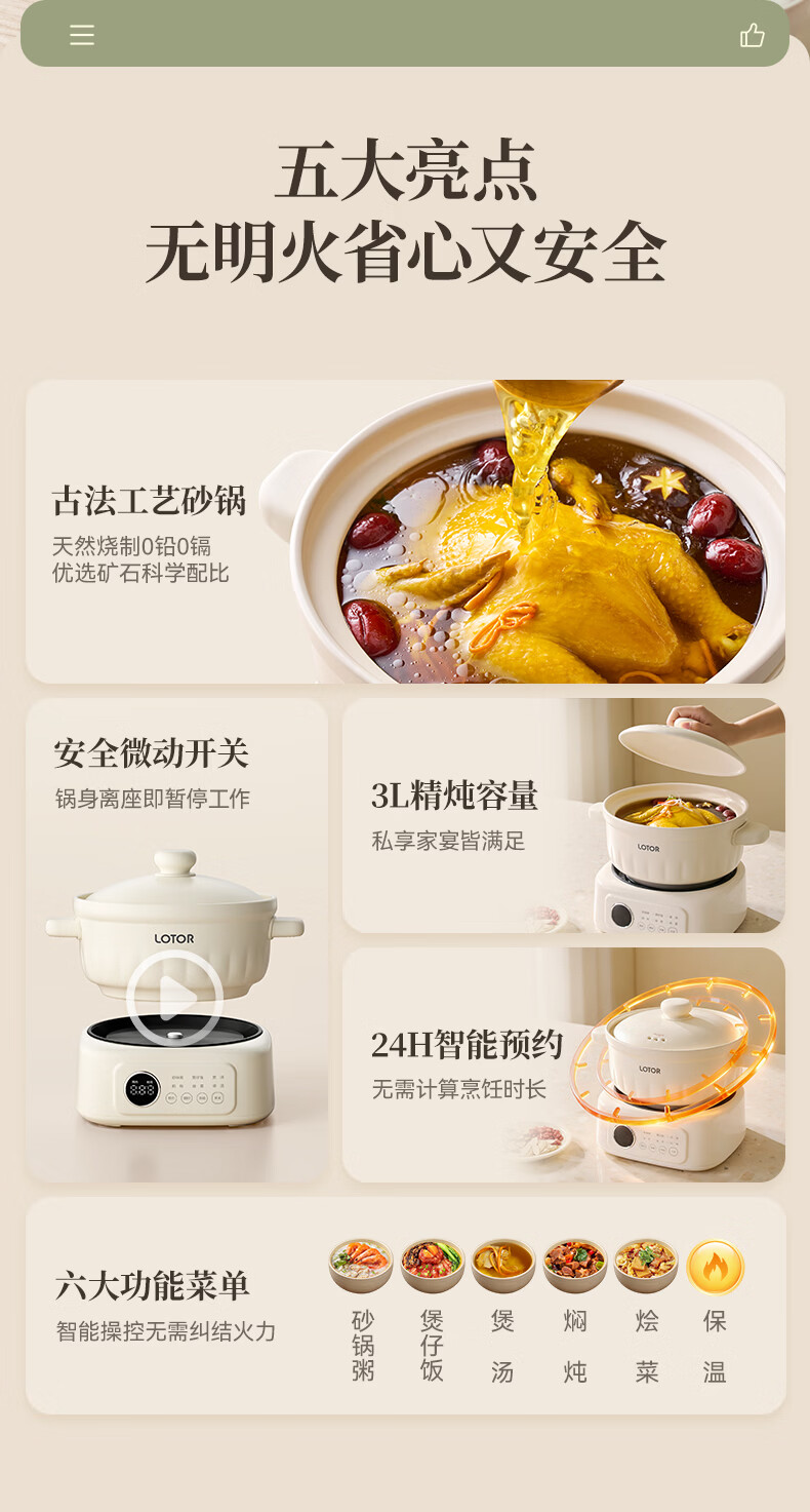 LOTOR徕多电炖锅电砂锅电炖盅煲汤锅家用耐高温中华炽陶内胆炖肉锅煲粥炖汤养生煮粥锅熬粥养生锅