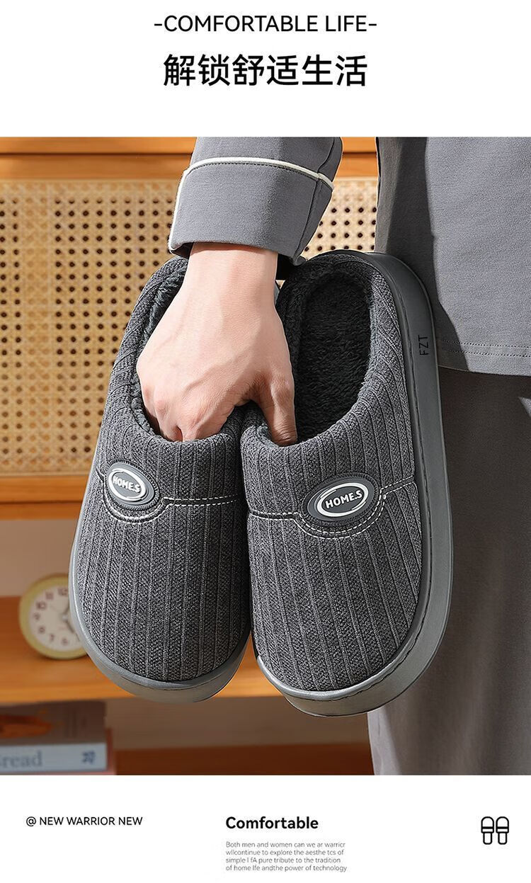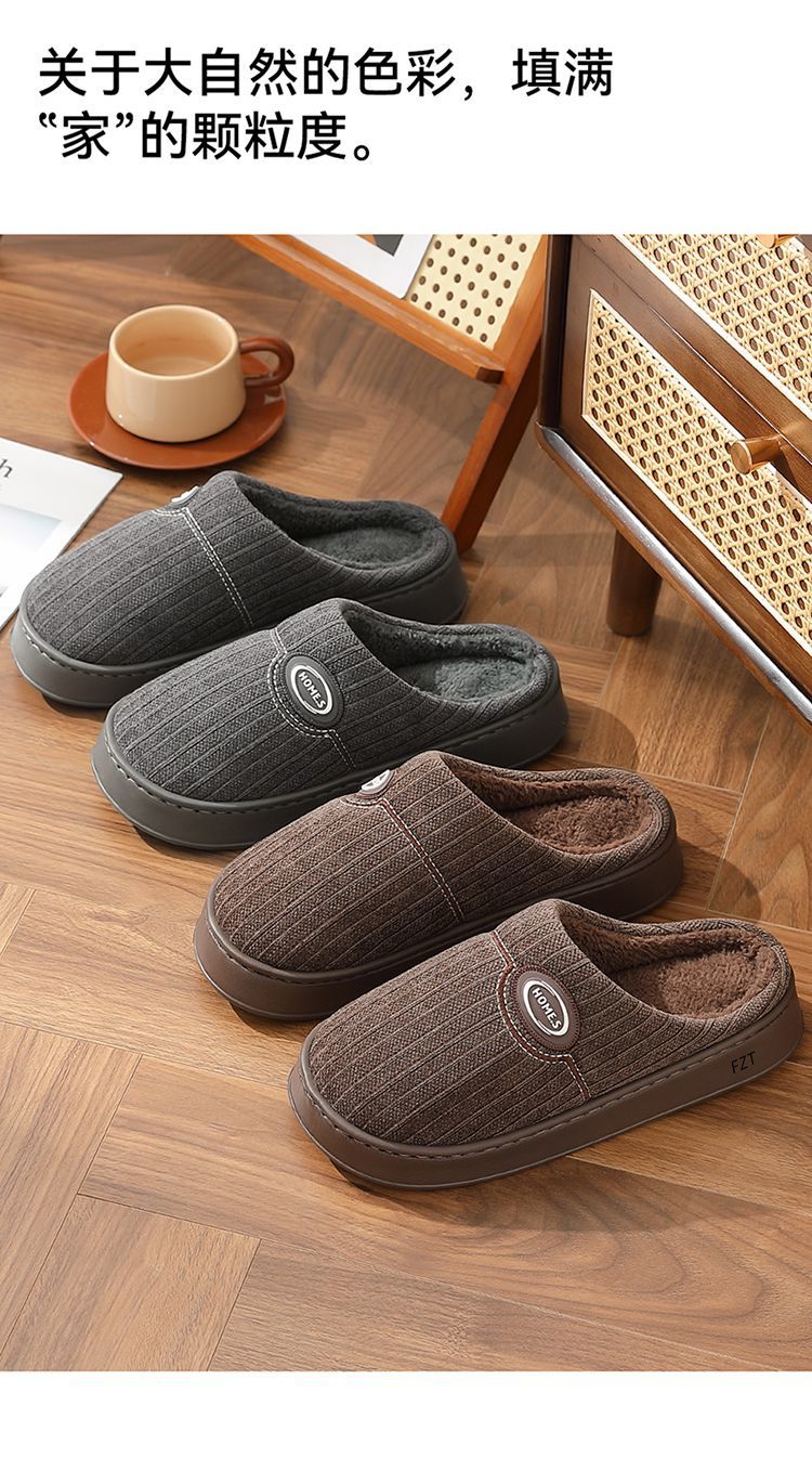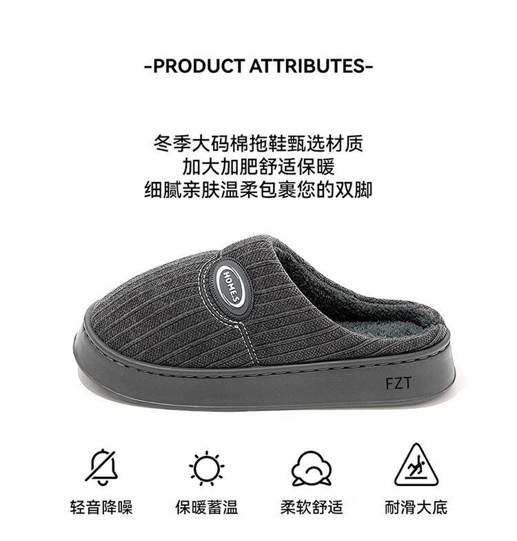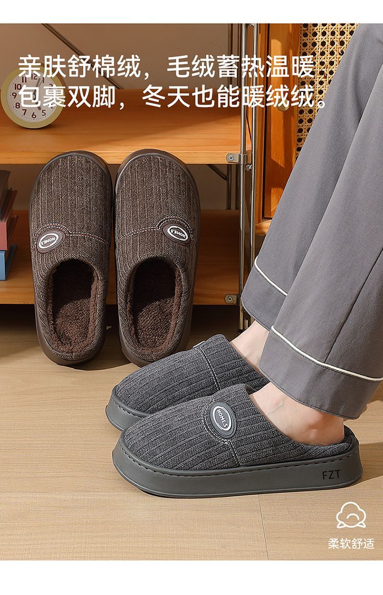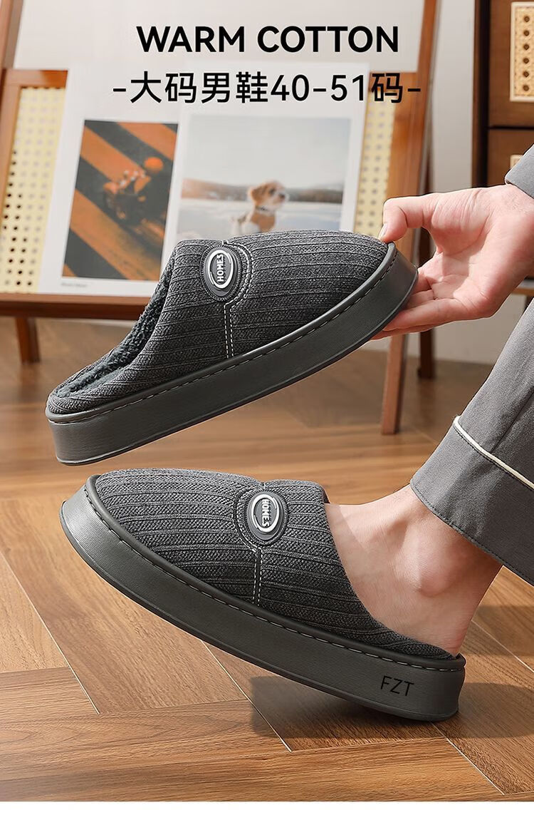 FZT男士大码防臭棉拖鞋男款冬季家居室内保暖防滑踩屎感外穿棉拖鞋男 深咖 40-41 【标准码内长25.0CM】
