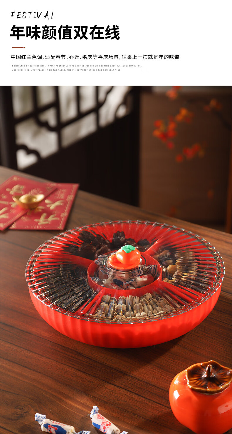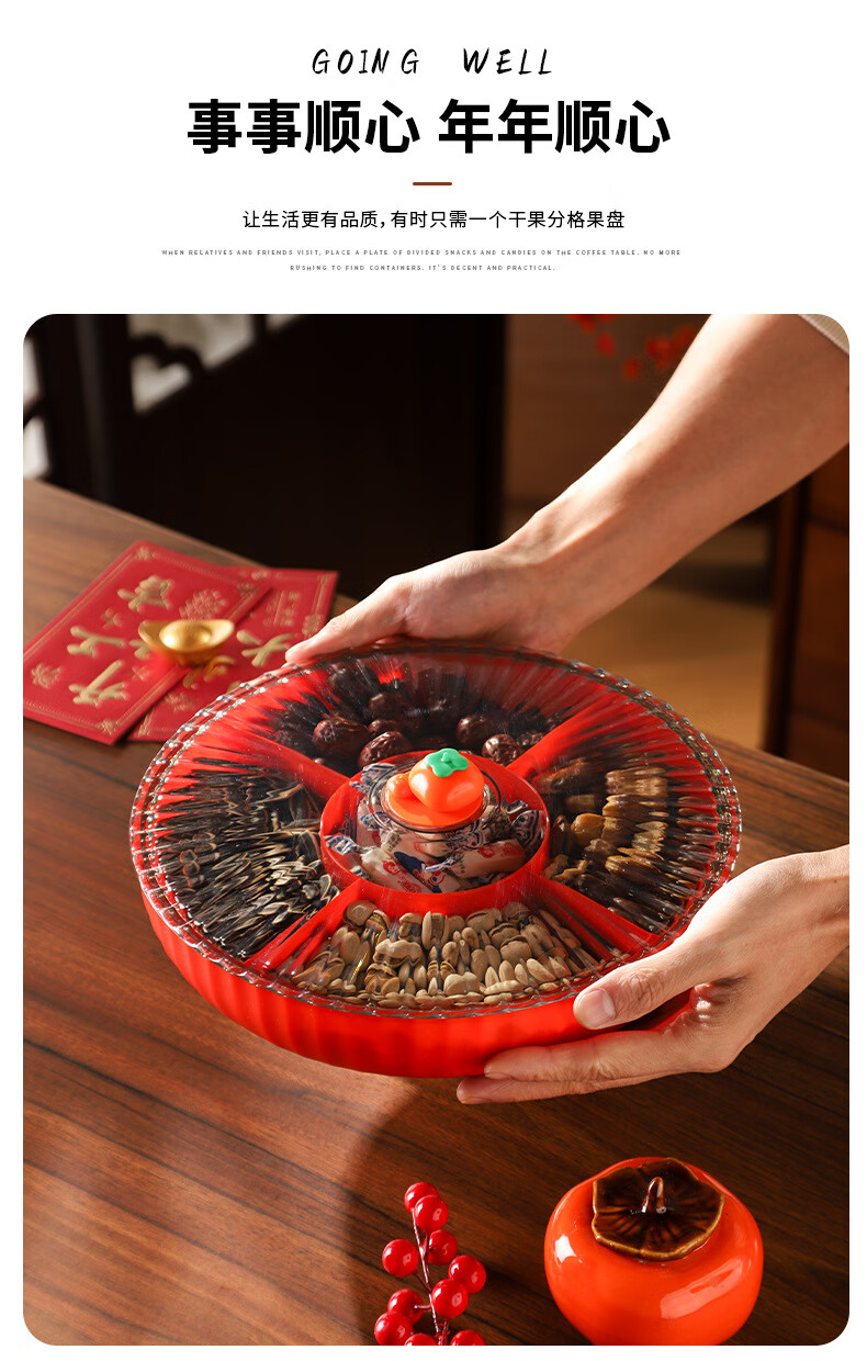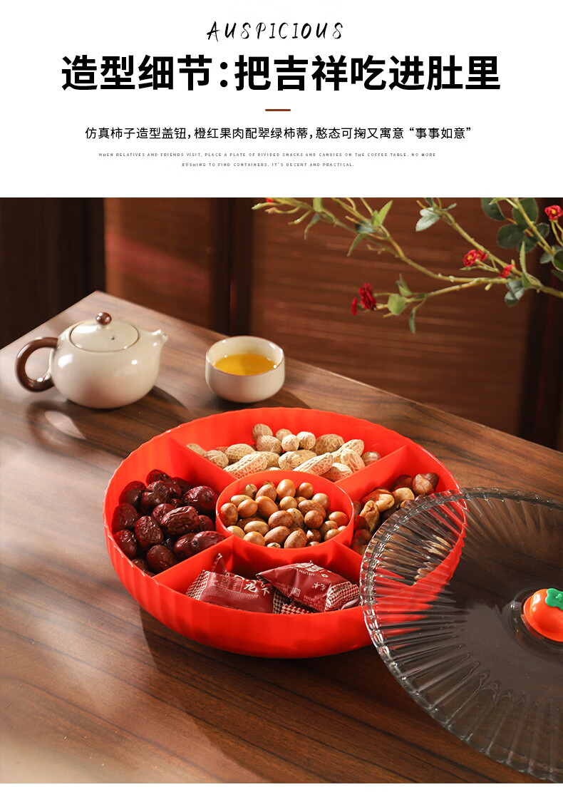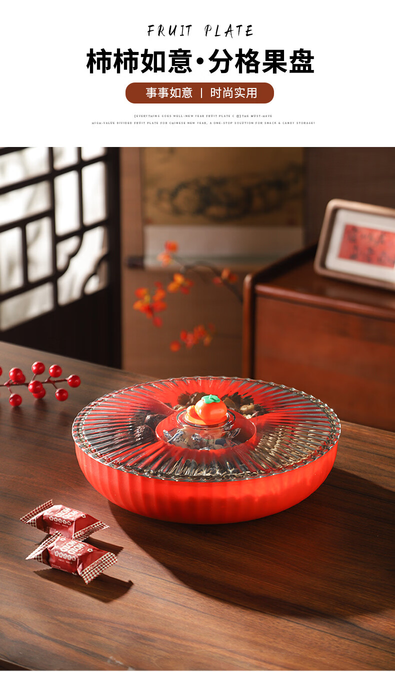 首饰盒 柿柿如意糖果盒新年家用坚果盘客厅干果零食盒家用轻奢 柿柿如意果盘【1个】
