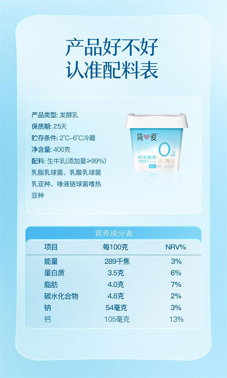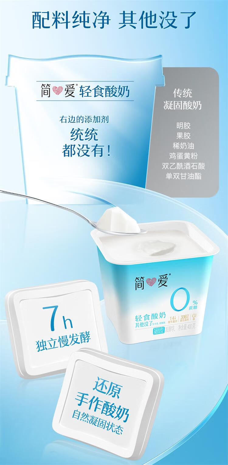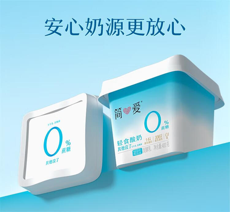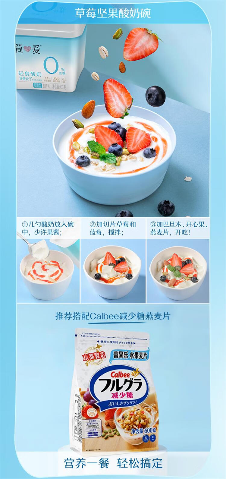 简爱轻食酸奶0%蔗糖400g*1低温酸奶大桶分享装健身代餐DIY干噎酸奶碗