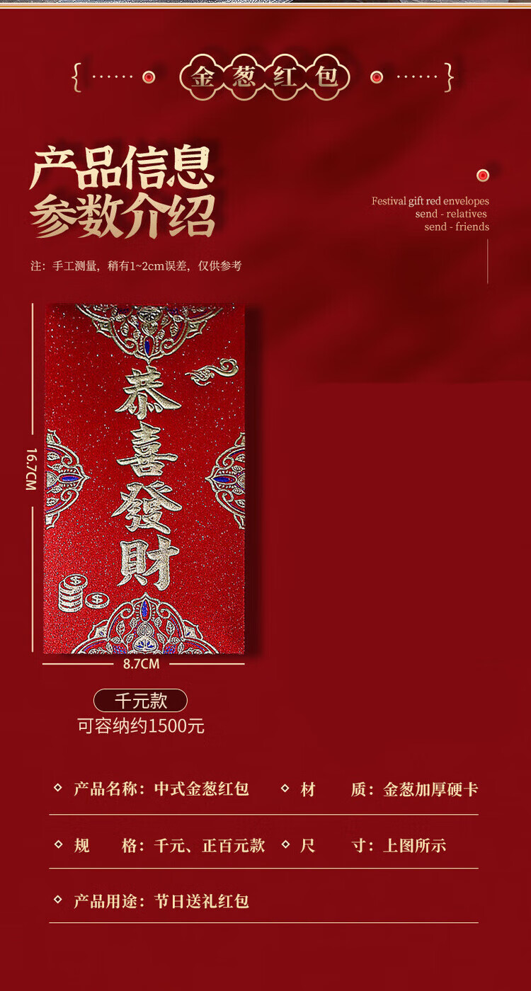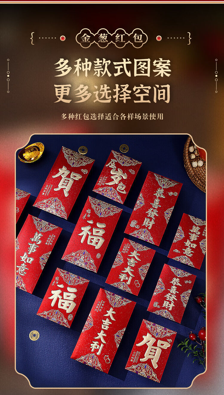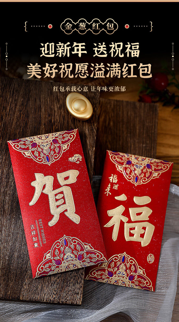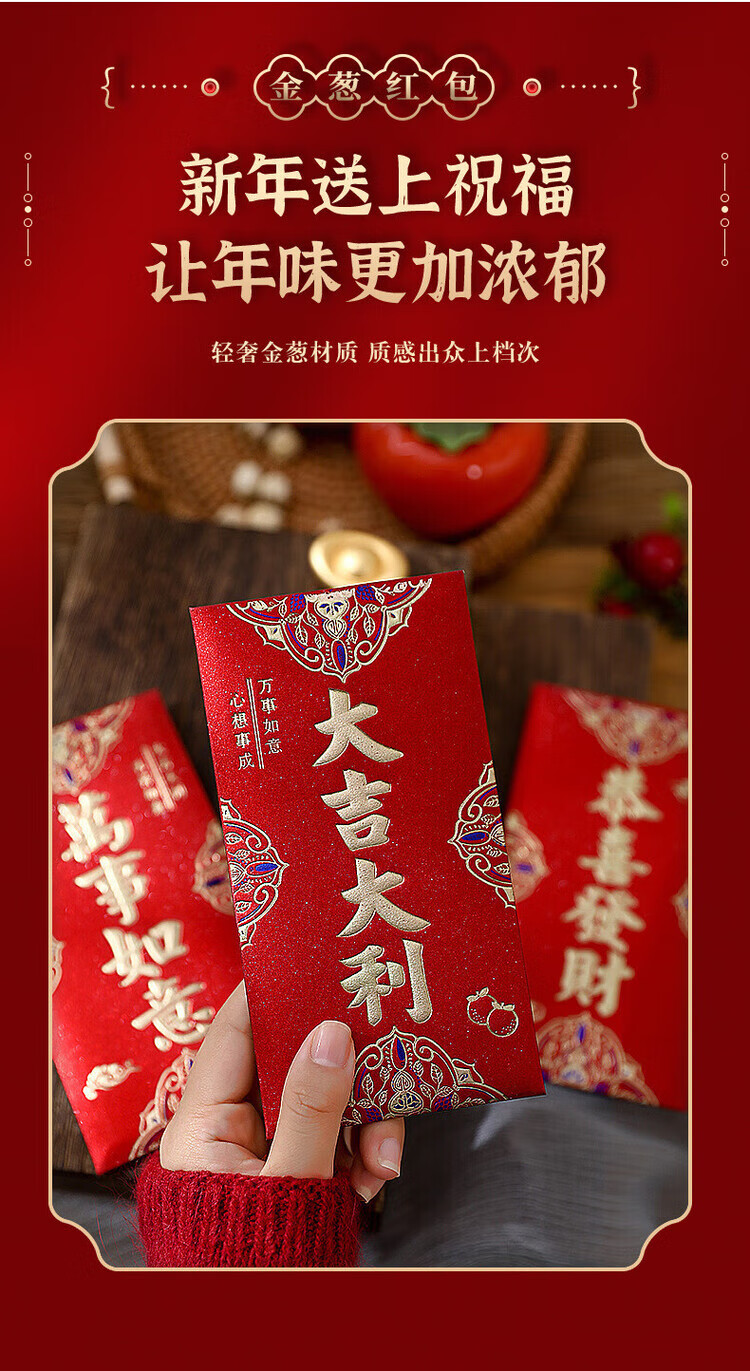 新款磨砂红包生日过年新款春节大礼包红包 信封信封 大吉大利-大号6个