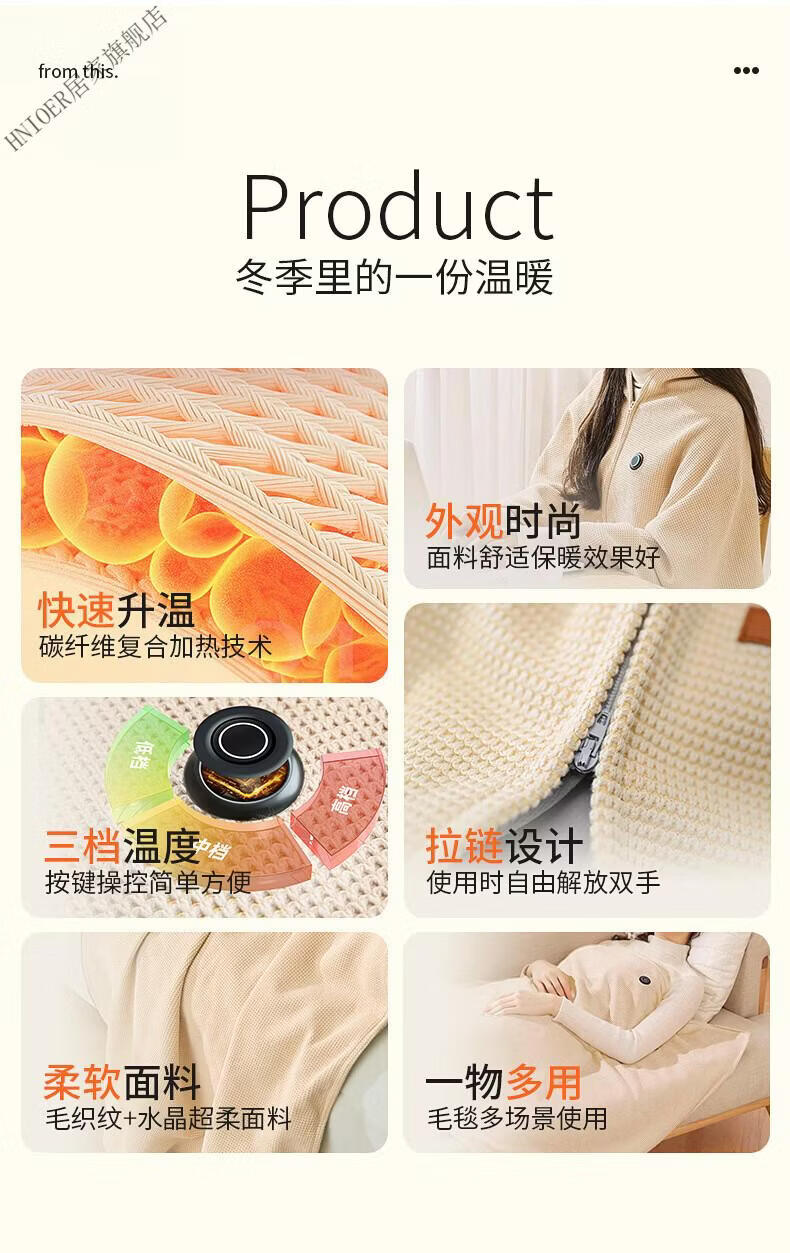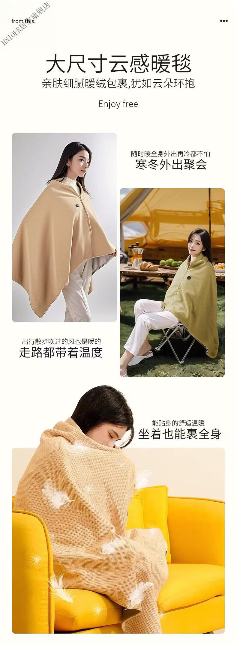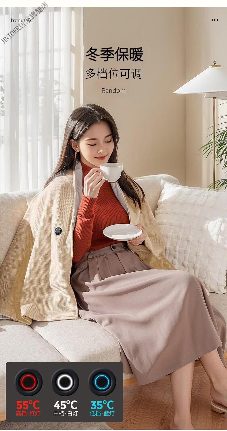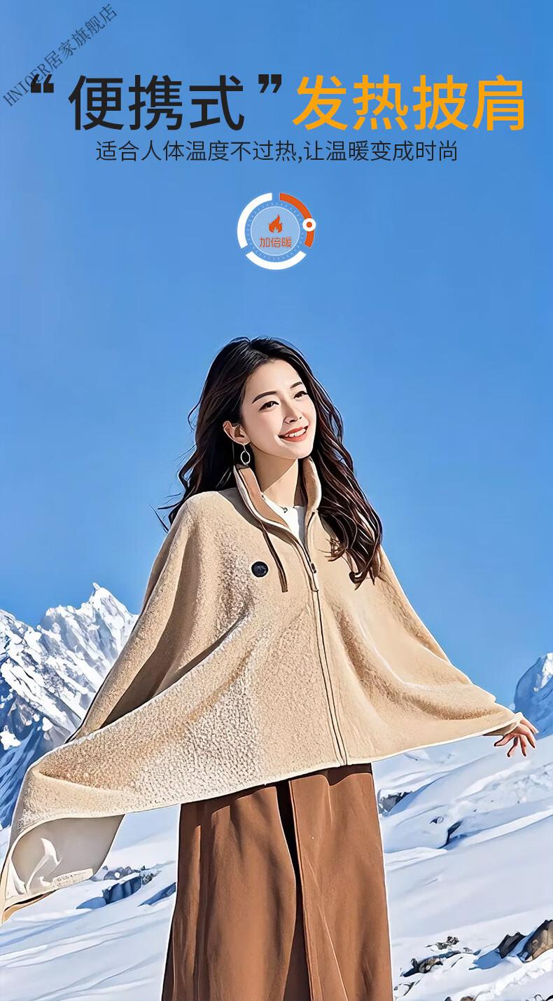 温诗欧电加热暖身毯子电加热披肩毯冬季保温毯可水洗电热毯三档控温保暖 雪花杏+10000毫安充电宝 150cm*80cm