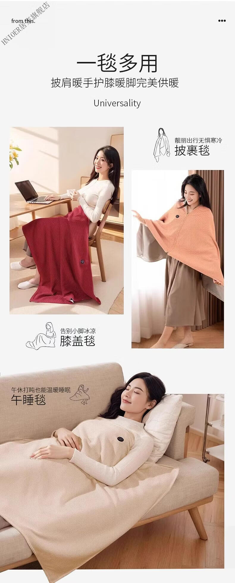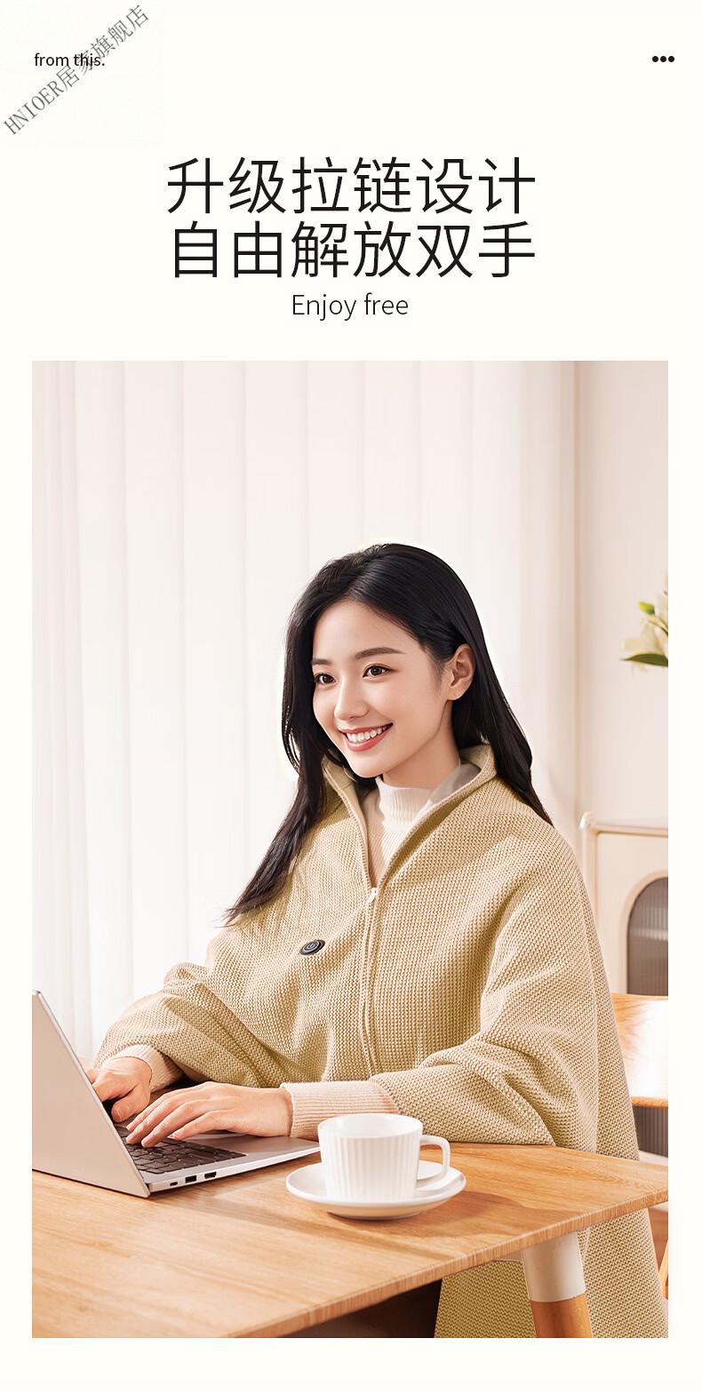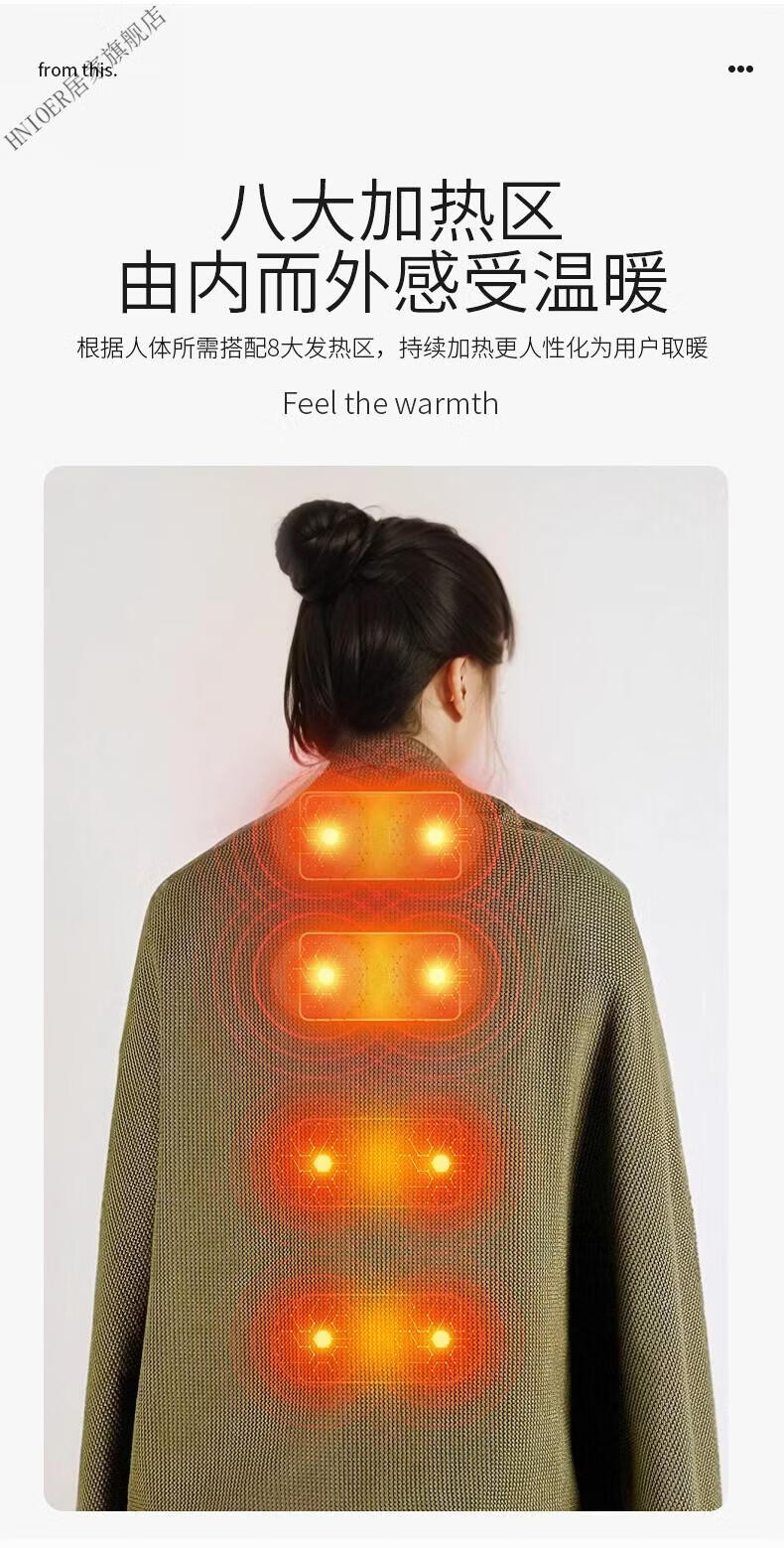 温诗欧电加热暖身毯子电加热披肩毯冬季保温毯可水洗电热毯三档控温保暖 雪花杏+10000毫安充电宝 150cm*80cm
