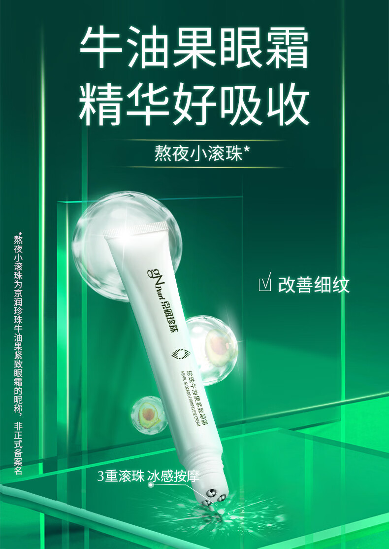 京润珍珠(gNPearl)珍珠牛油果紧致眼霜女15g提拉紧致眼周 牛油果紧致眼霜15g*2