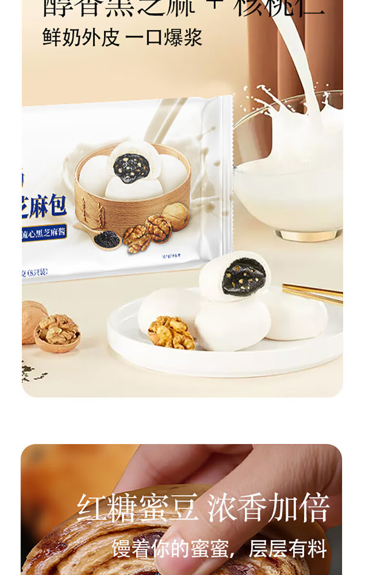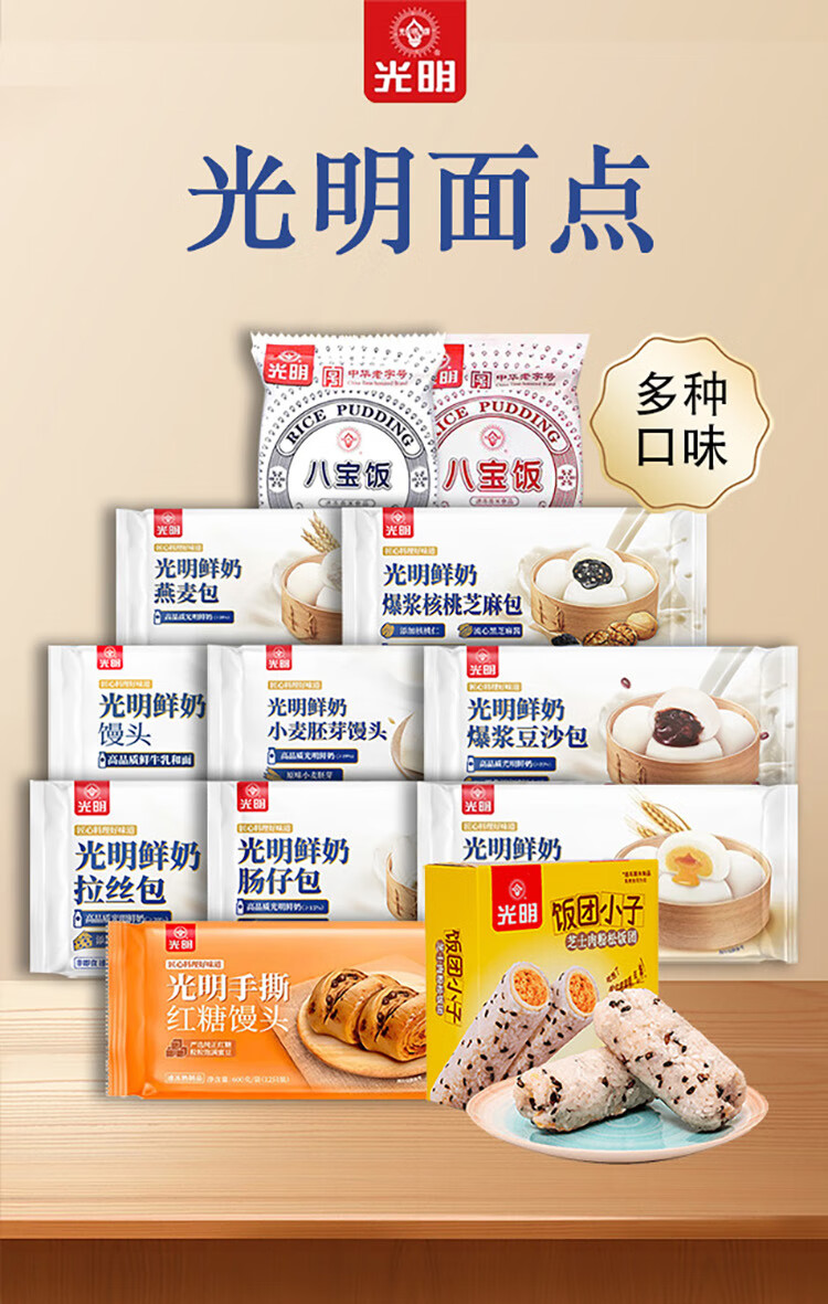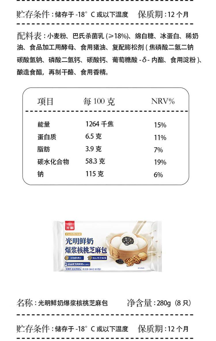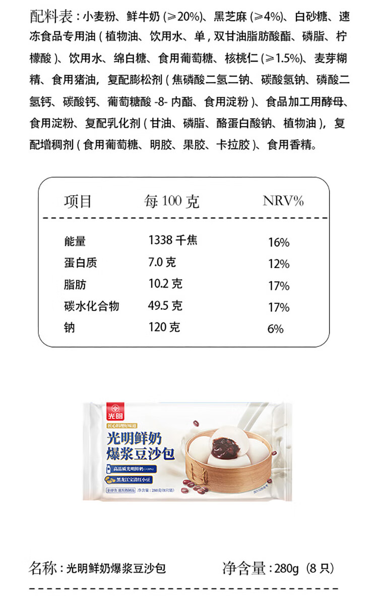 光明牌 【5件包邮】鲜奶馒头/龙井汤圆/面点 速冻面食早餐早茶面点包子 鲜奶大黄米黑芝麻汤圆380g×1袋