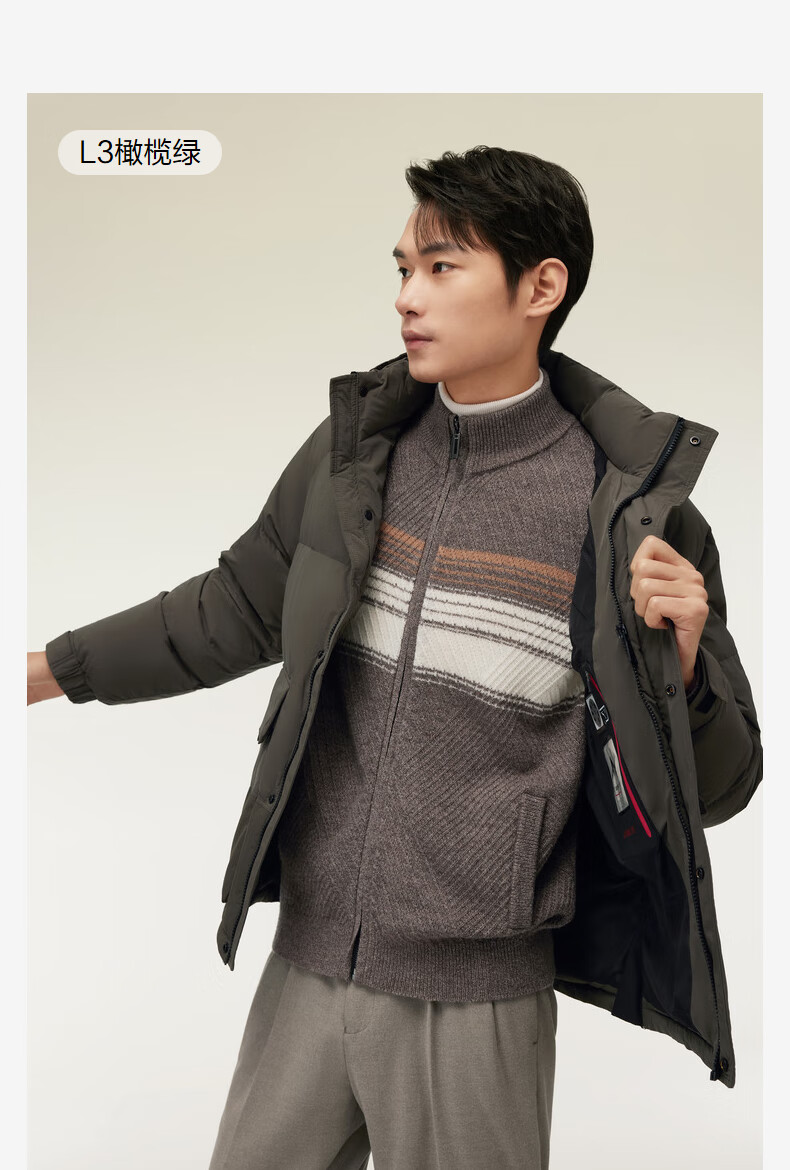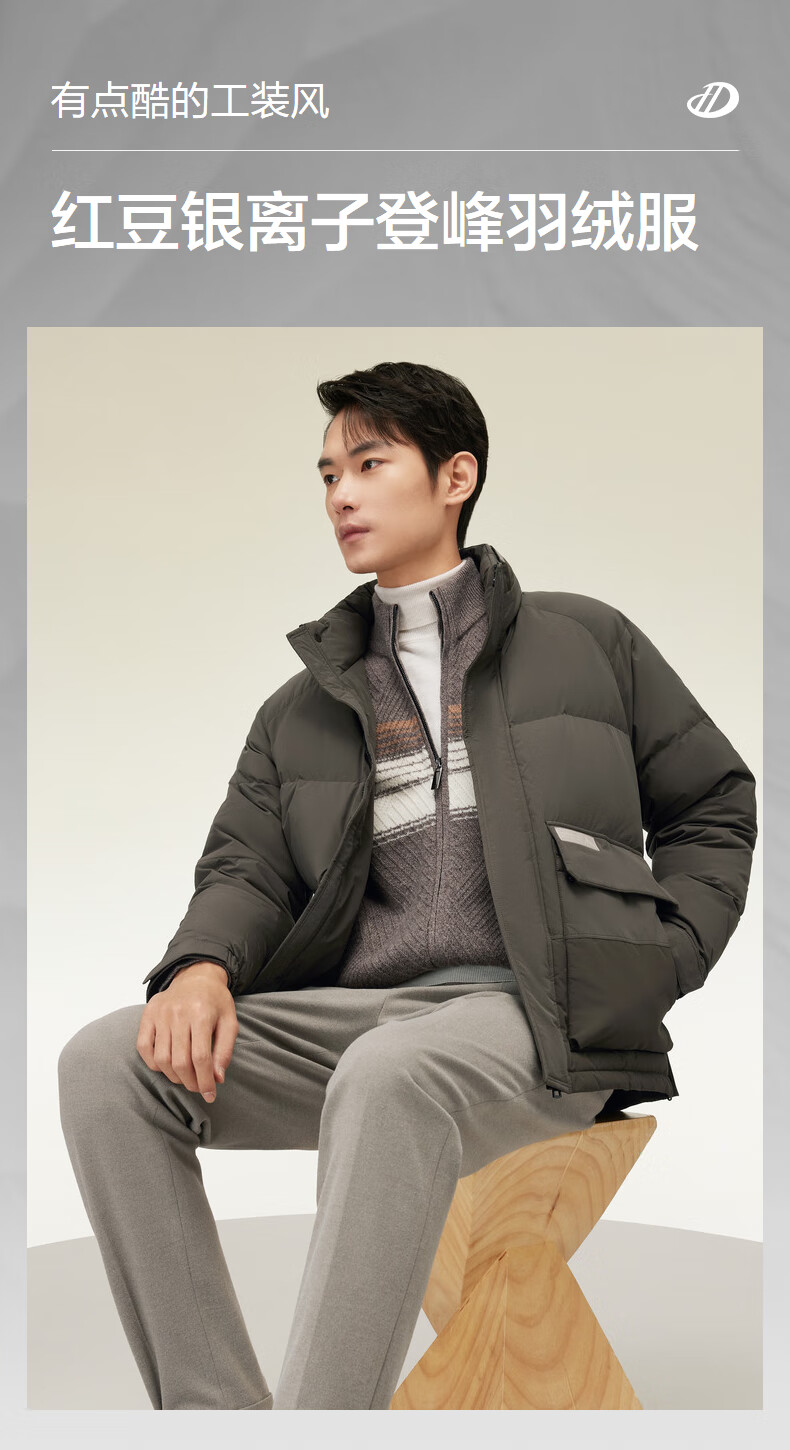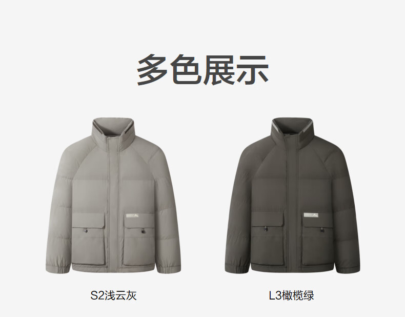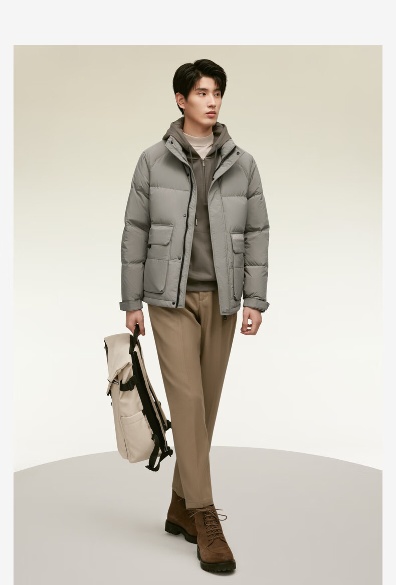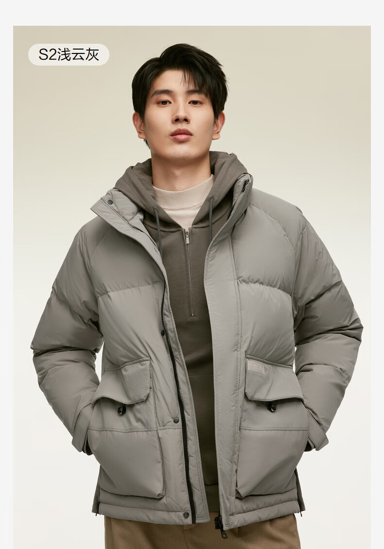 红豆【立领面包羽绒服】男士中老年爸爸款25冬季立领保暖休闲羽绒外套 S2浅云灰 XL 180/100B