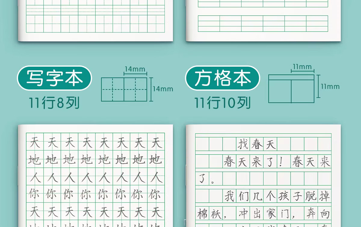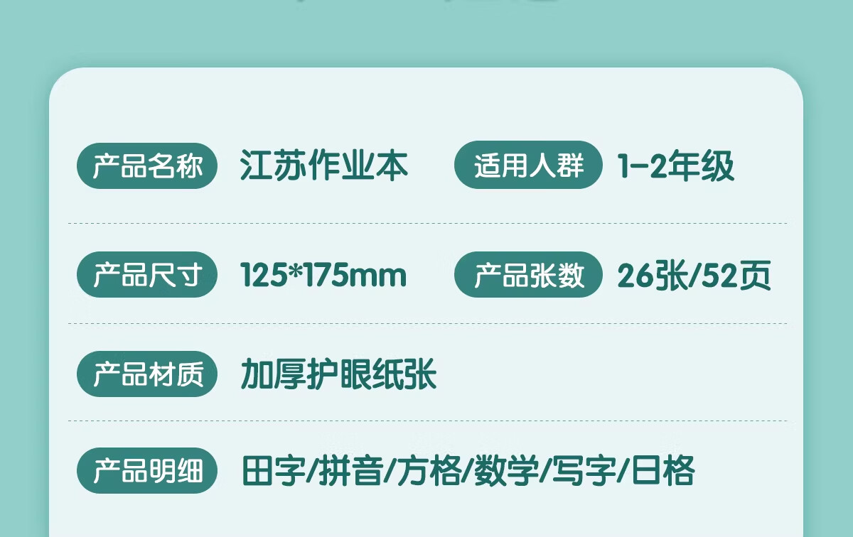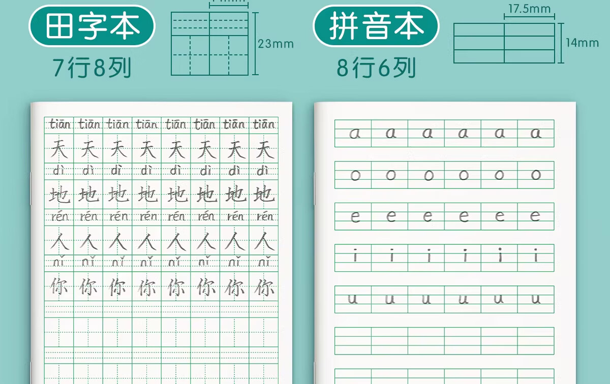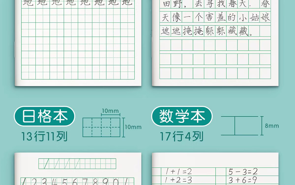 汉状元书院田字格本一年级二年级小学生作业本1-2年级拼音本数学练字本方格本写字本日格本练习标准江苏统一 【1-2年级推荐40本】田+拼+写+数/ 各10本