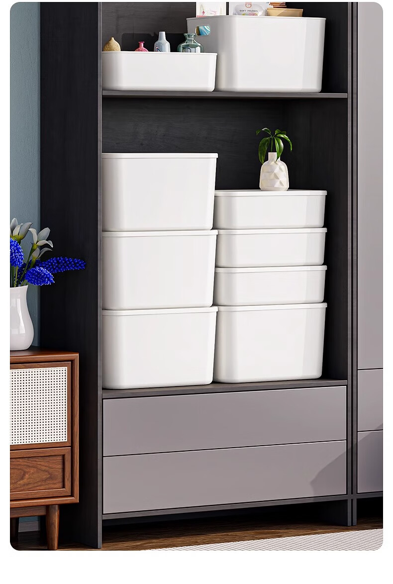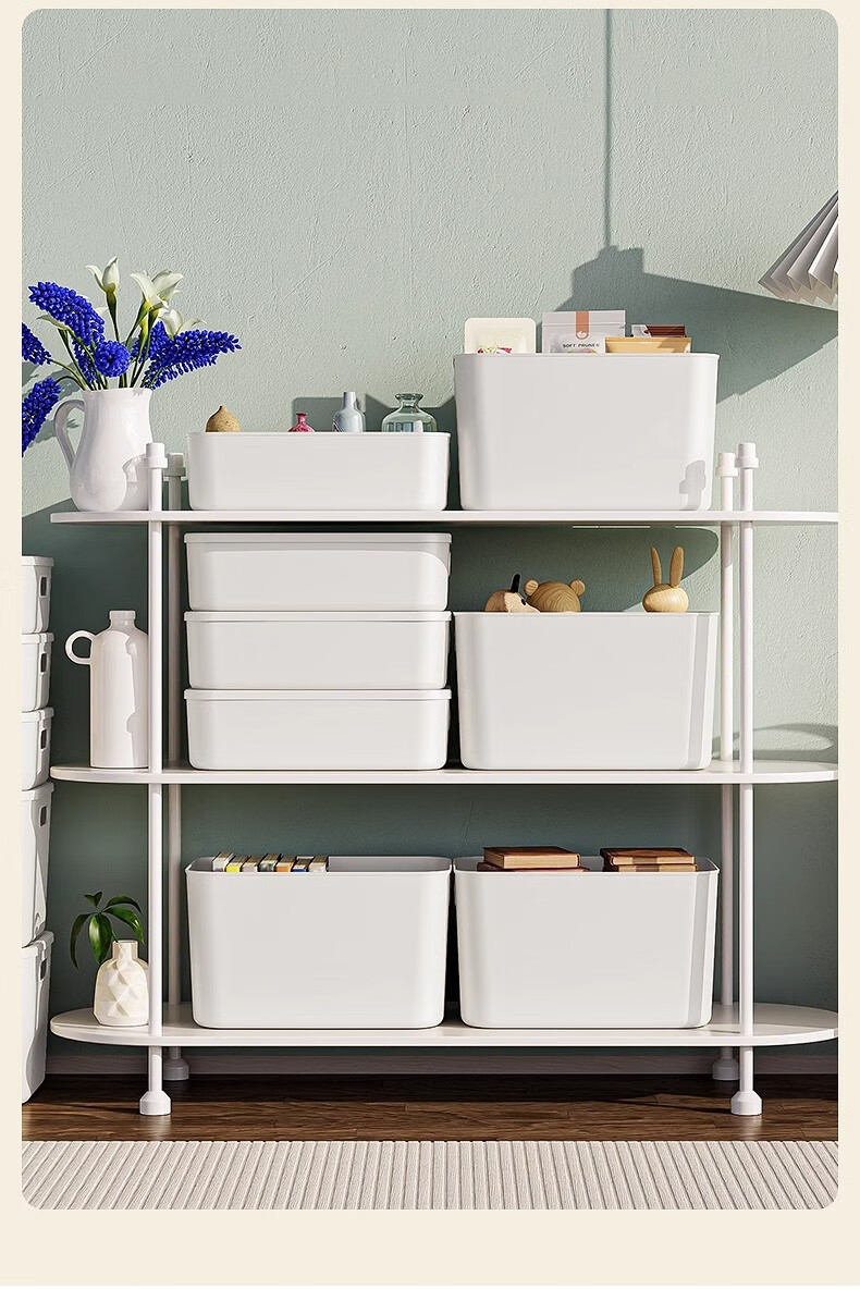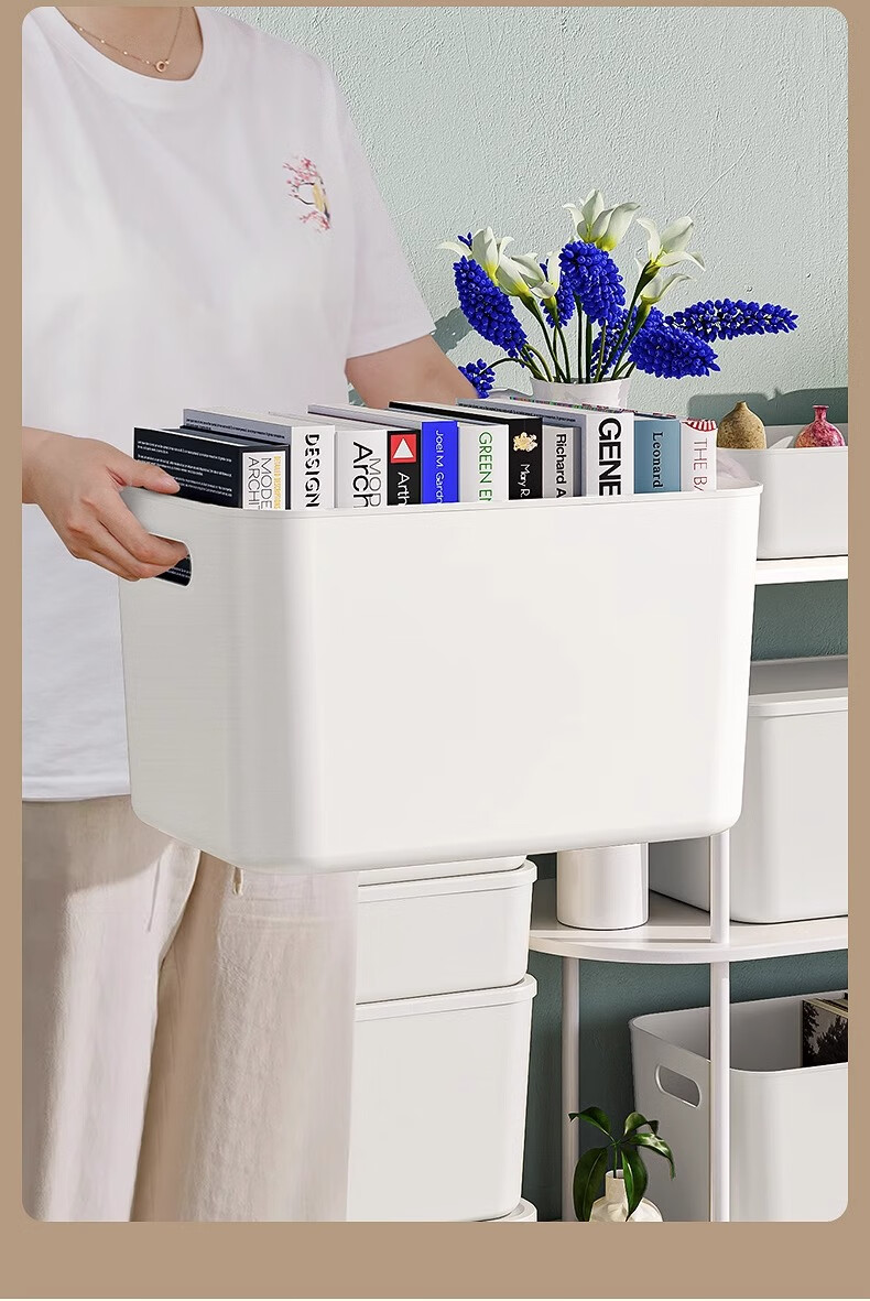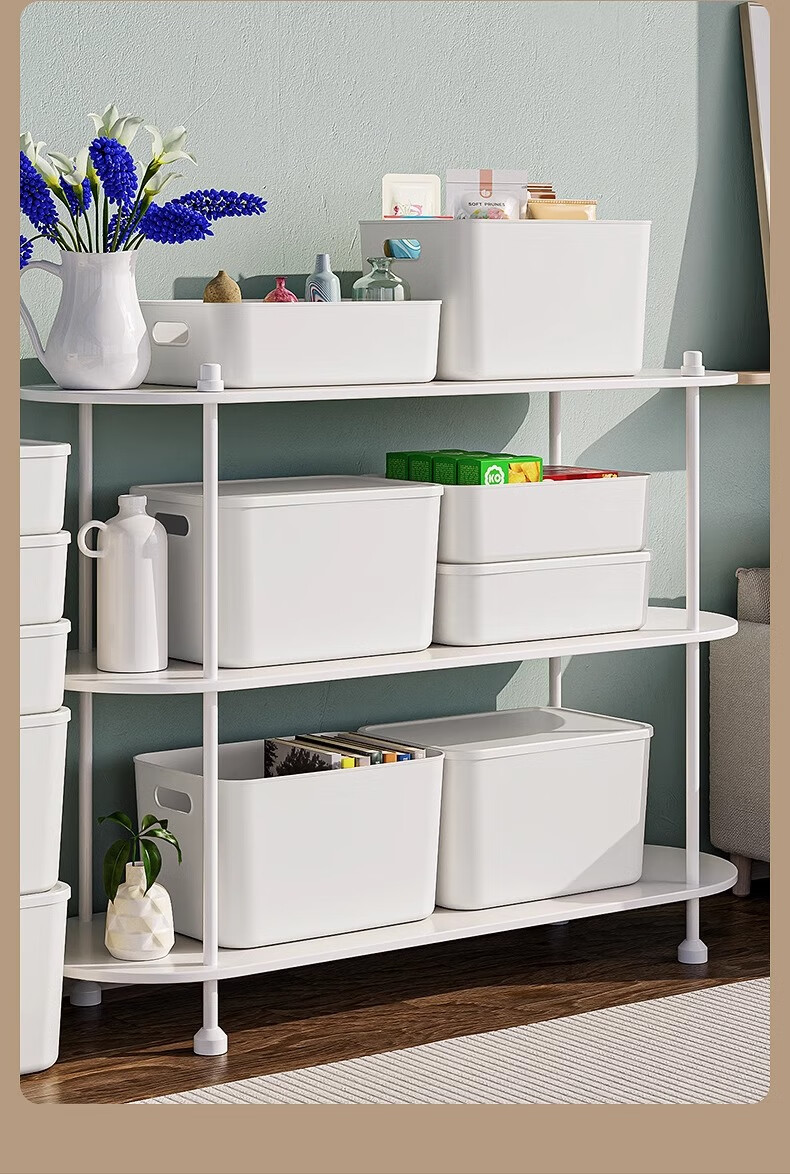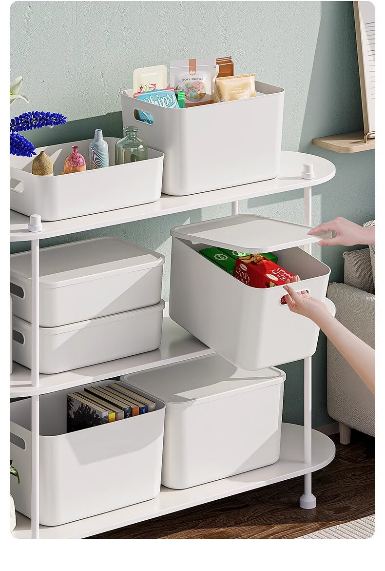 稻草熊杂物玩具零食储物盒收纳箱大容量超大家用衣服塑料收纳盒整理盒筐 纯白/特大号(带盖) 超值2个装