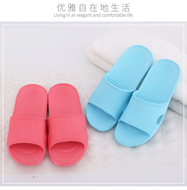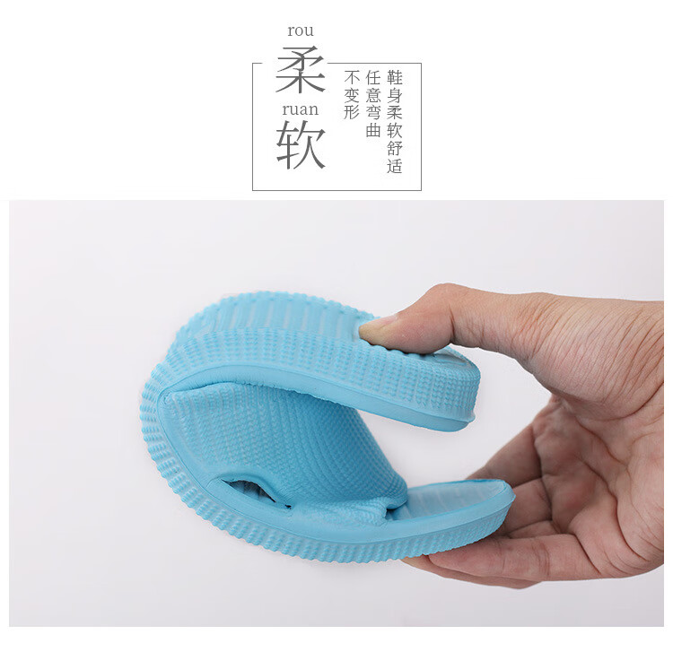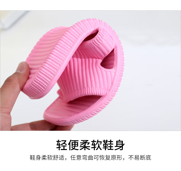 华美健步浴室内沥水款软简约厚底一字漏水拖鞋家居鞋凉拖 深蓝色 44-45