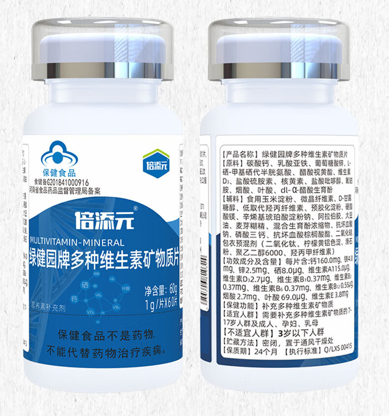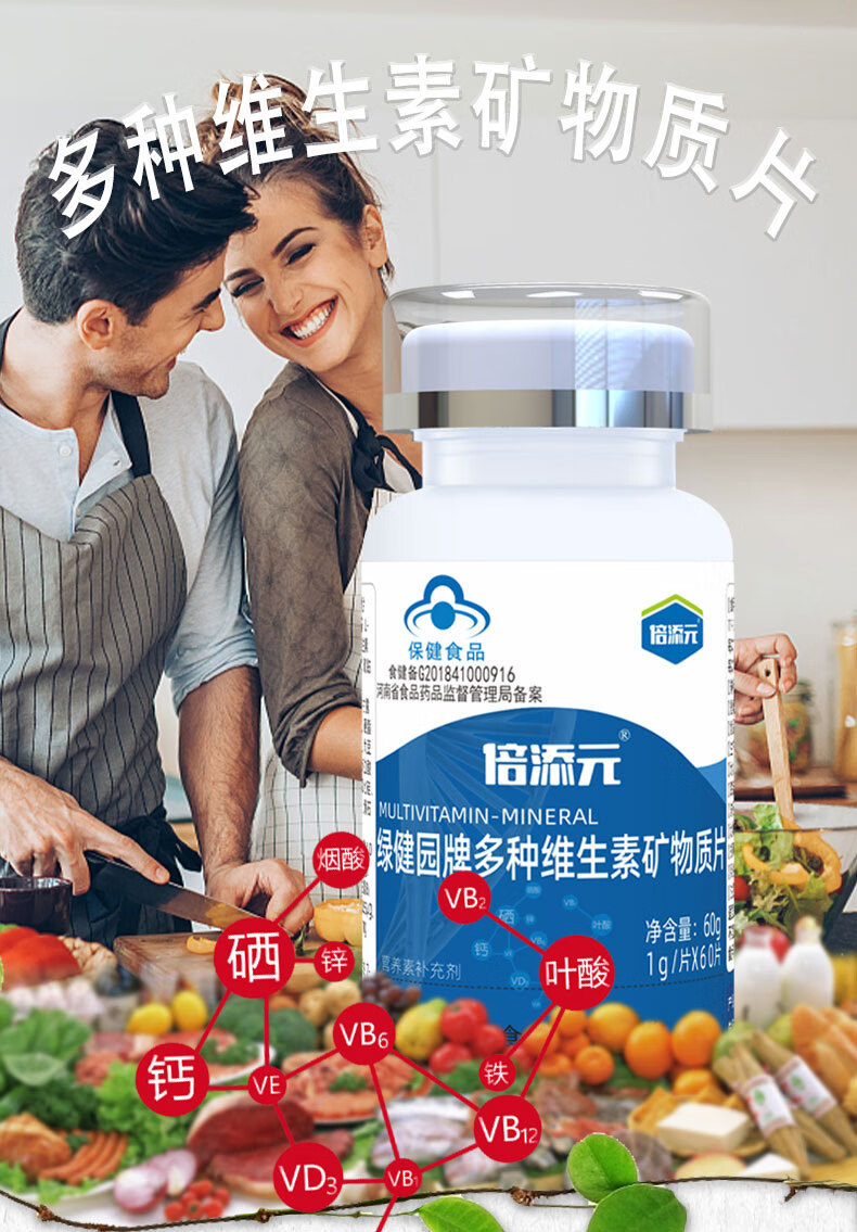男女士补充多种复合维生素矿物质片维生素DAE叶酸烟酸维生素b族维生素d钙铁锌硒男士维生素成人维生素 【2瓶】补充多种维生素矿物质