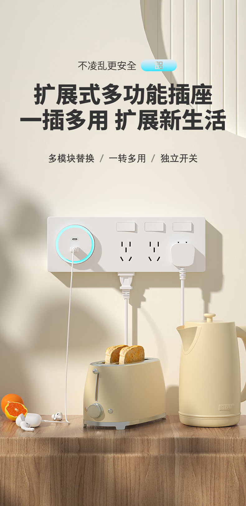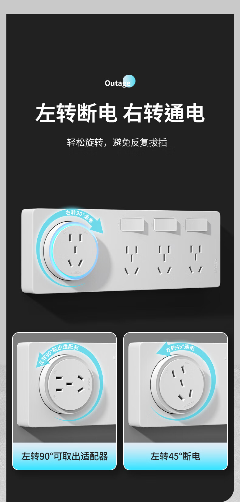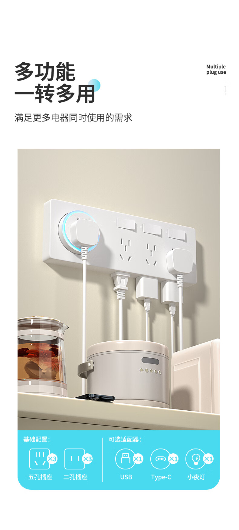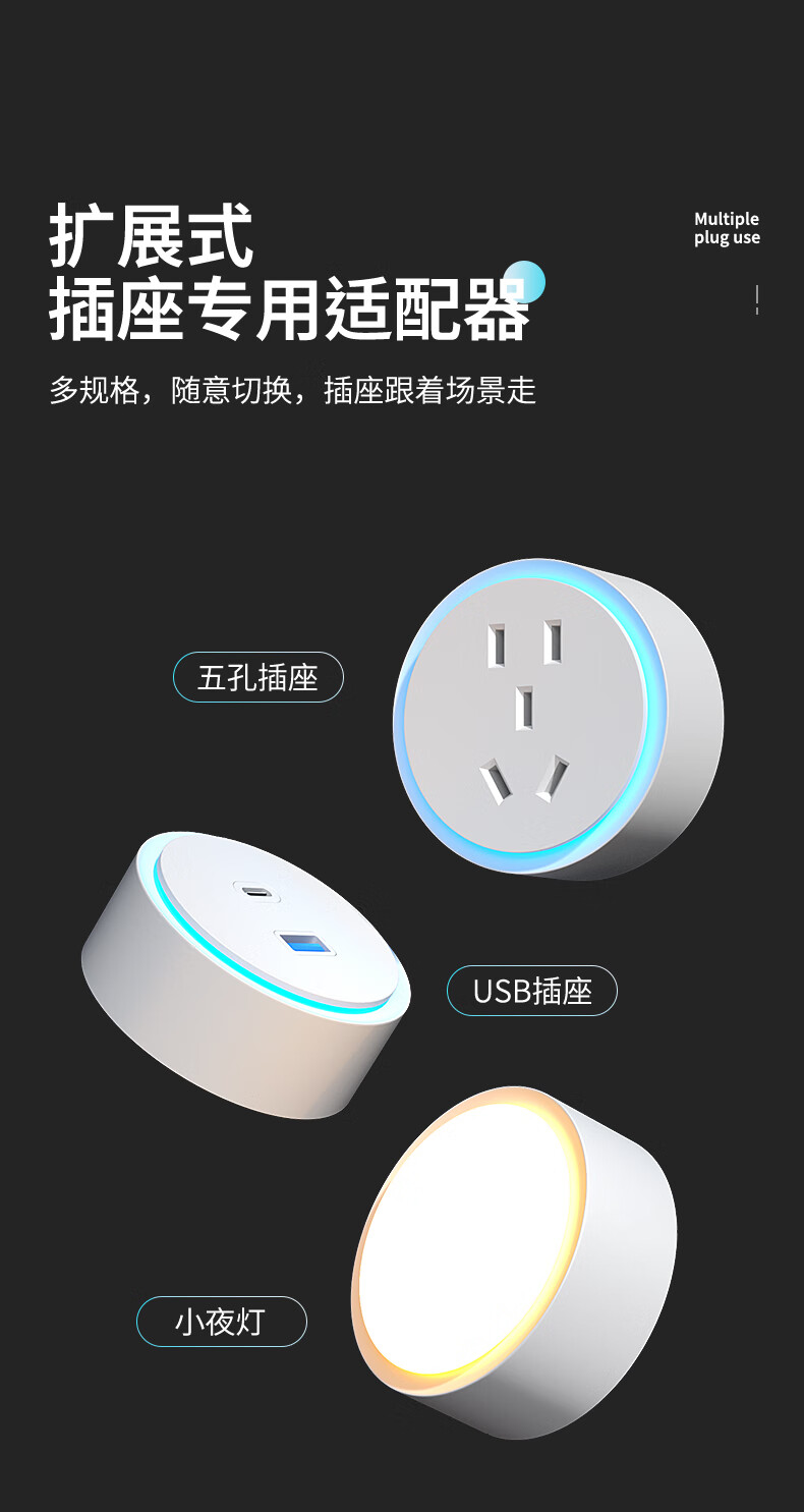 7M国际电工扩展插座86型多功能墙壁拓展插座转换器多孔位无线插排插线接线板 灰色【向右扩展21孔】USB+独开关