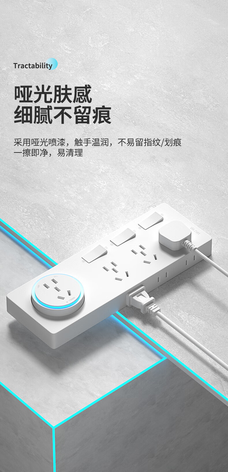 小米有品轨道插座德国品质电工可移动智能轨道明装式电力滑动导轨电源客厅 黑色40cm轨道(五孔-无灯*3)
