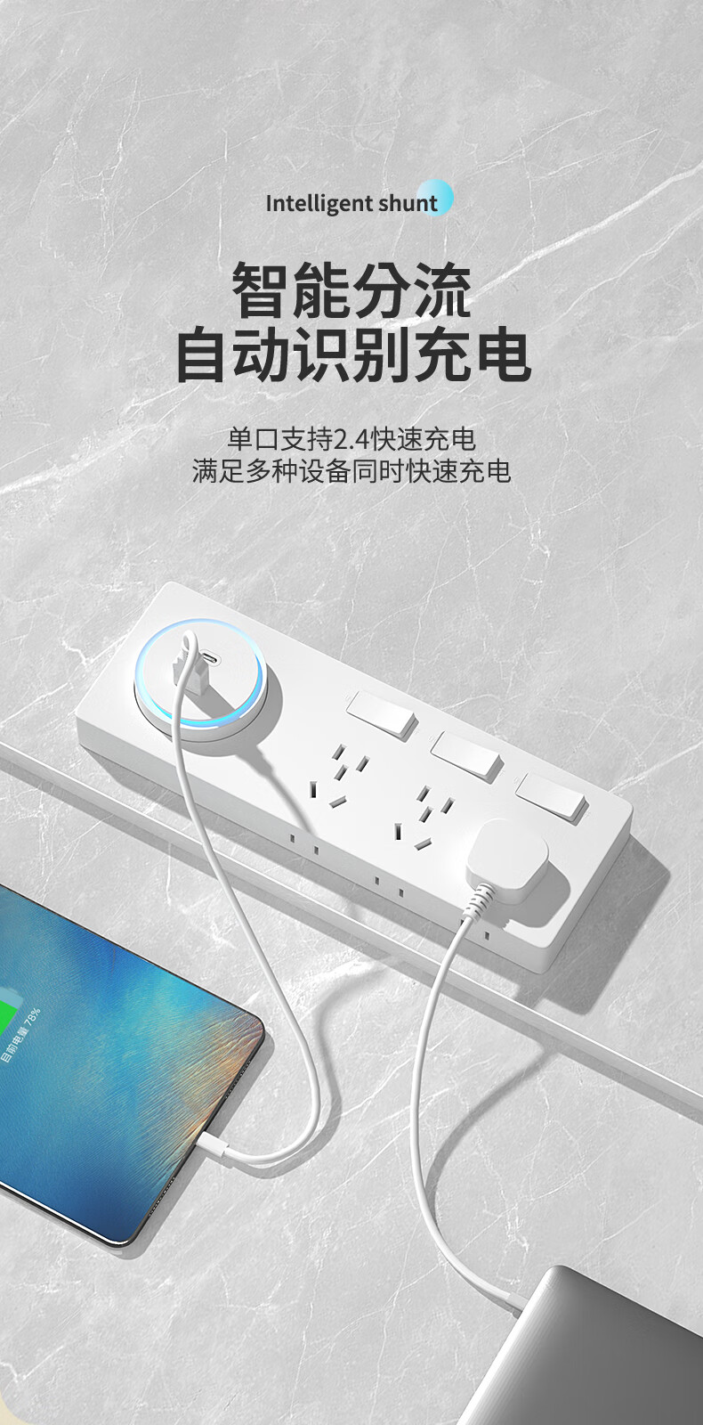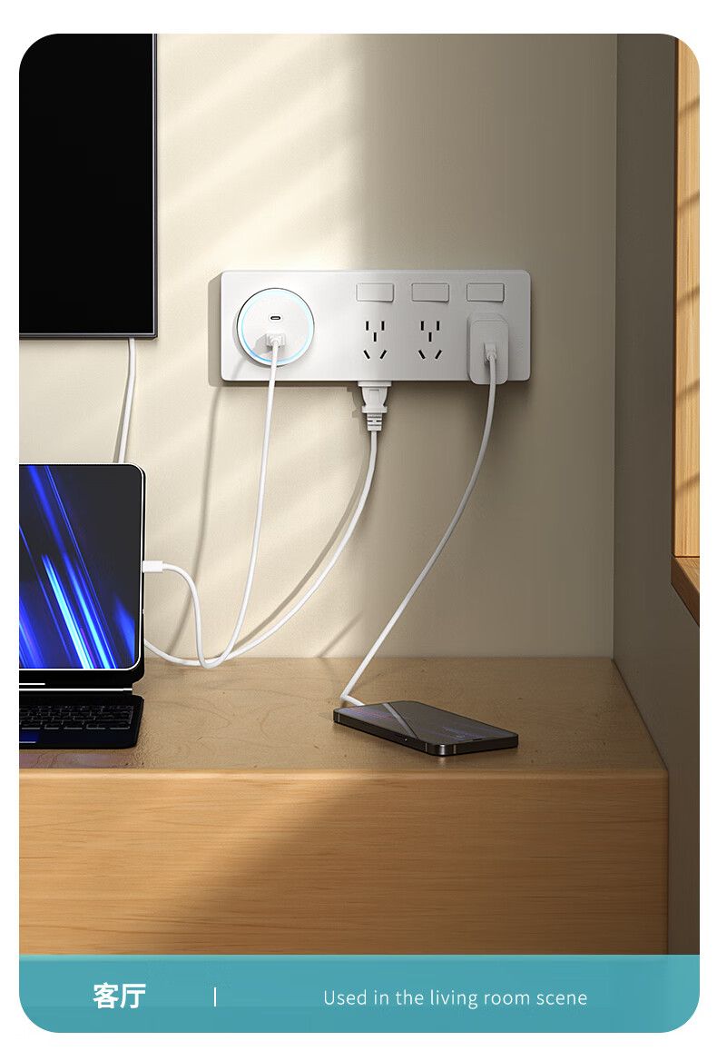 国际电工 (DIBOLANG)86型带伸缩数据线USB五孔插座20W快充插座开关面板手机充电Type-c 苹果线+四孔+USB+Type-C【白色】