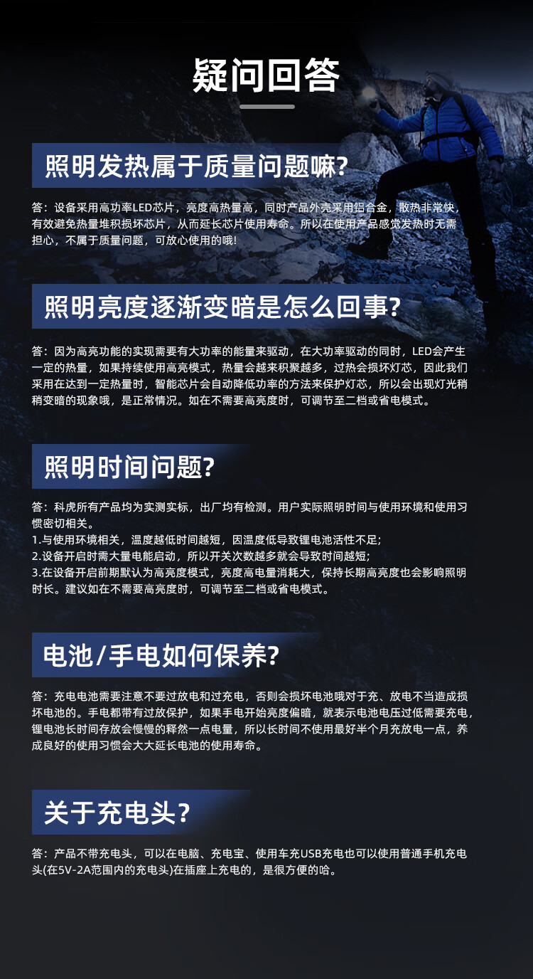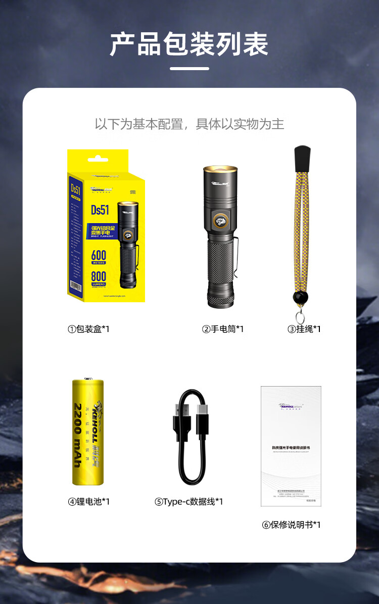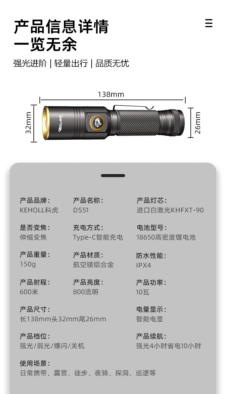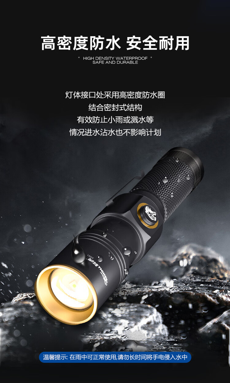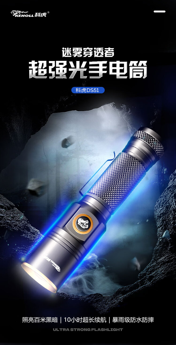 科虎超亮强光手电筒可充电远射户外露营应急防水伸缩变焦长续航LED灯 科虎DS51【锂电池*1】