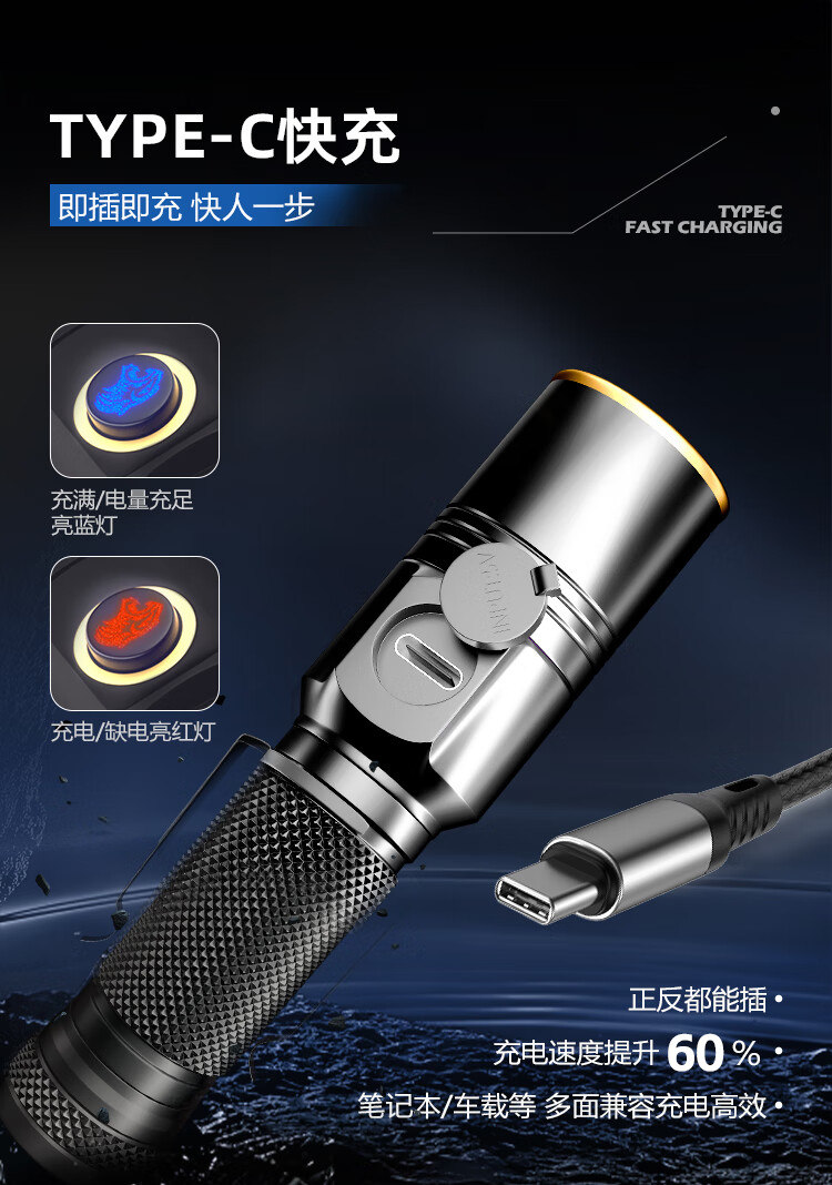 天火(SkyFire)手电筒苍龙超亮变焦远射强光200000流明超长续航户外穿天炮三千米 紫龙爪30W【4000毫安】可燃火
