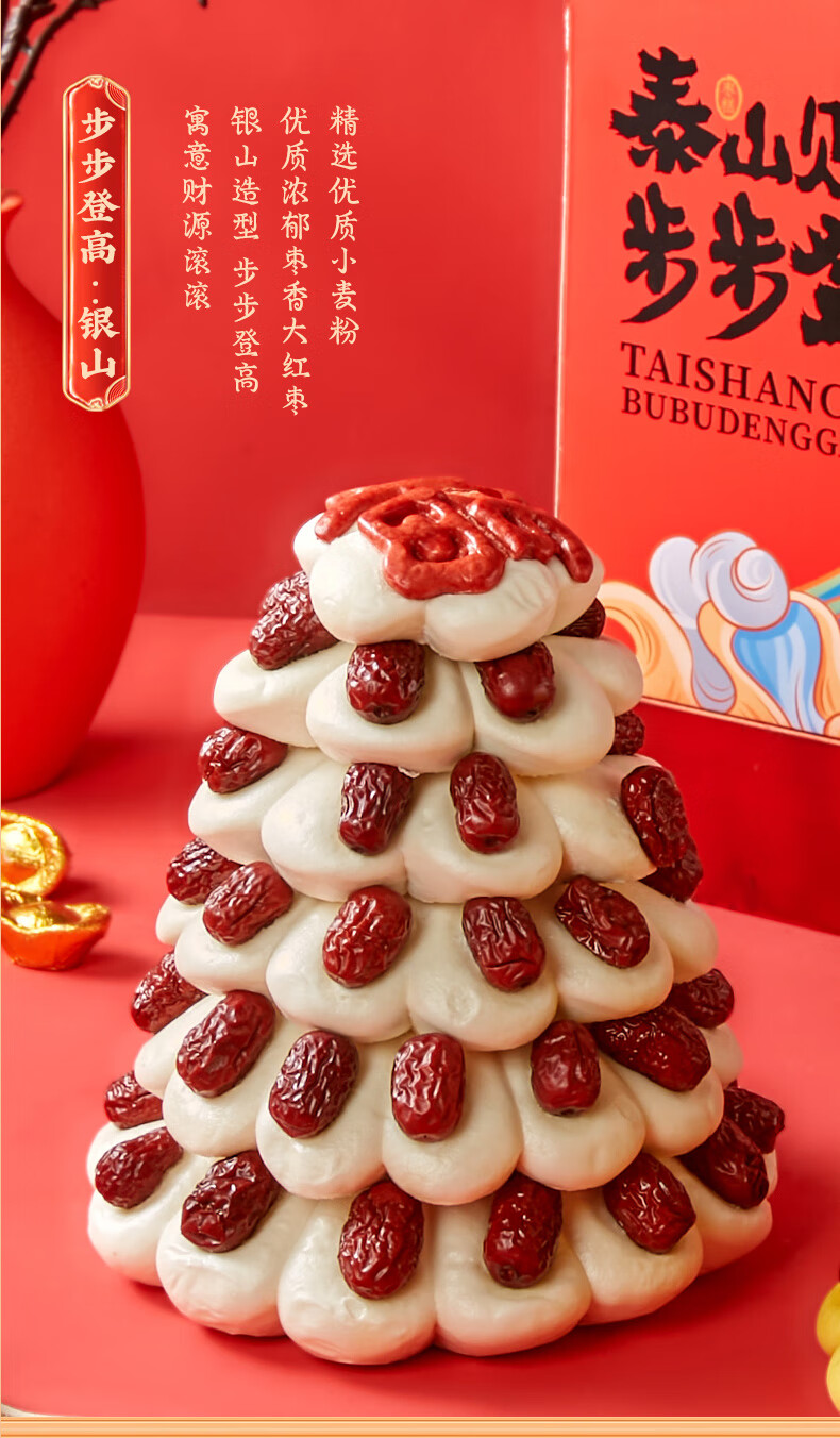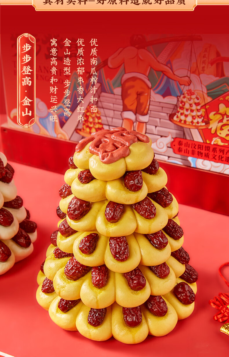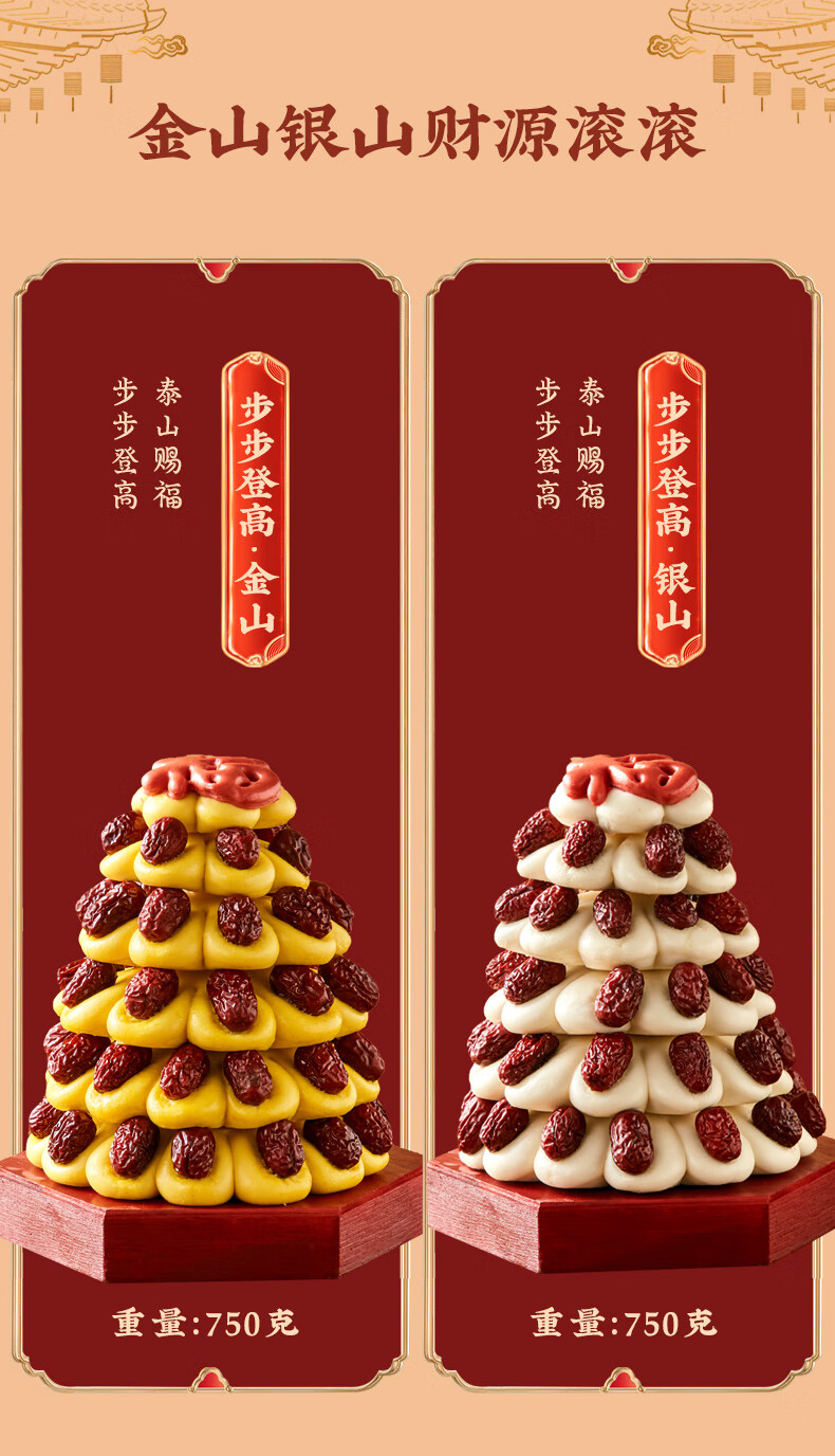 日月坊枣山馒头红枣饽饽花样面食山东大馍馍过年年货面点贡品6层 金银山马上有钱新年礼盒1660g