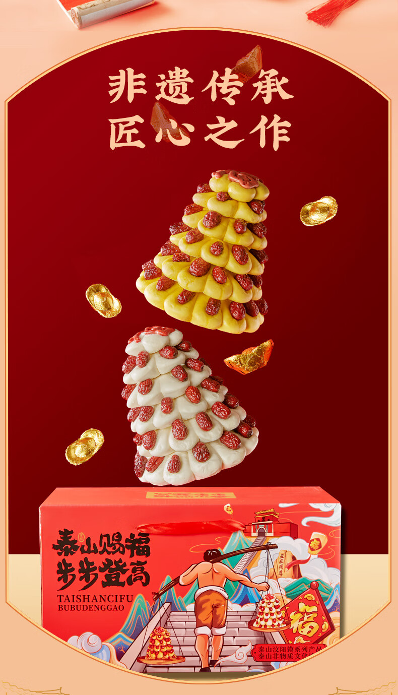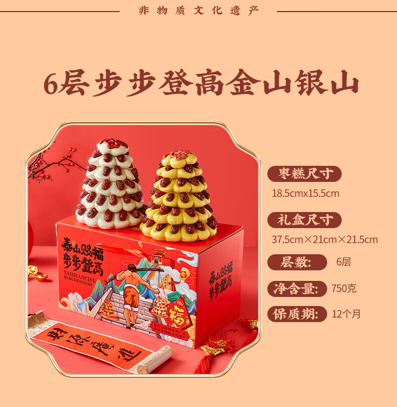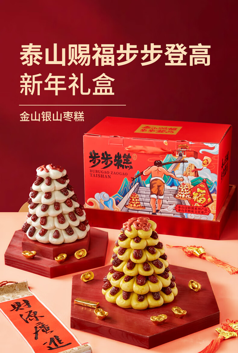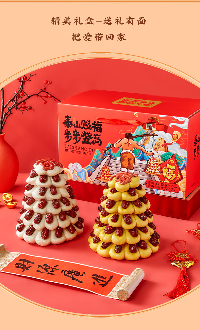 日月坊枣山馒头红枣饽饽花样面食山东大馍馍过年年货面点贡品6层 金银山马上有钱新年礼盒1660g