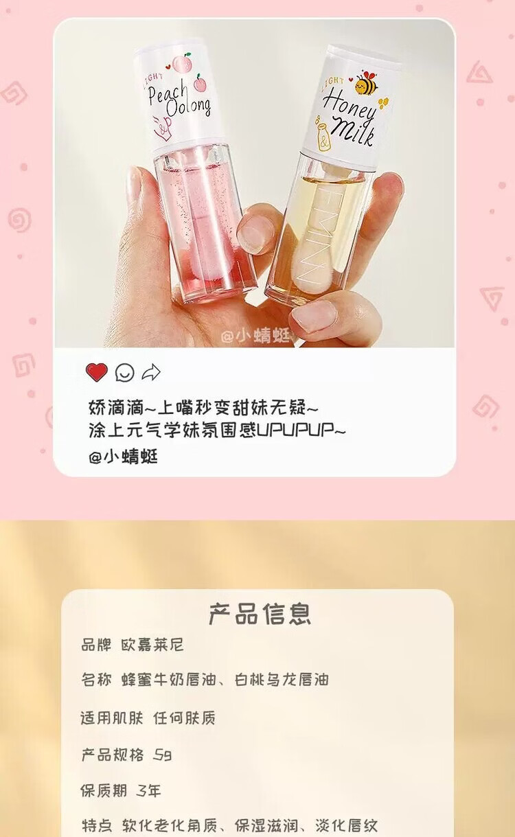 TWG【福利价】润泽唇精华油唇膜滋润保湿补水嫩唇膏唇部护理防干裂 10ml 蜂蜜+白桃 共2支