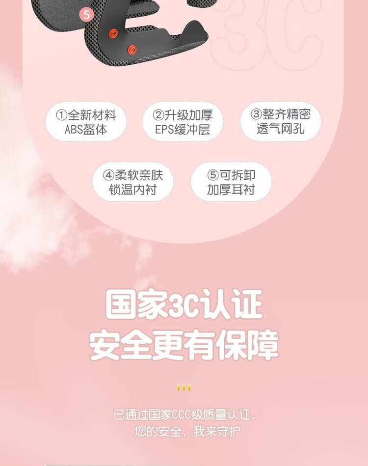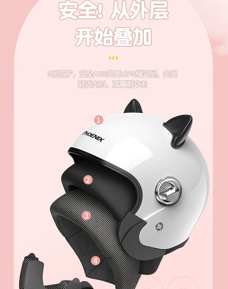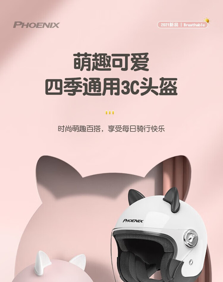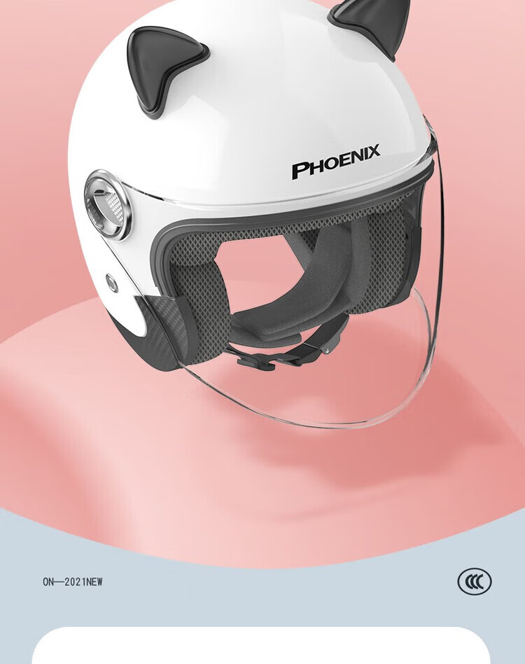凤凰3C认证电动车头盔男女士电瓶摩托车安全帽四季通用冬季保暖防雾新国标半盔 3C纯粉色+白耳朵【防雾双镜】
