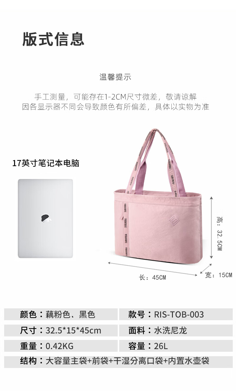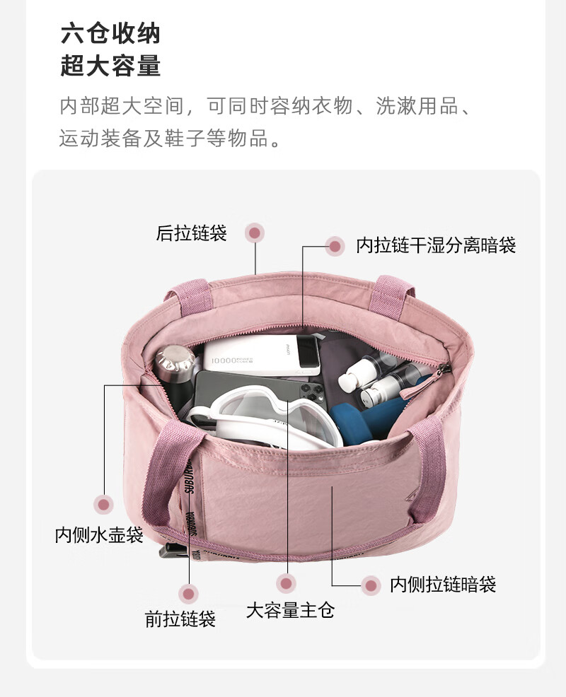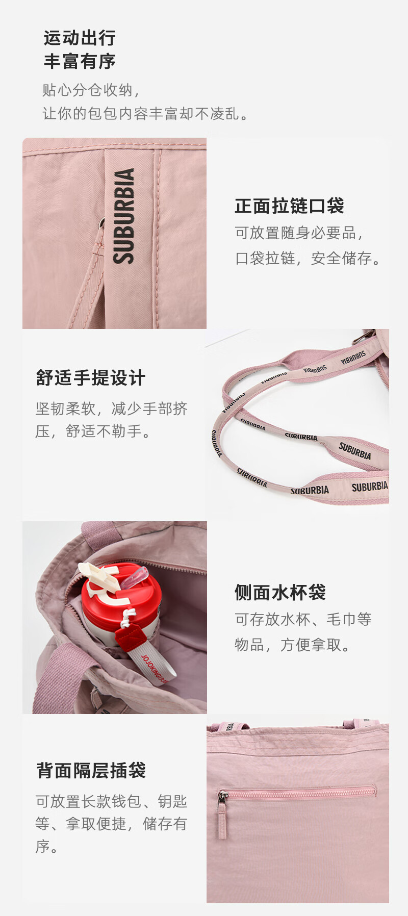 SUBURBIA思博亚游泳干湿分离运动包女士出行便携包时尚大容量托特单肩包 藕粉